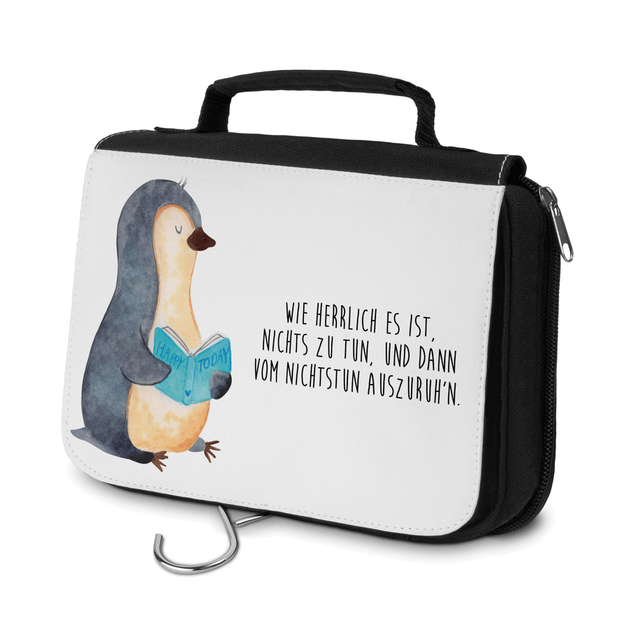 Kulturbeutel Pinguin Buch - mit Spruch - Weiß