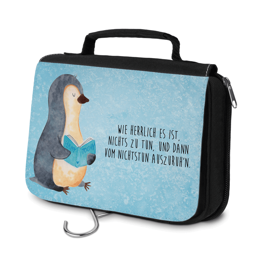Kulturbeutel Pinguin Buch - mit Spruch - Eisblau
