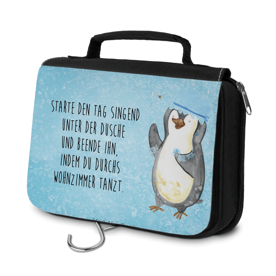 Kulturbeutel Pinguin duscht - mit Spruch - Eisblau