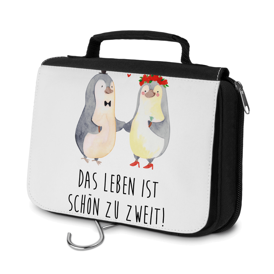 Kulturbeutel Pinguin Heirat - mit Spruch - Weiß