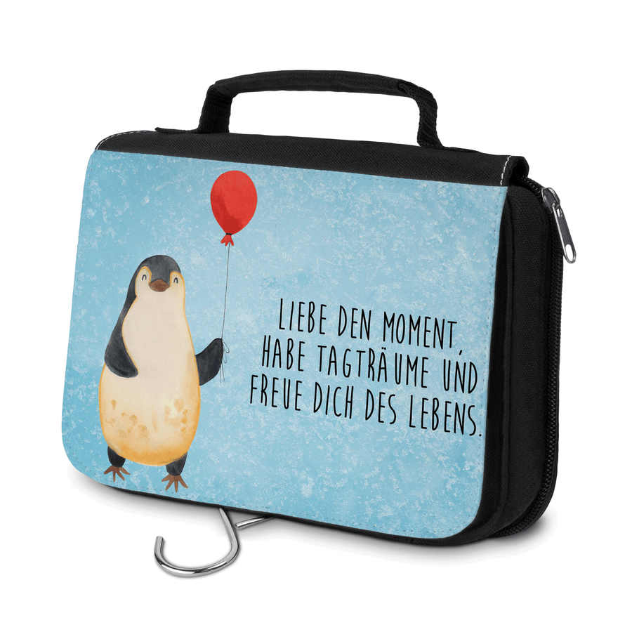 Kulturbeutel Pinguin Luftballon - mit Spruch - Eisblau