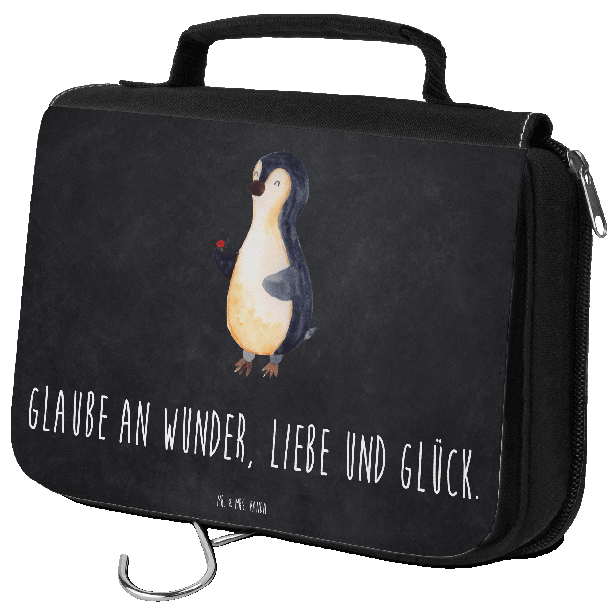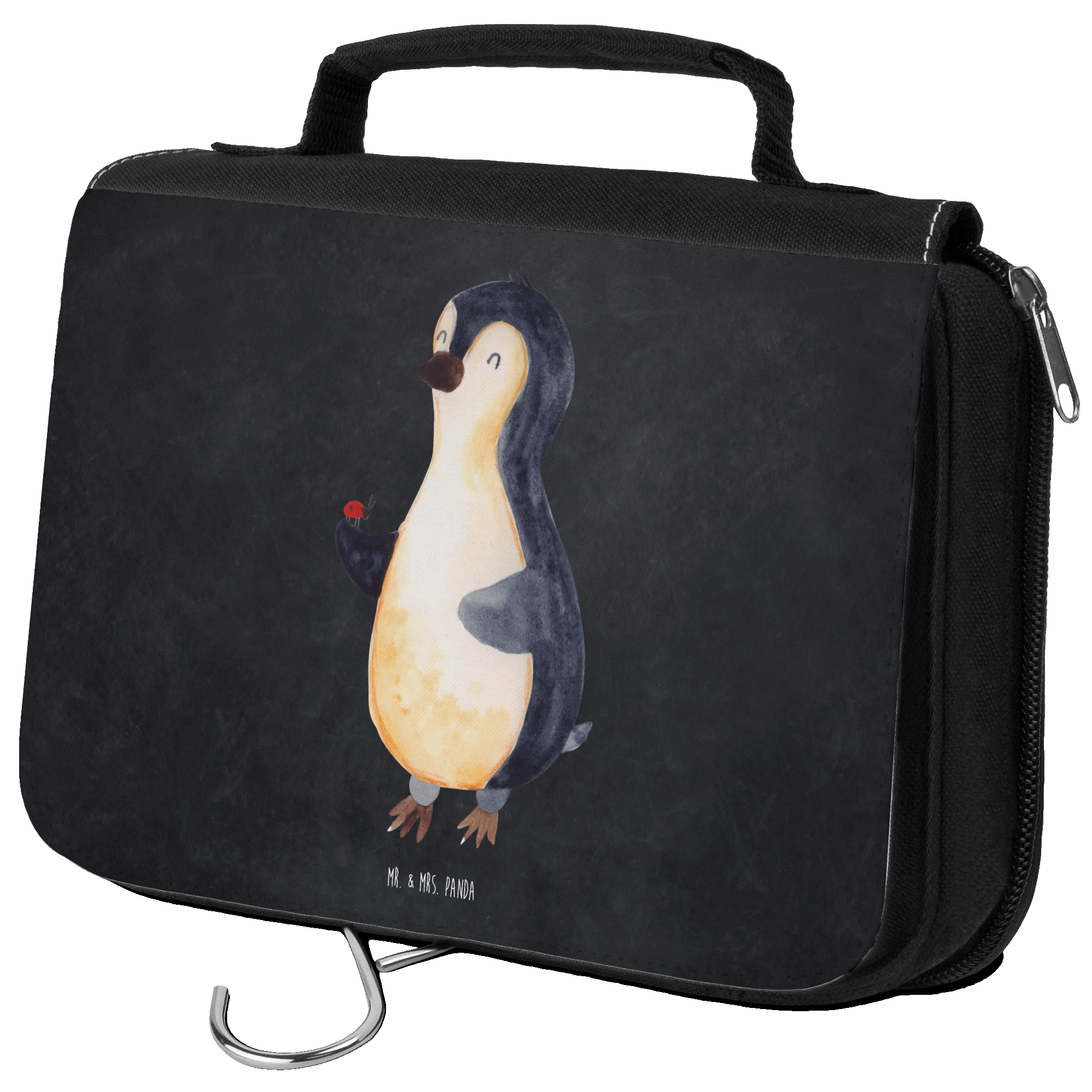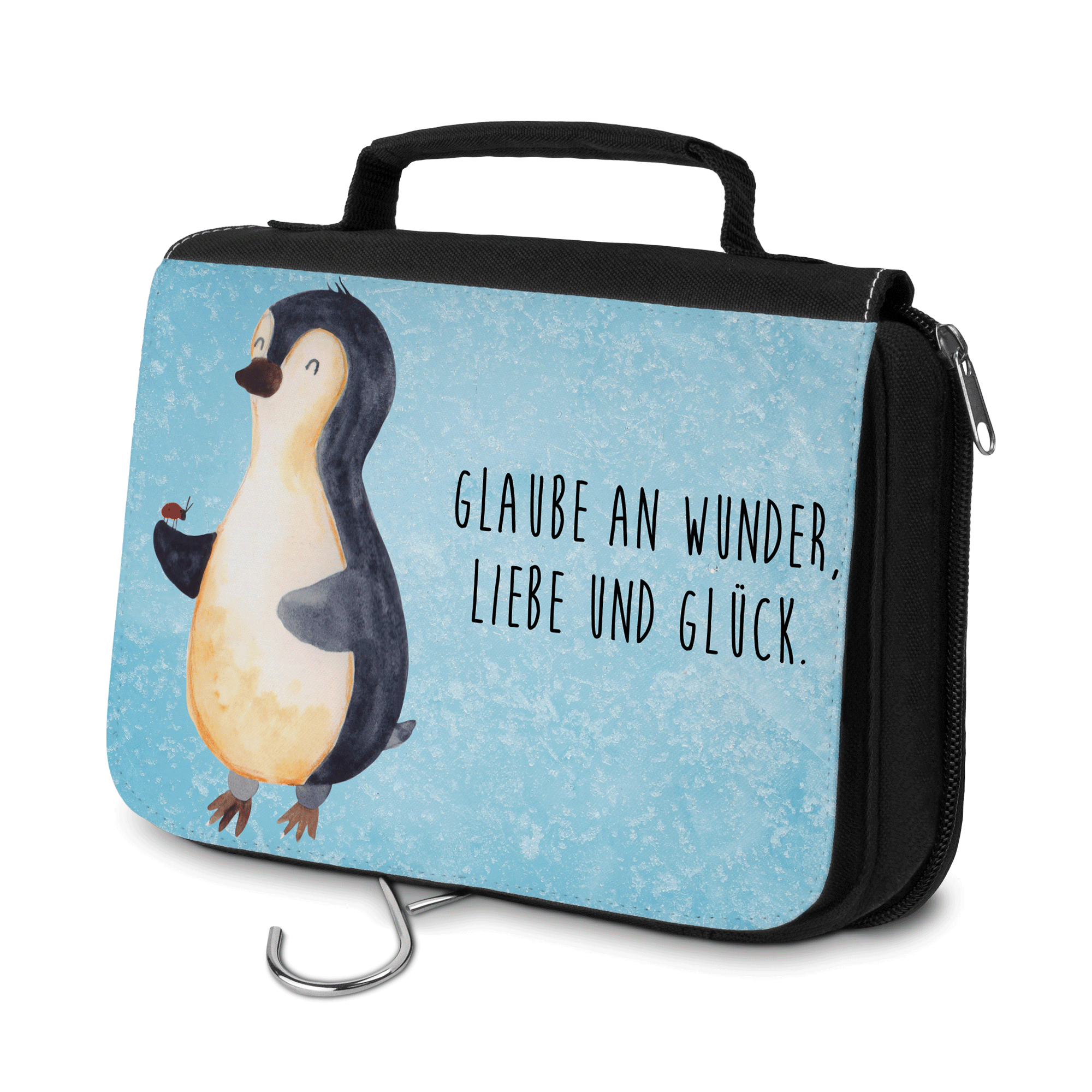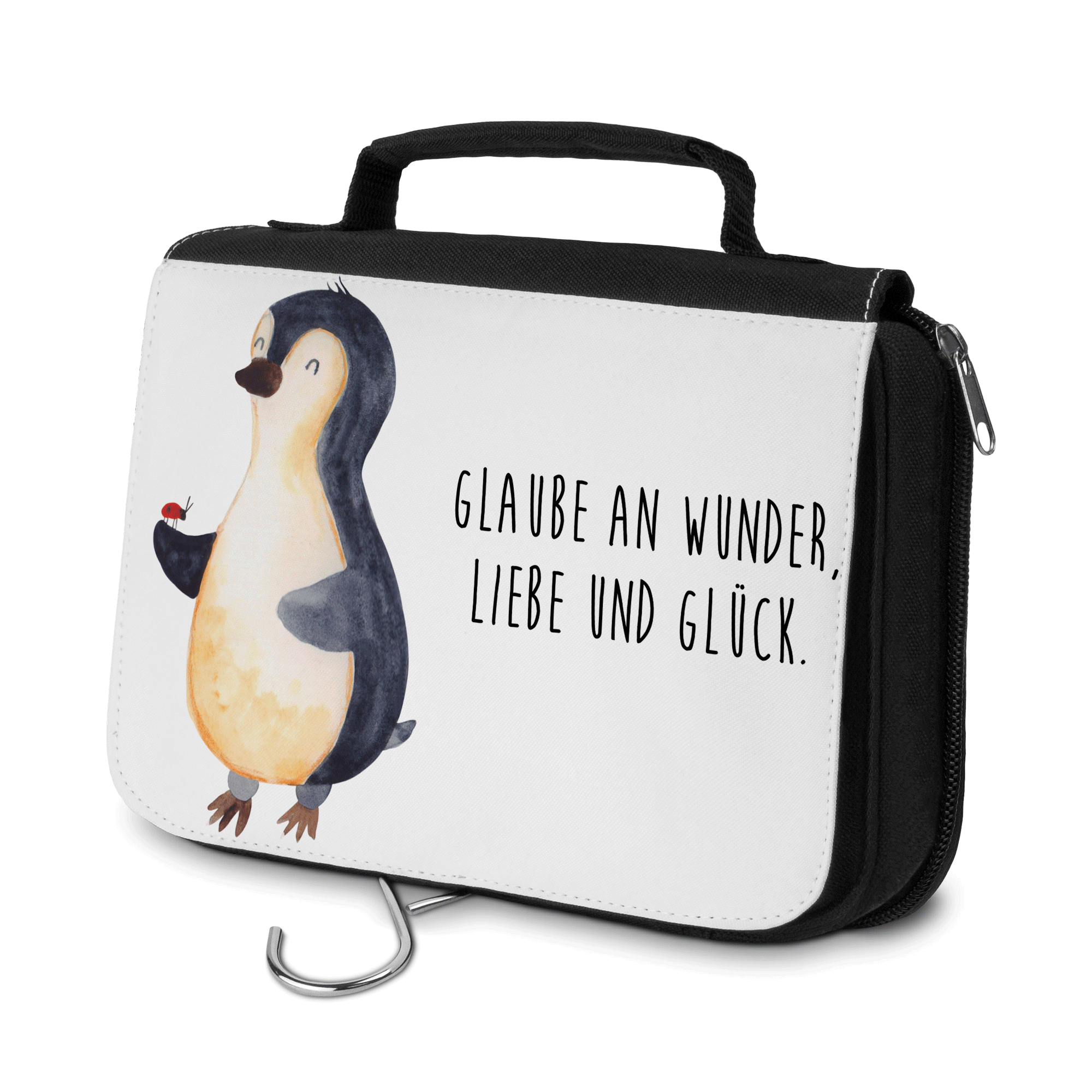 Kulturbeutel Pinguin Marienkäfer - mit Spruch - Weiß