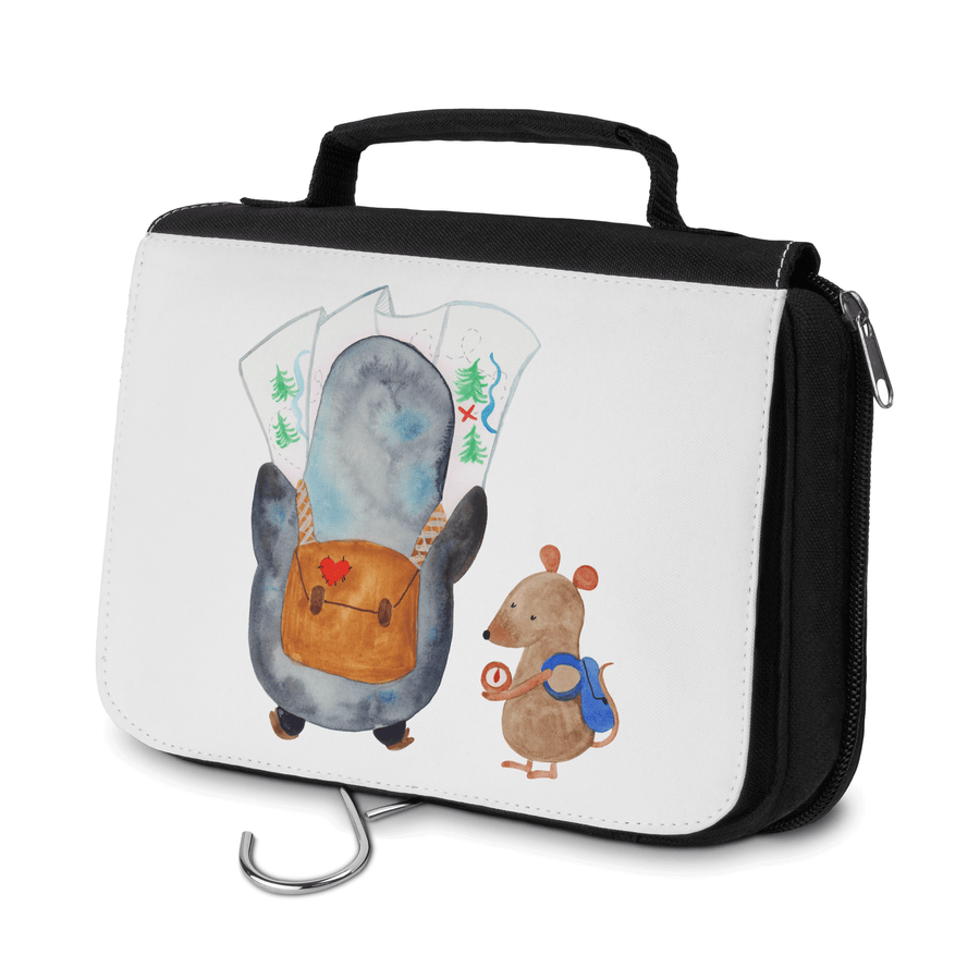 Kulturbeutel Pinguin & Maus Wanderer - ohne Spruch - Weiß