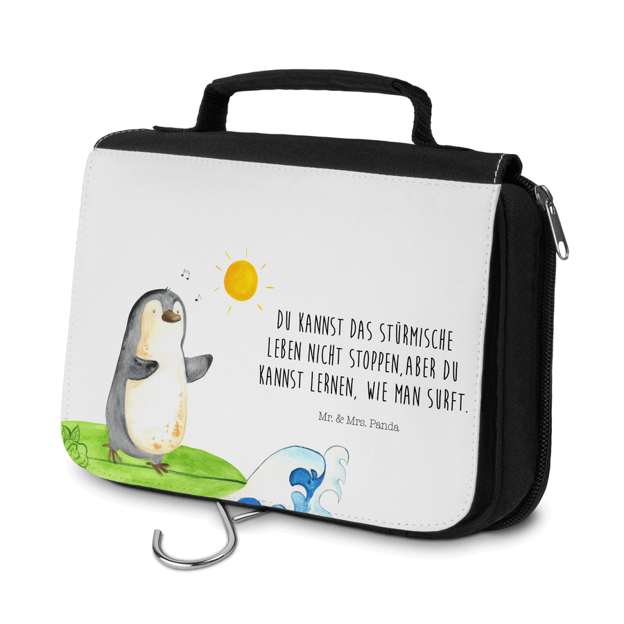 Kulturbeutel Pinguin Surfer - mit Spruch - Weiß