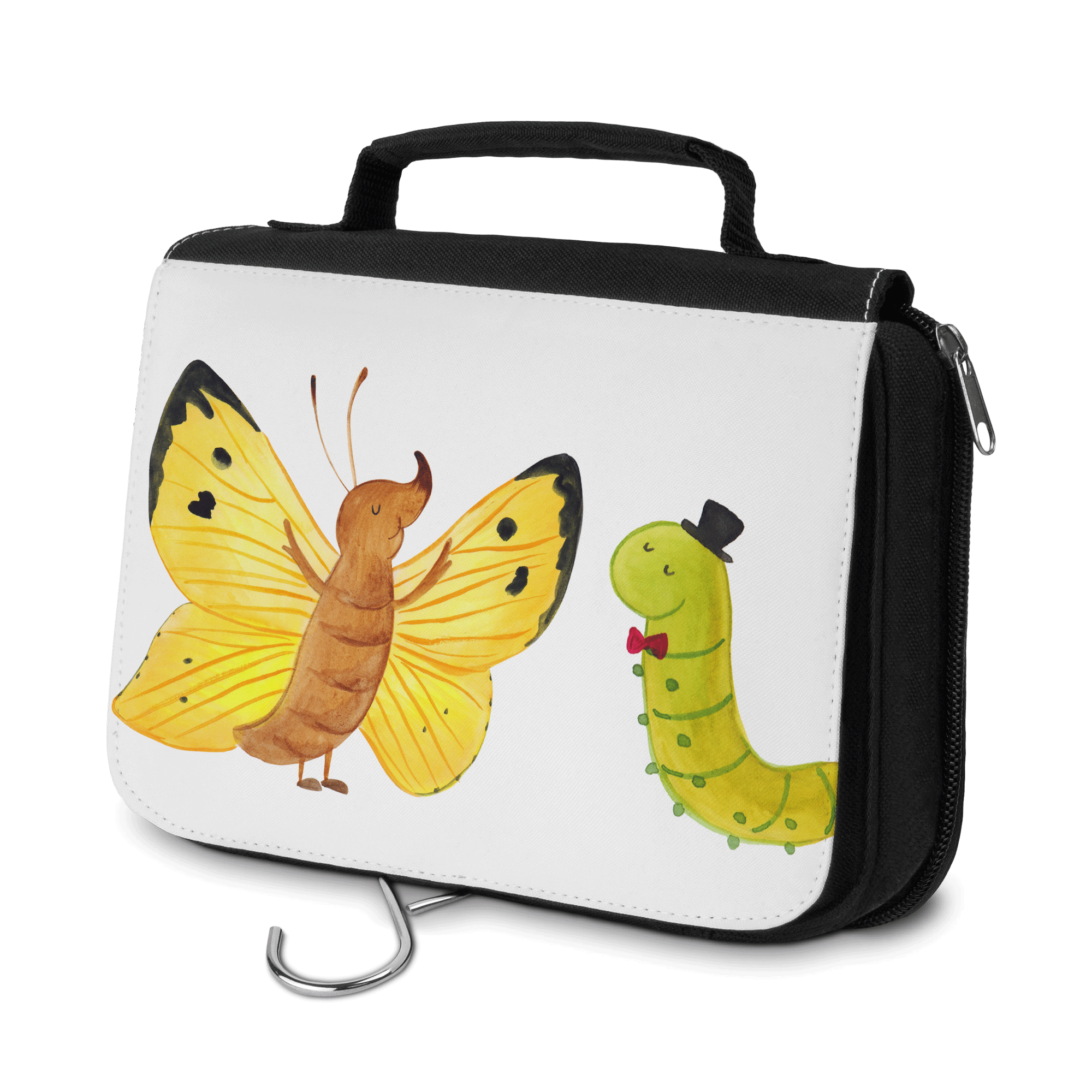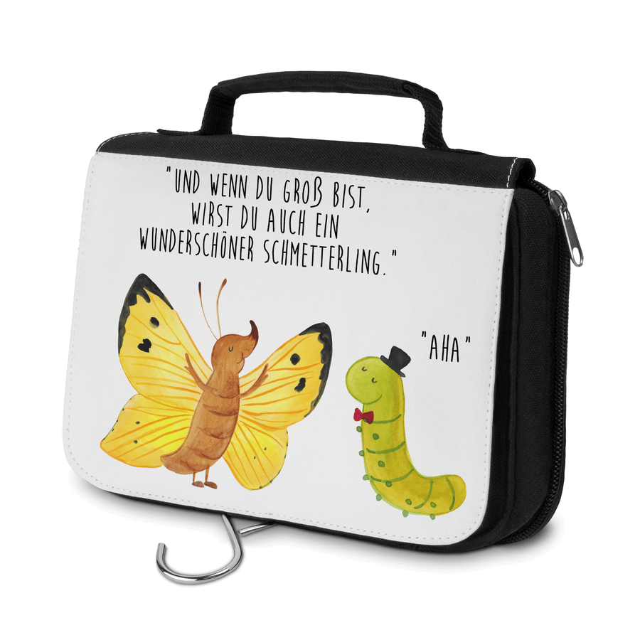 Kulturbeutel Raupe & Schmetterling - mit Spruch - Weiß