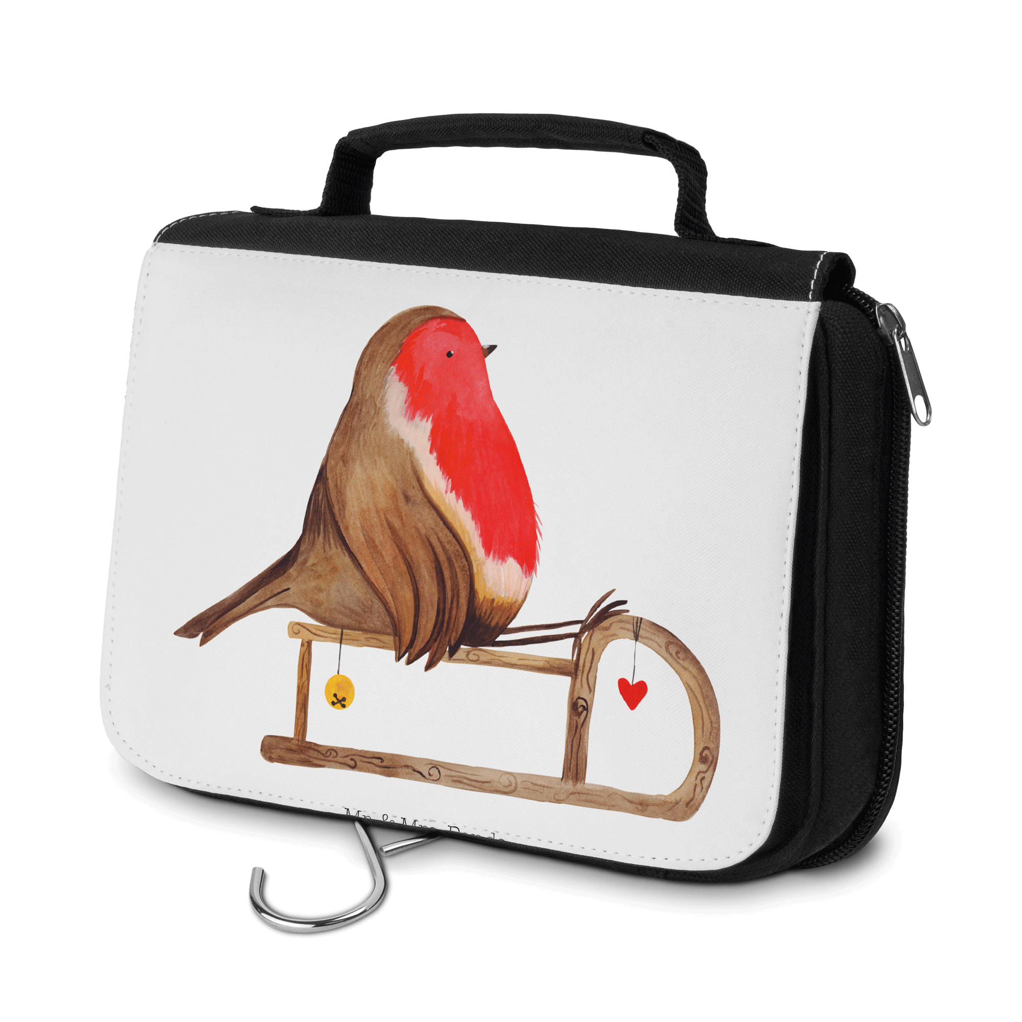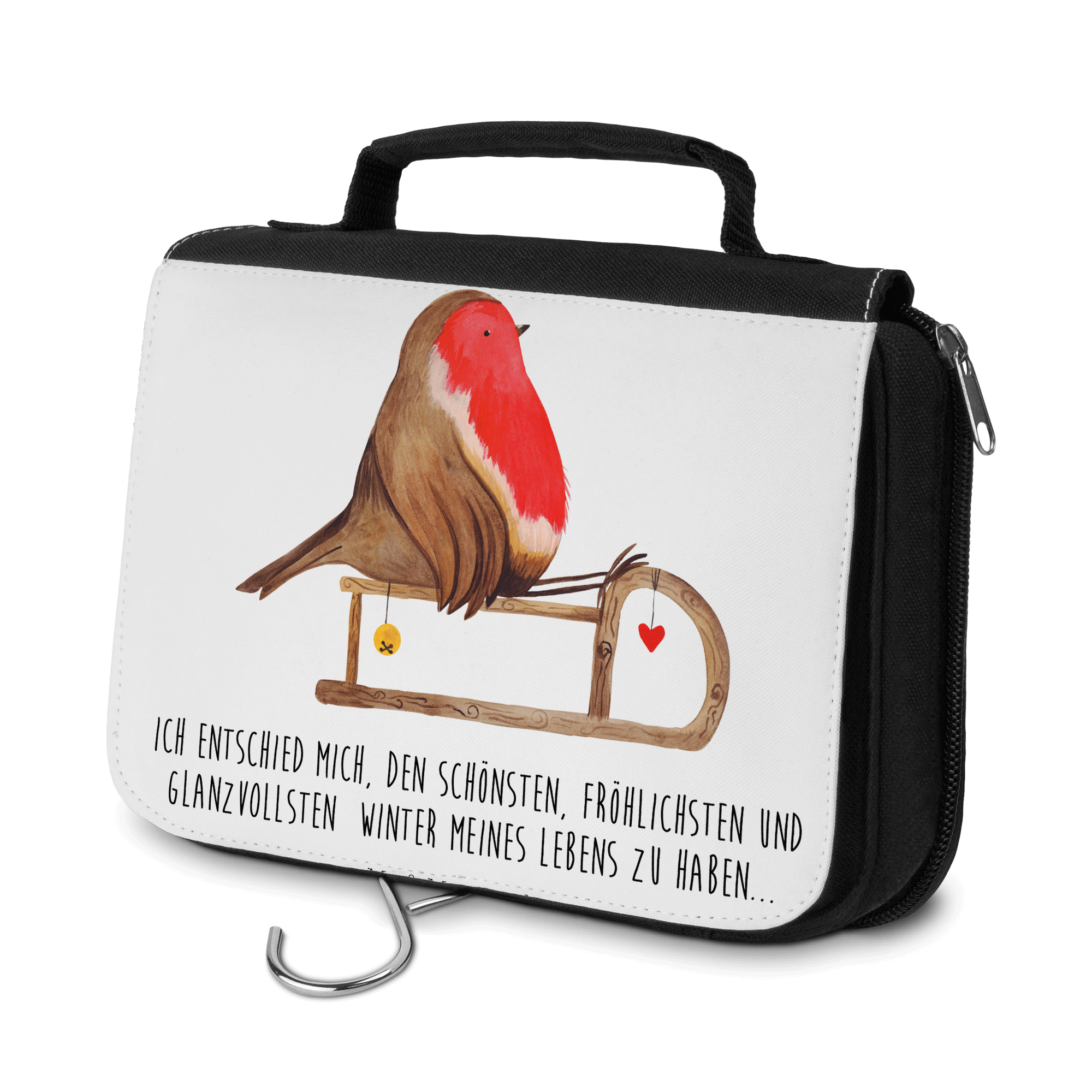 Kulturbeutel Rotkehlchen Schlitten - Mit Text Quer DE