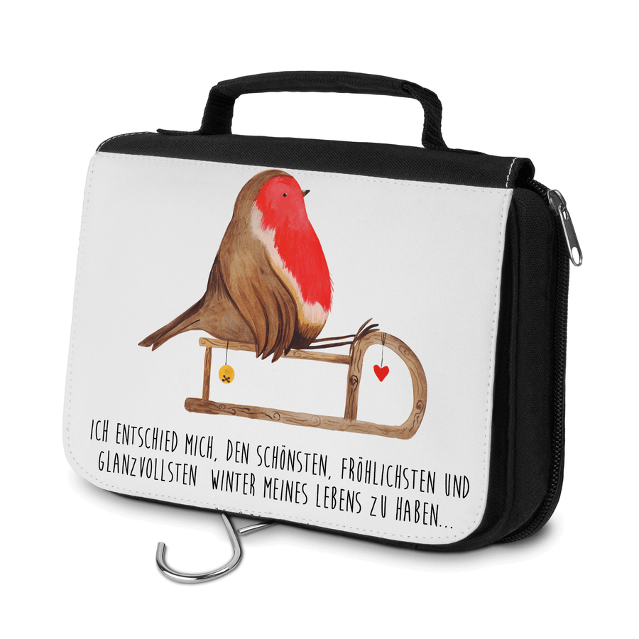 Kulturbeutel Rotkehlchen Schlitten - mit Spruch - Weiß