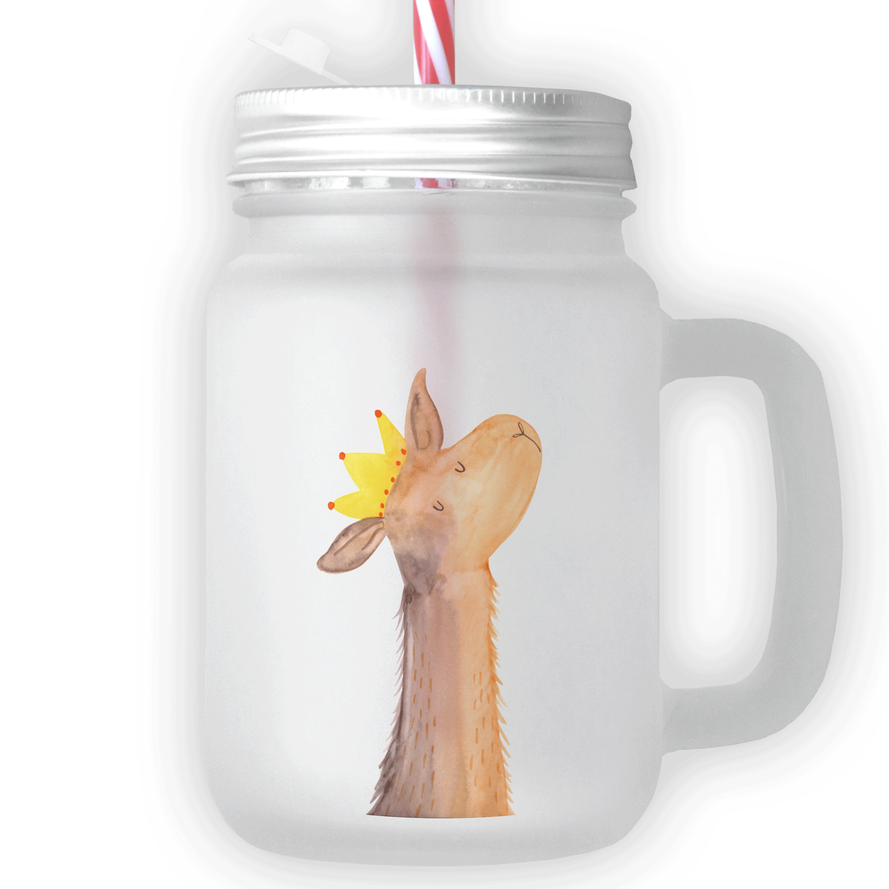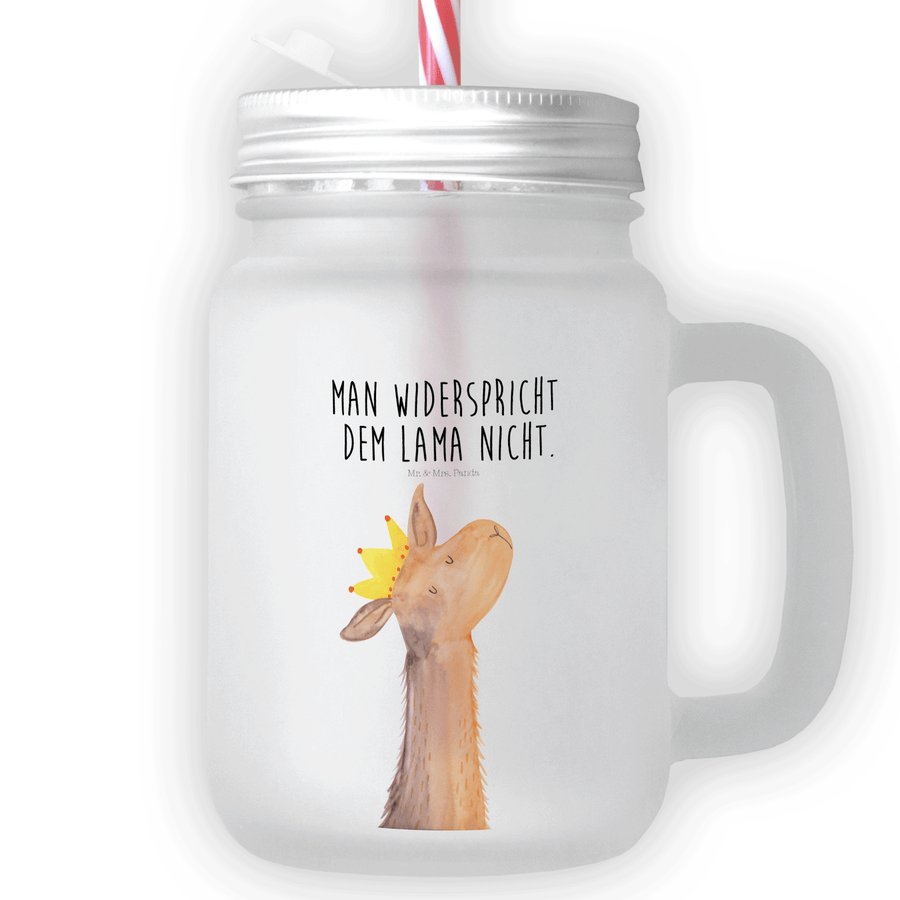 Trinkglas Mason Jar Lamakopf König - mit Spruch