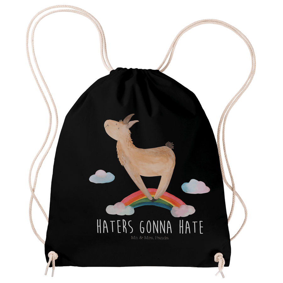 Sportbeutel Lama Regenbogen - mit Spruch - Schwarz
