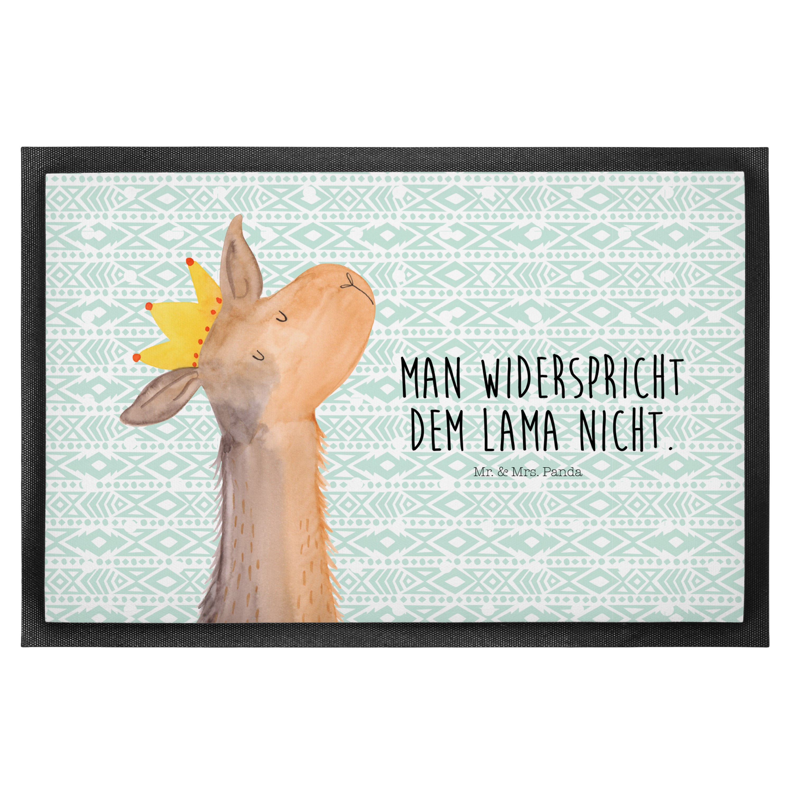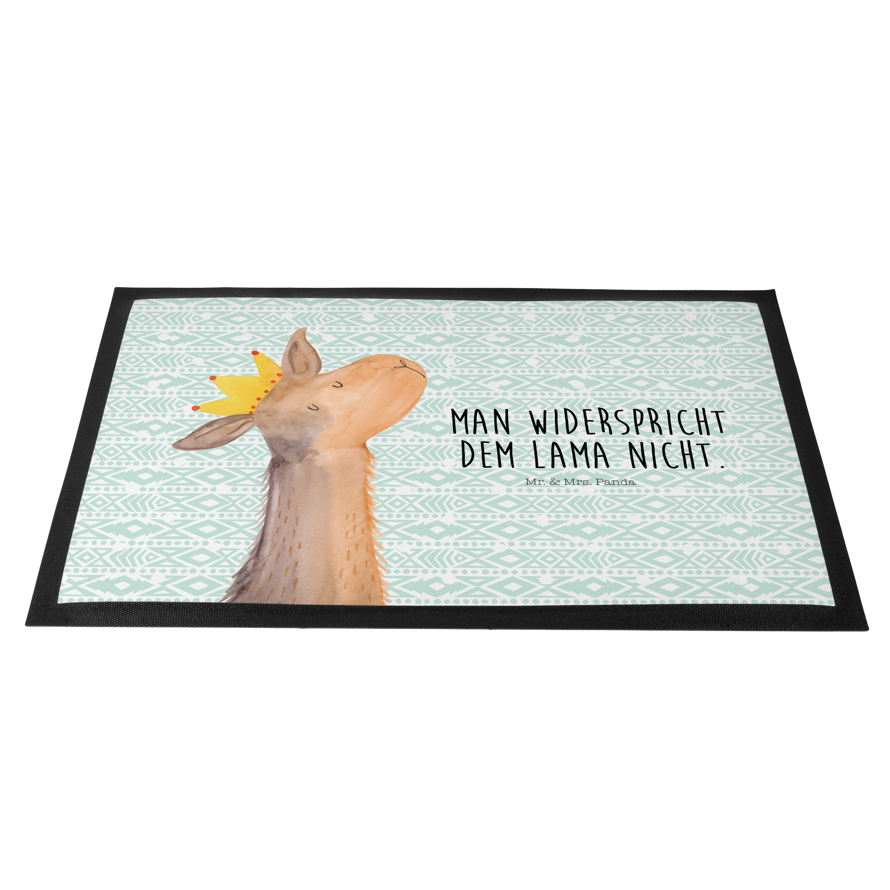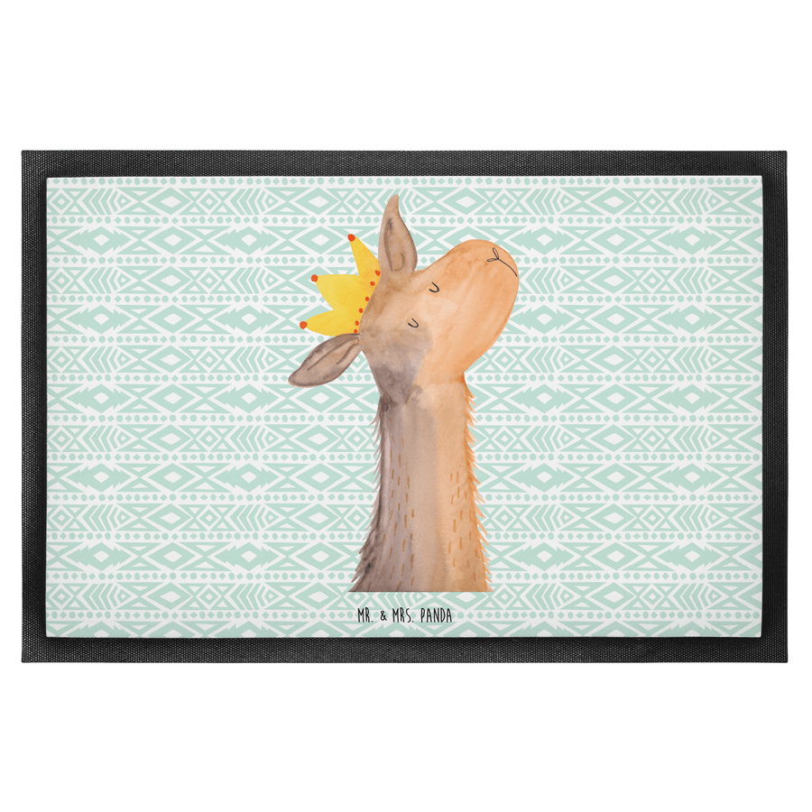 Fußmatte Lamakopf König - 60 x 90 cm - ohne Spruch - Aztekenblau