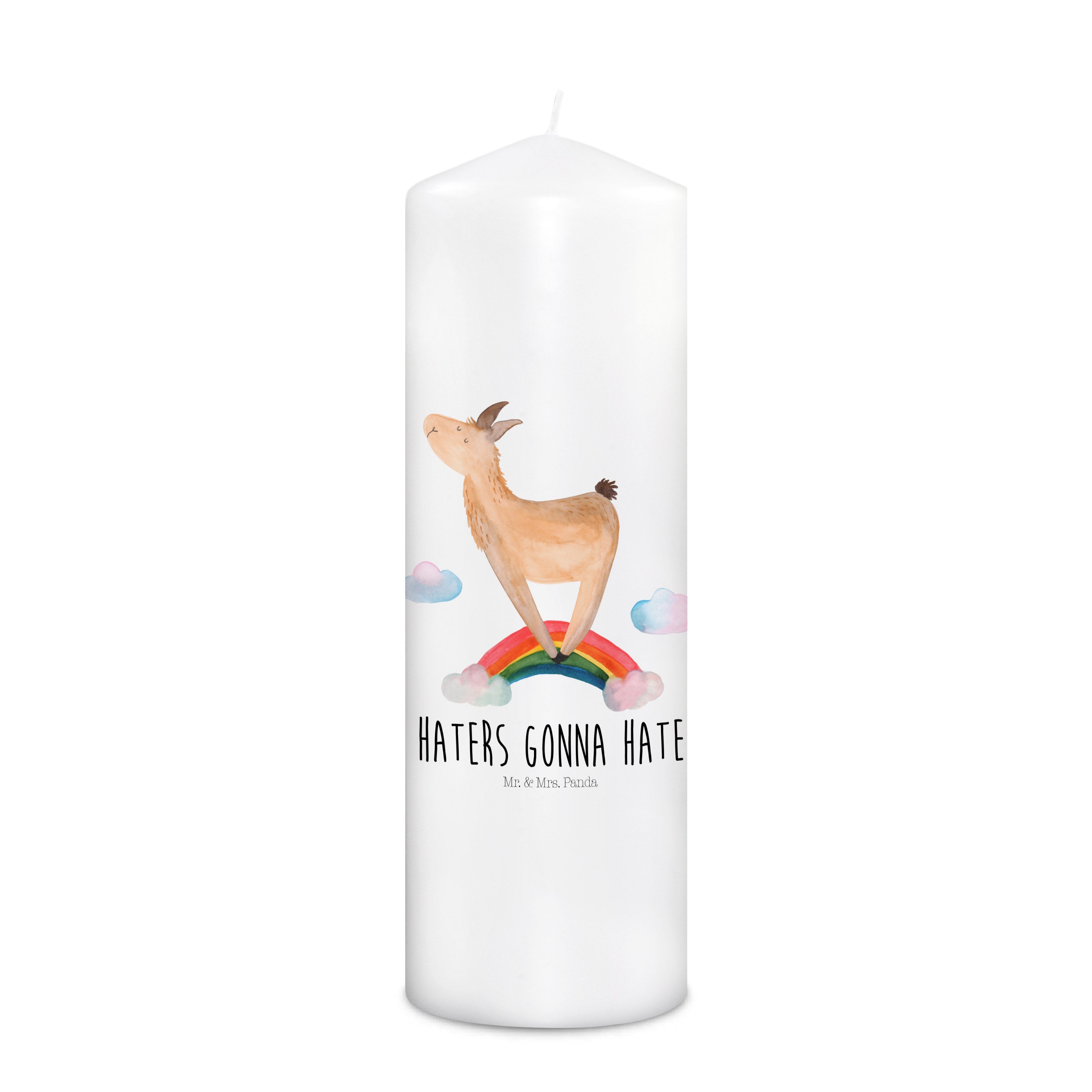 Kerze Lama Regenbogen - 15 x 7 cm - mit Spruch