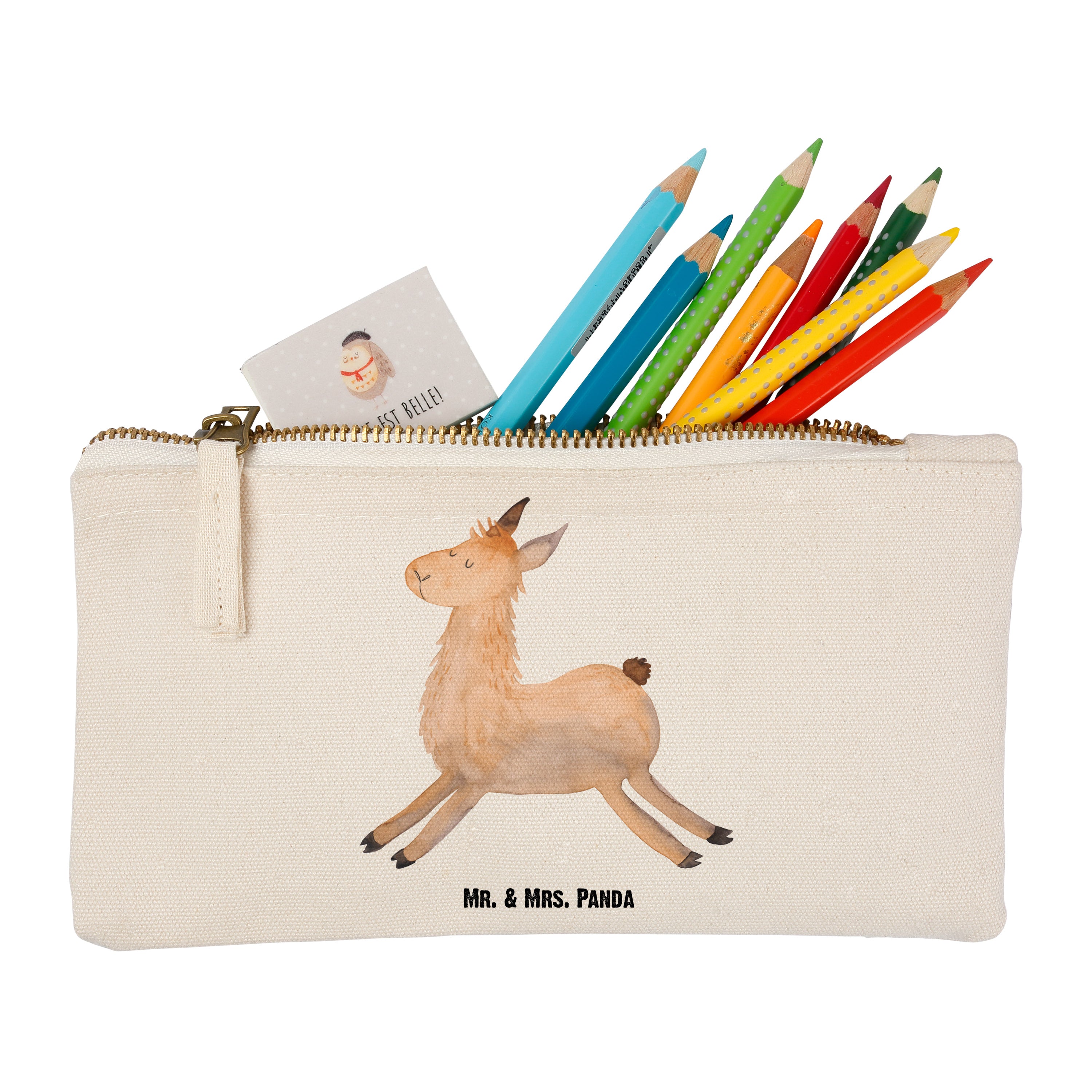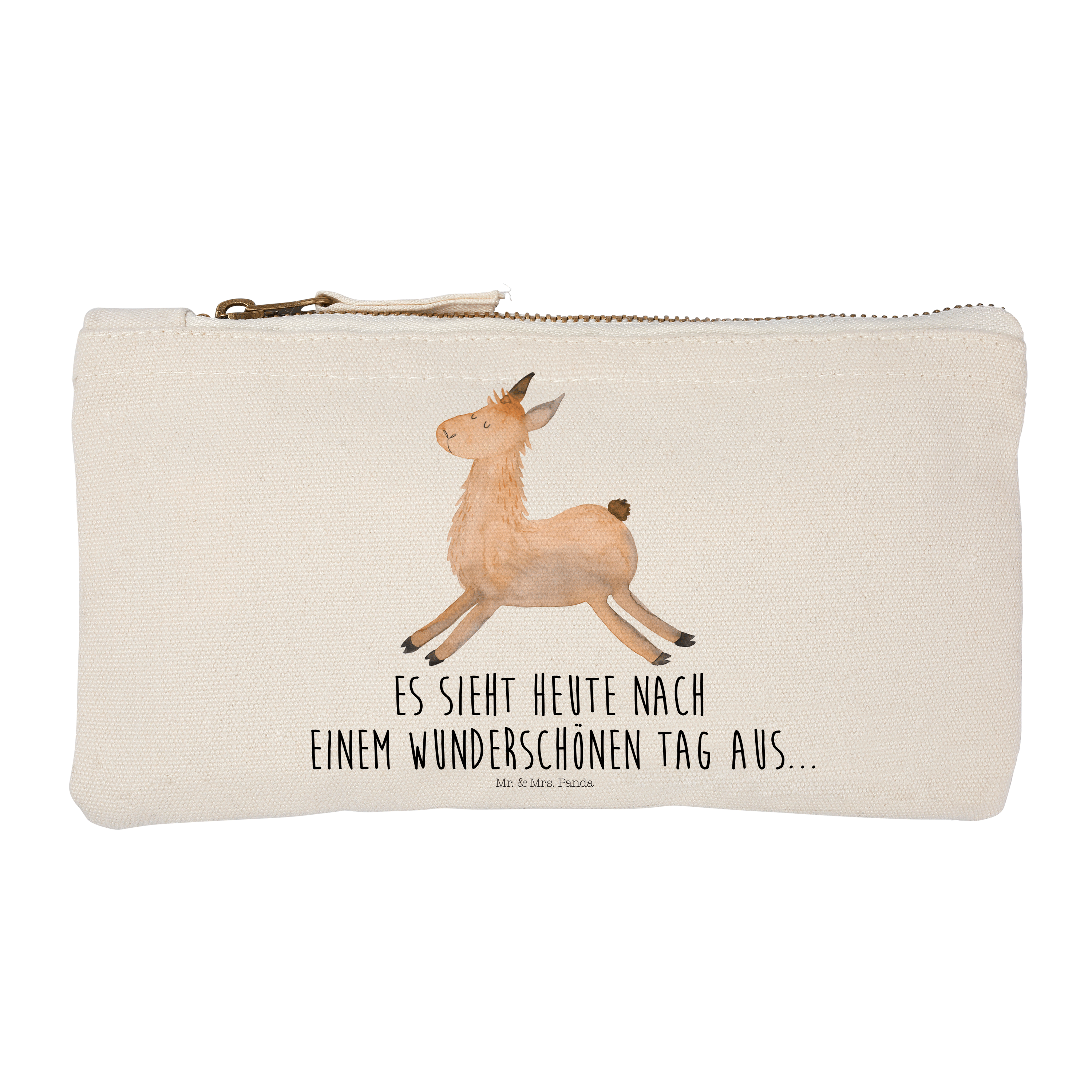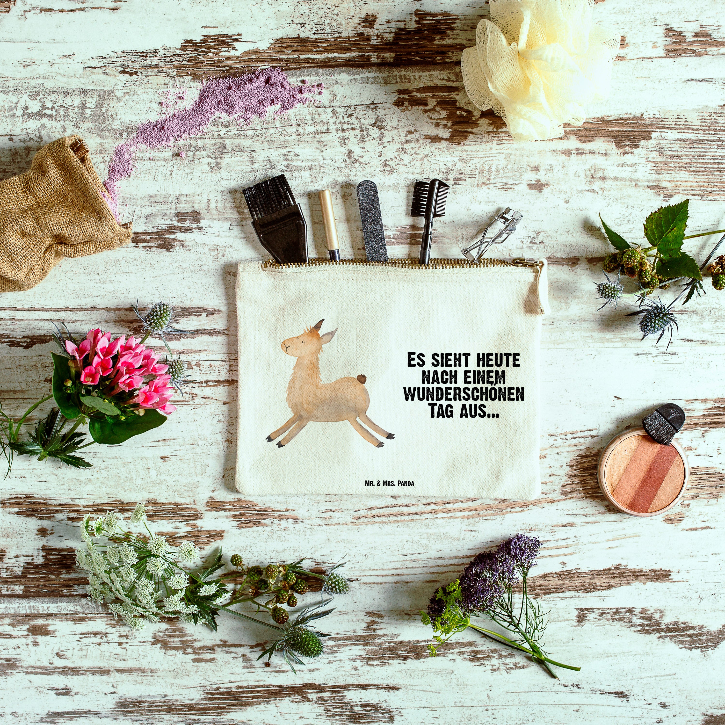 Eine wunderschöne Schminktasche von Mr. & Mrs. Panda mit Reißverschlussfach. Diese Kosmetiktasche oder Kosmetikbeutel ist aus 100% Baumwolle und bedruckt mit unseren wunderschönen handgezeichneten Motiven. Hol dir dieses einzigartige Etui direkt nach Hause - du kannst die Tasche auch perfekt als Stiftemäppchen, Federmappe, Schlamper oder Etui verwenden.