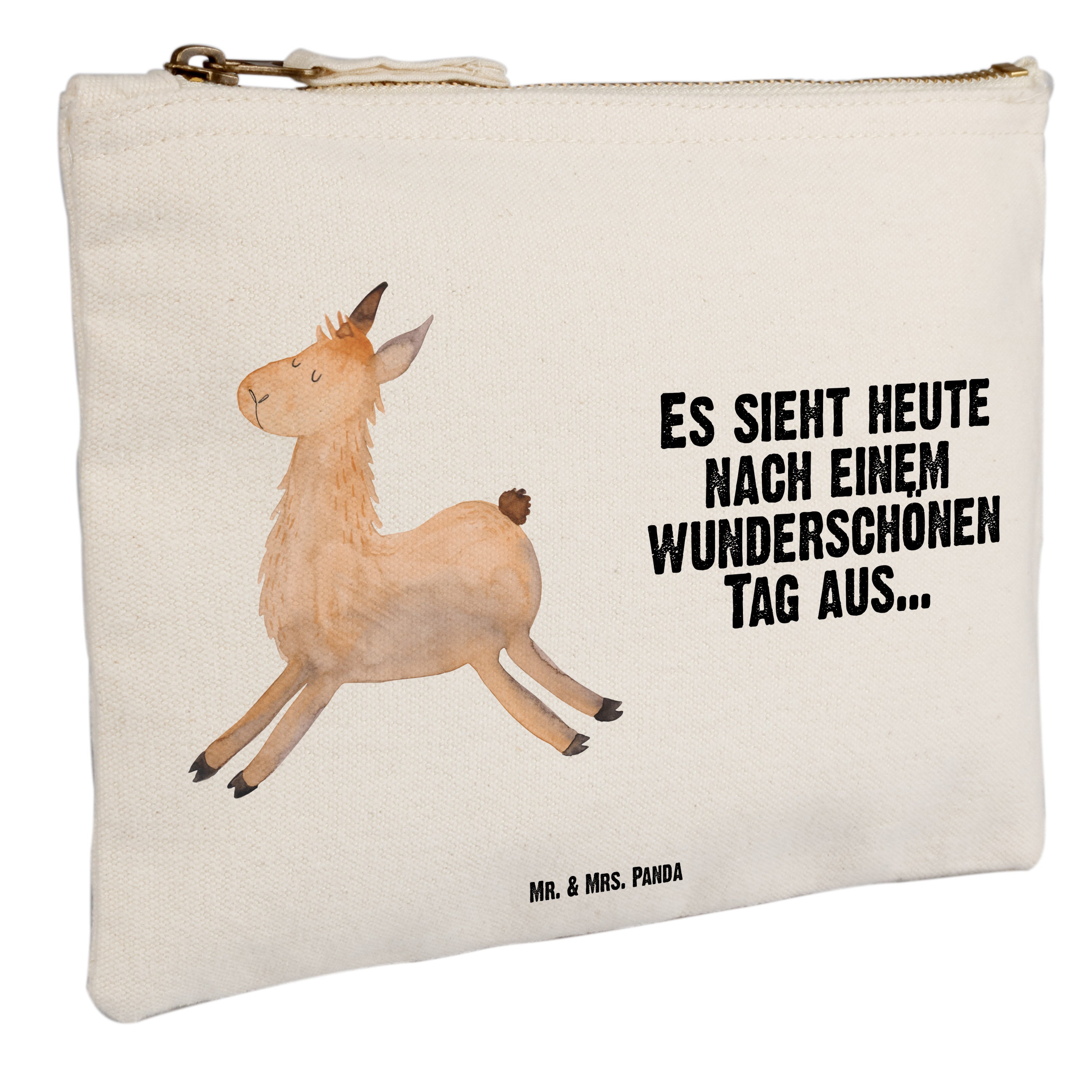 Schminktasche Lama springend - Grösse XL Große - mit Spruch