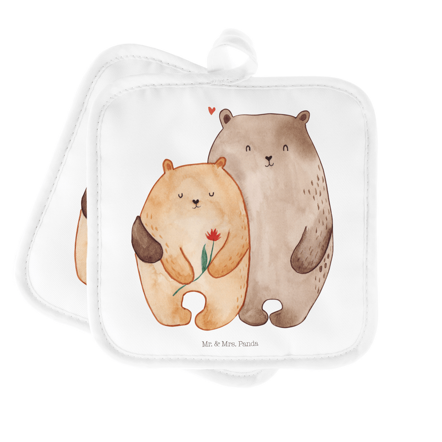 2er Set Topflappen Bären Liebe - ohne Spruch - Weiß