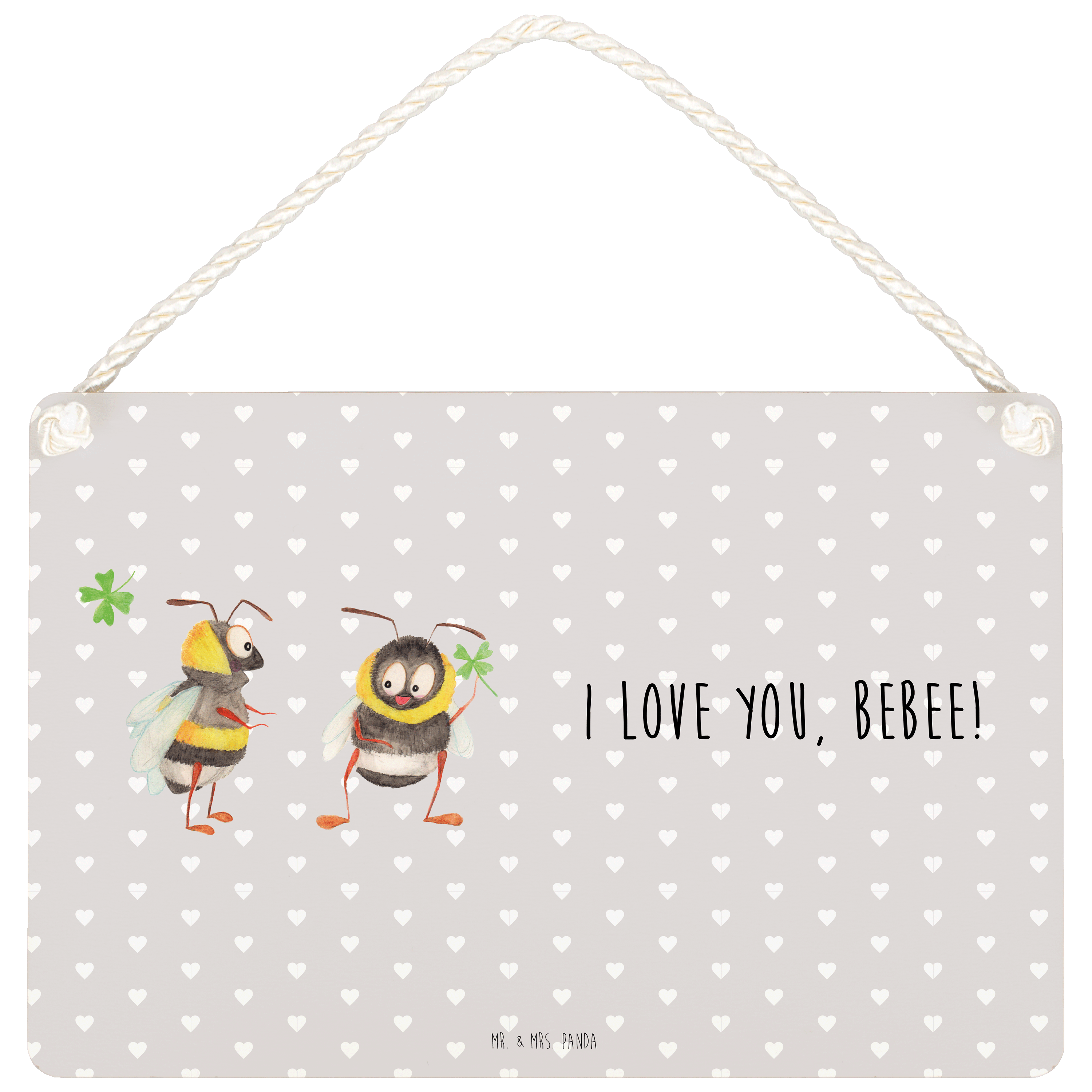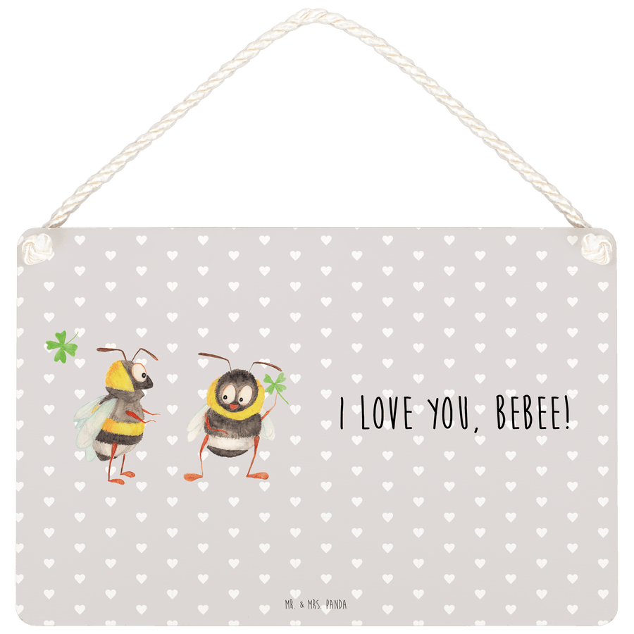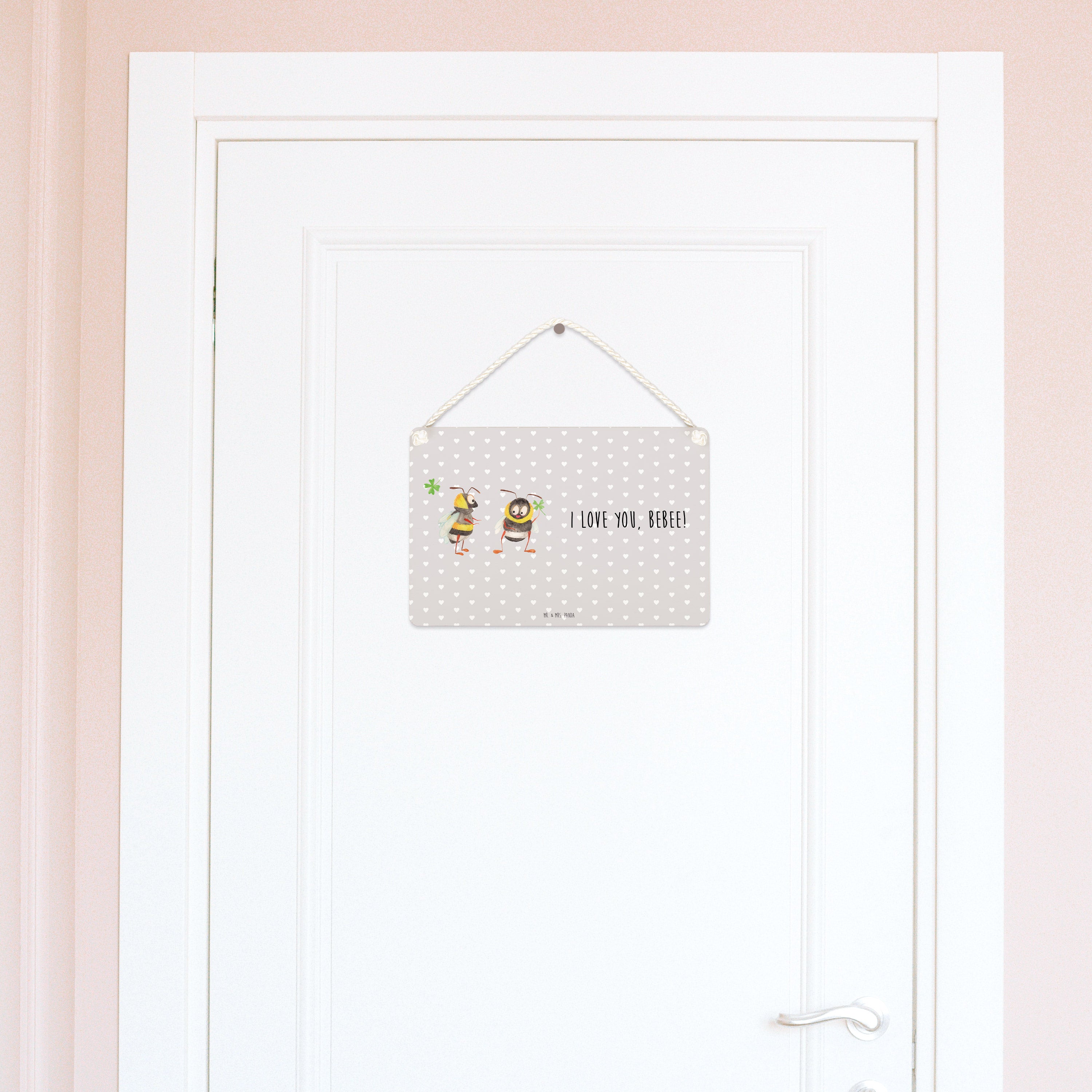 Deko Schild Bienen Paar - Grau Pastell - DIN A4