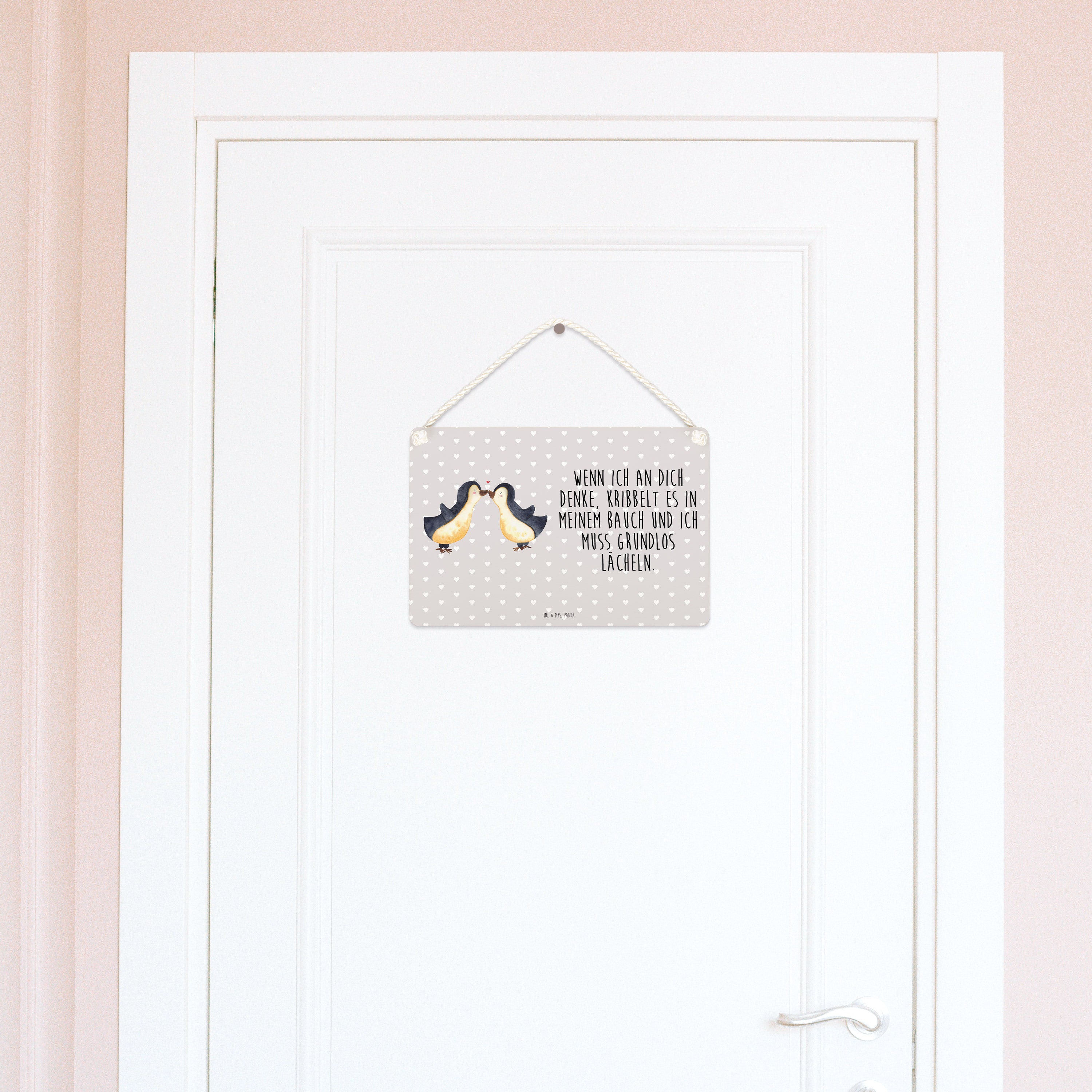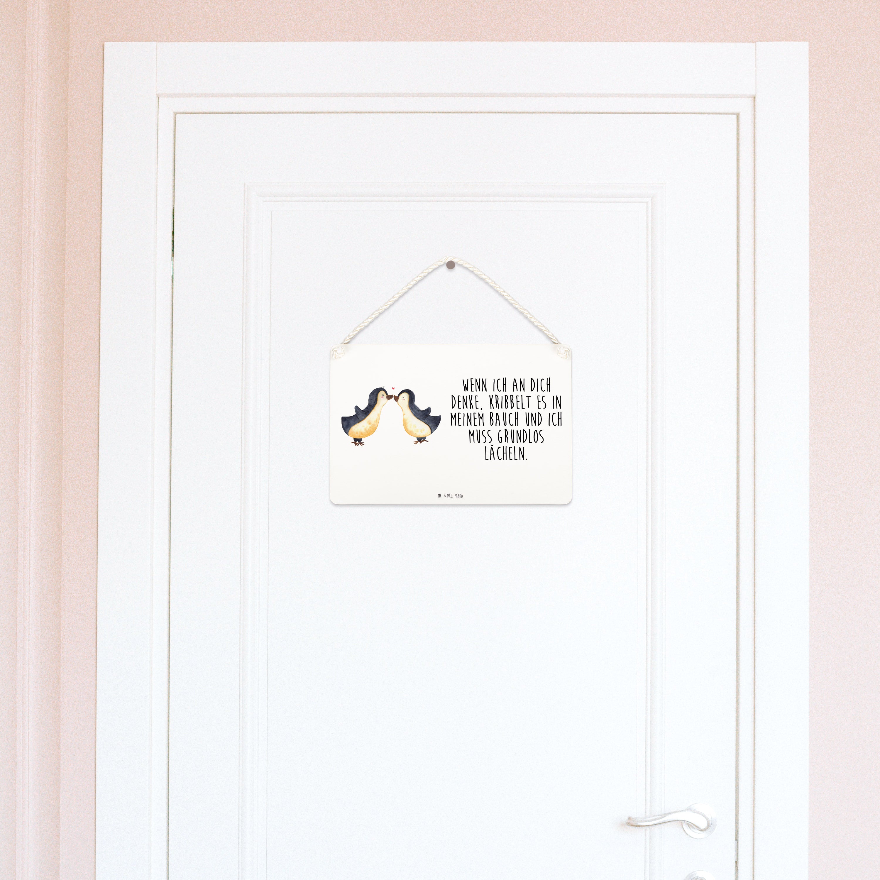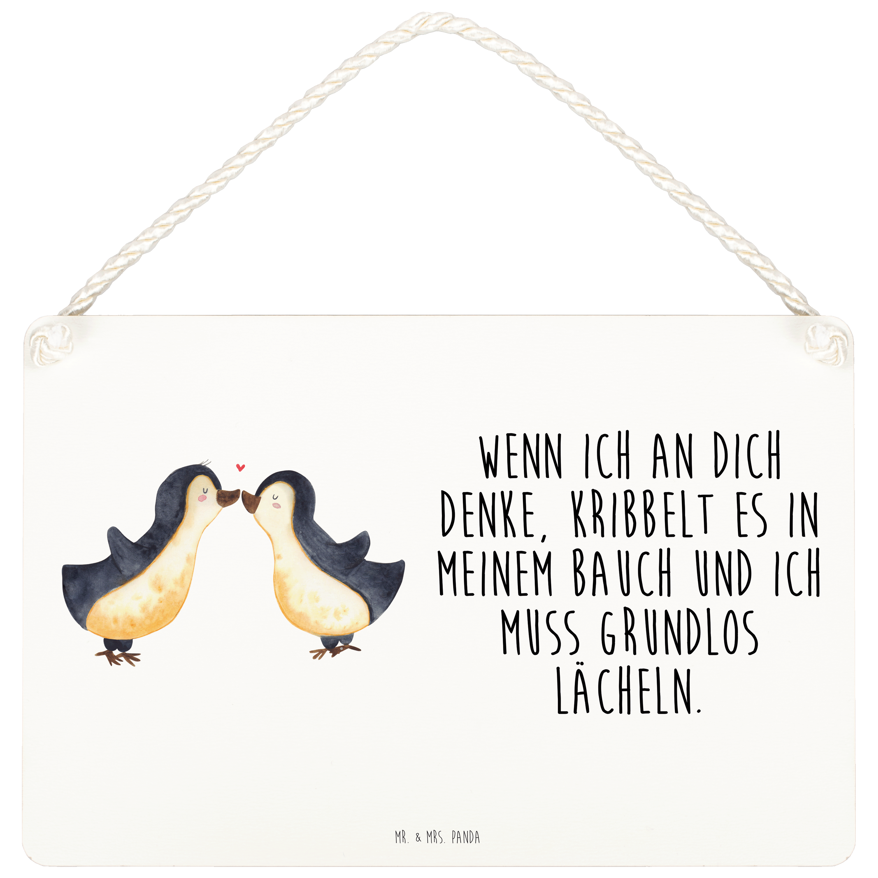 Deko Schild Pinguine Kuss - Weiß - DIN A5
