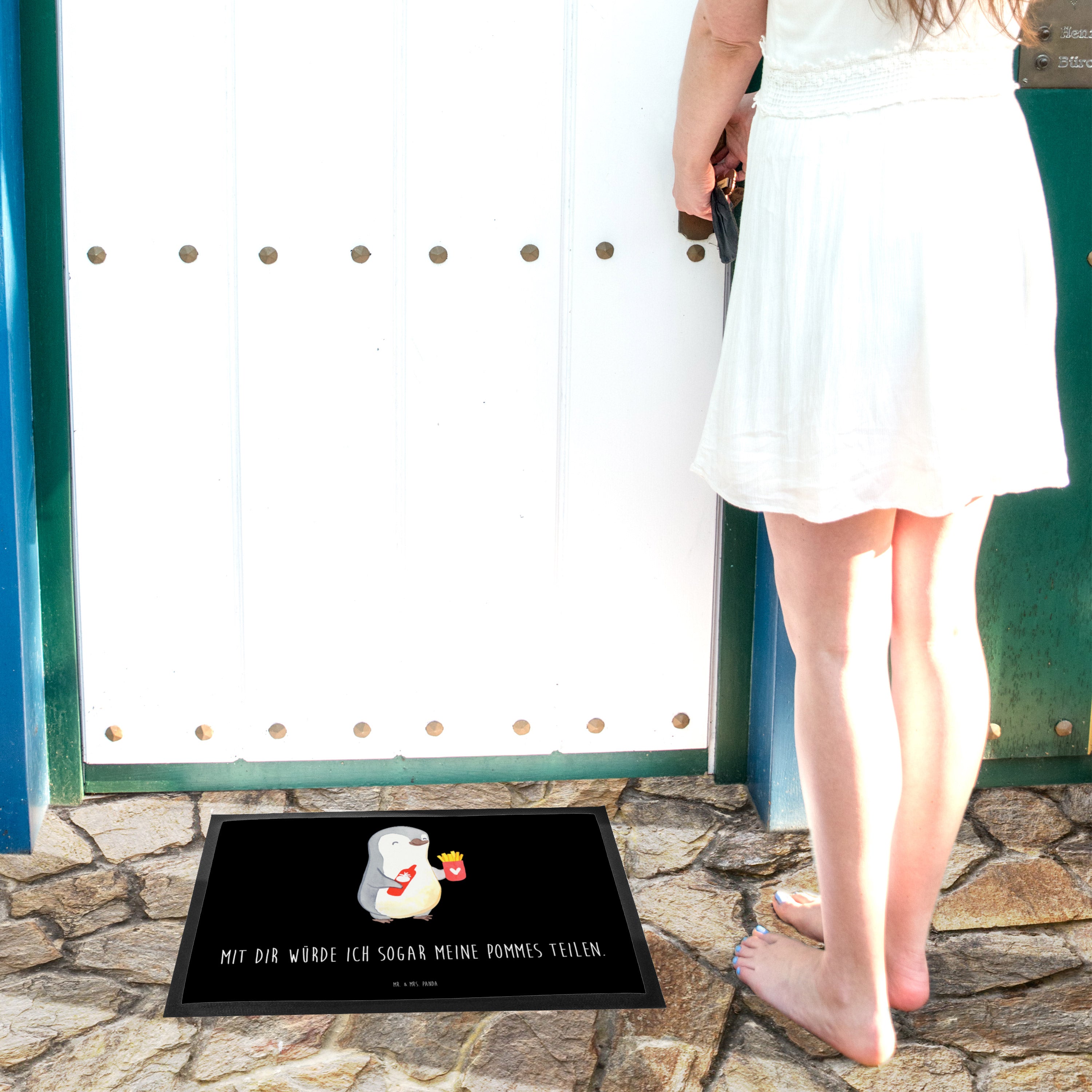 Fußmatte Pinguin Pommes - 60 x 90 cm - Schwarz