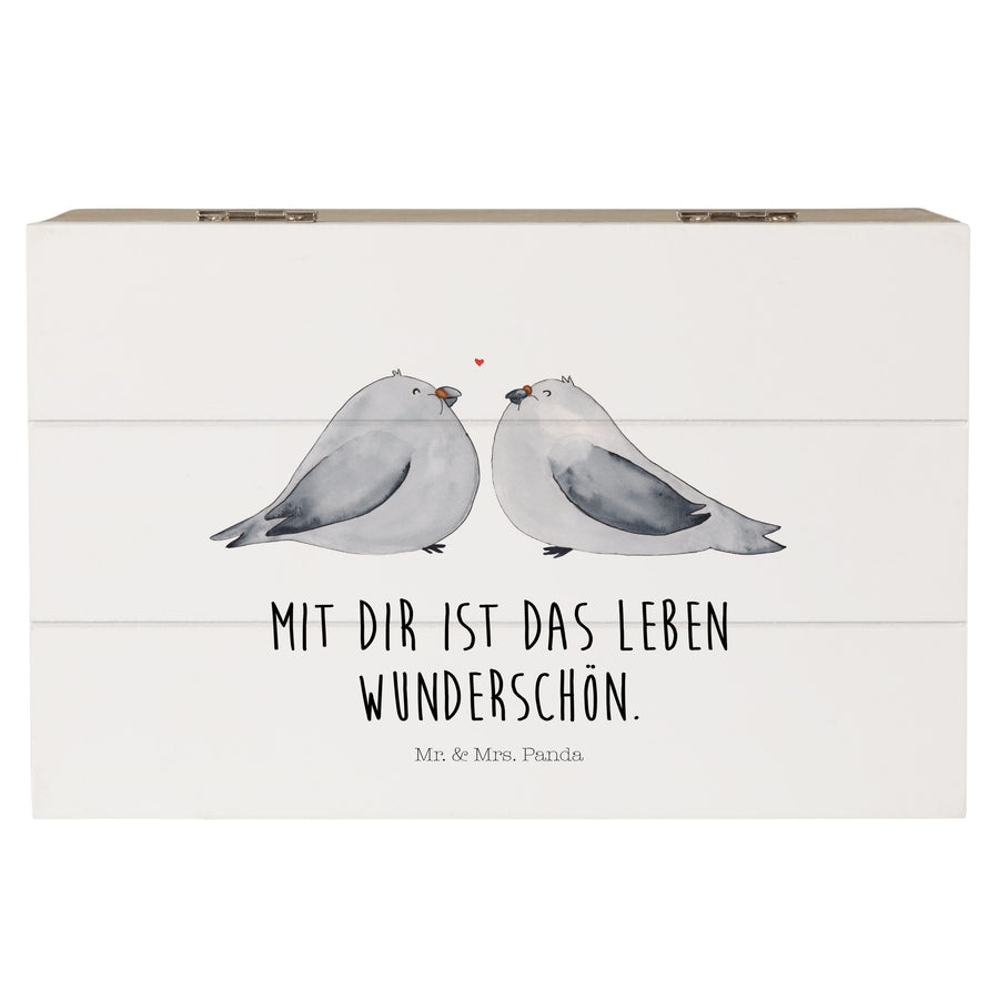 Holzkiste Turteltauben Liebe - 19 x 12 cm - mit Spruch - Weiß