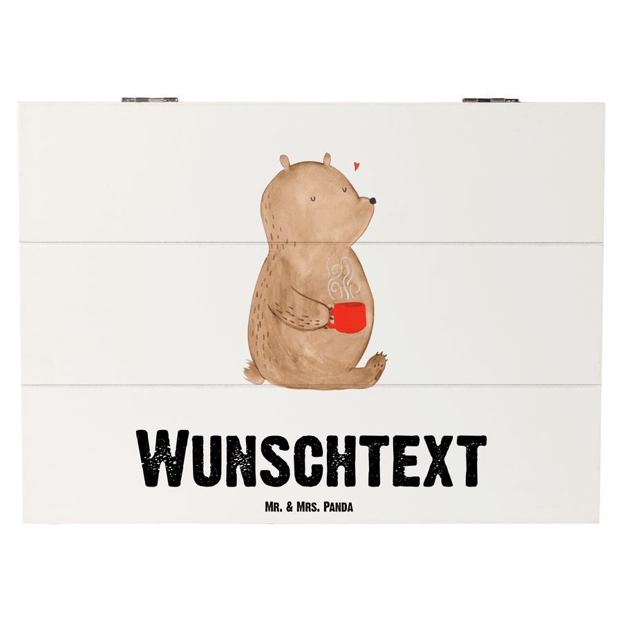 Personalisierte Holzkiste Bär Morgenkaffee - 25 x 18 cm - Weiß