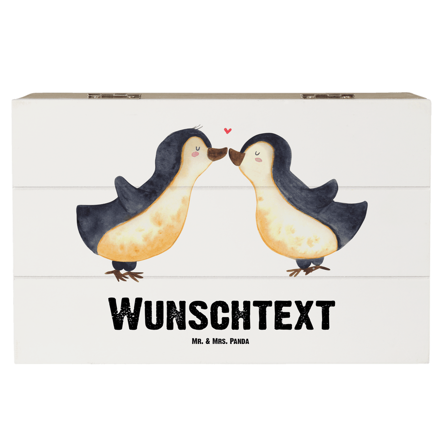 Personalisierte Holzkiste Pinguine Kuss - Weiß - 19 x 12 cm