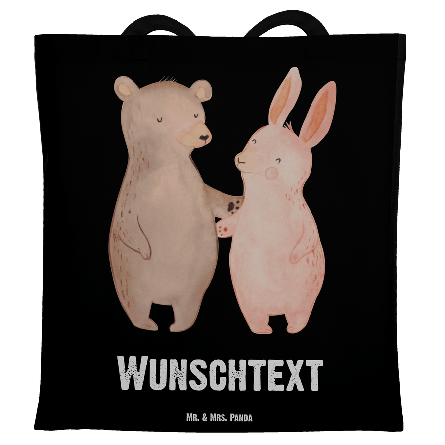 Personalisierte Tragetasche Bär Hase Umarmen - Schwarz