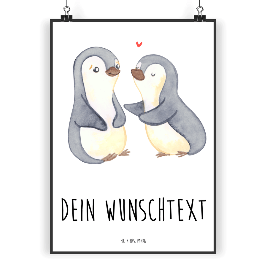 Personalisiertes Poster Pinguine trösten - Weiß - DIN A5