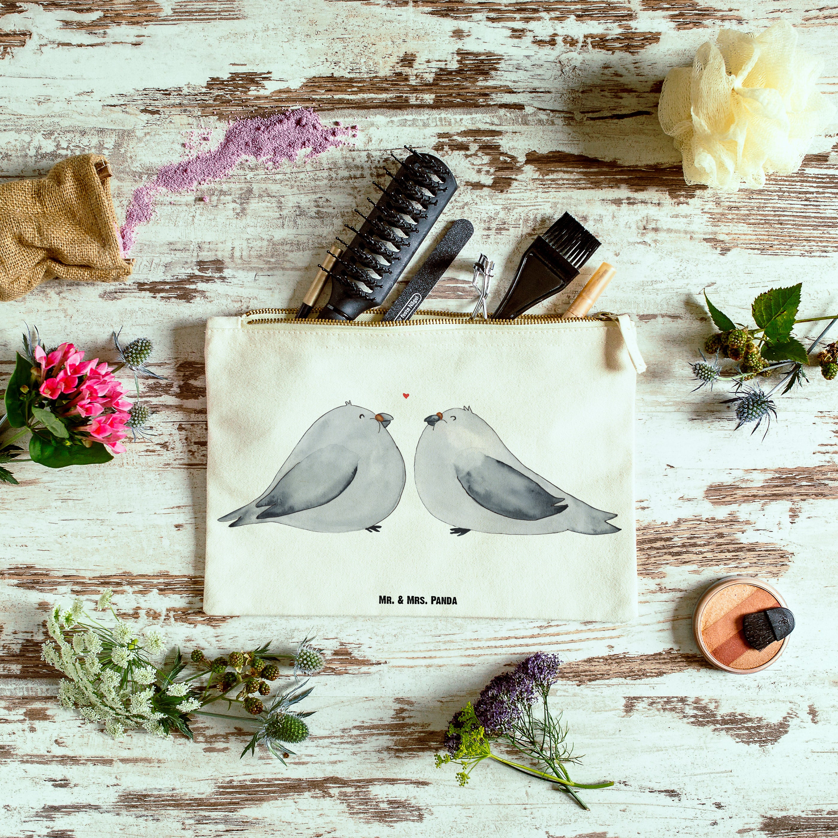 Schminktasche Turteltauben Liebe - Grösse XL Große - mit Spruch