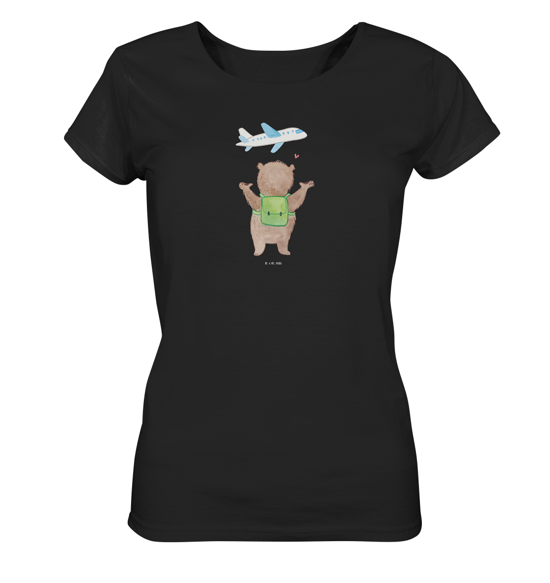 Shirt Damen Bär Flugzeug - Größe XL - Schwarz