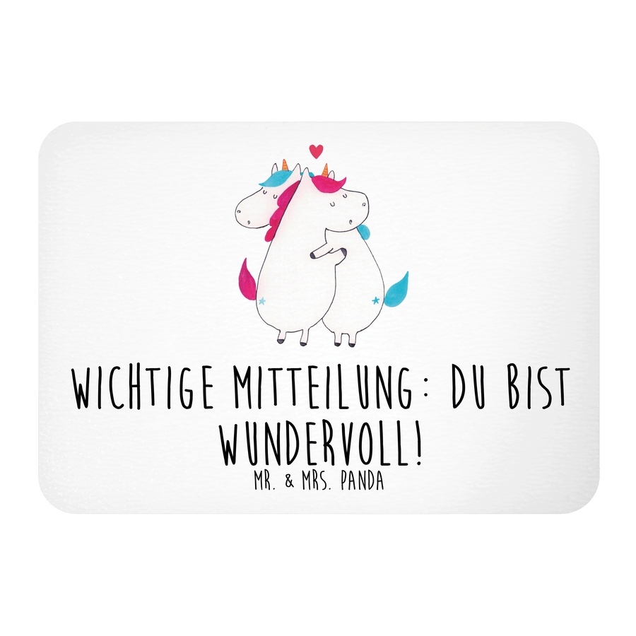 Für diese äußerst dringende Mitteilung muss immer Zeit sein. Man kann den Liebsten gar nicht oft genug sagen, dass sie wundervoll sind. Und wer sollte diese Botschaft besser transportieren als zwei kuschelnde Einhörner?