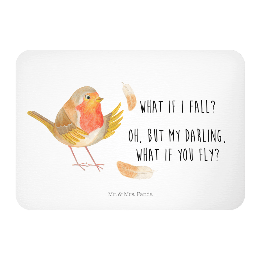 Magnet Rotkehlchen mit Federn - mit Spruch - Weiß