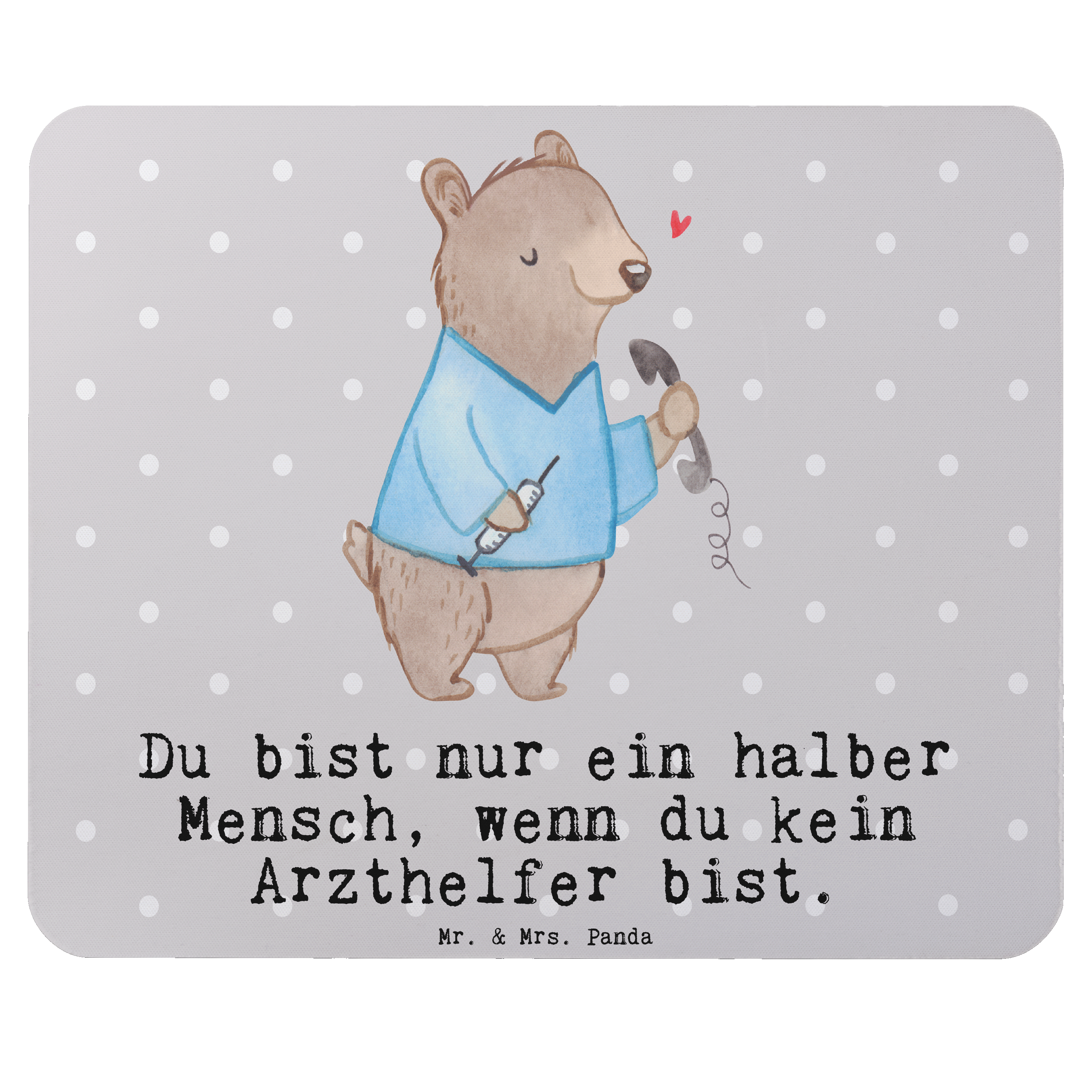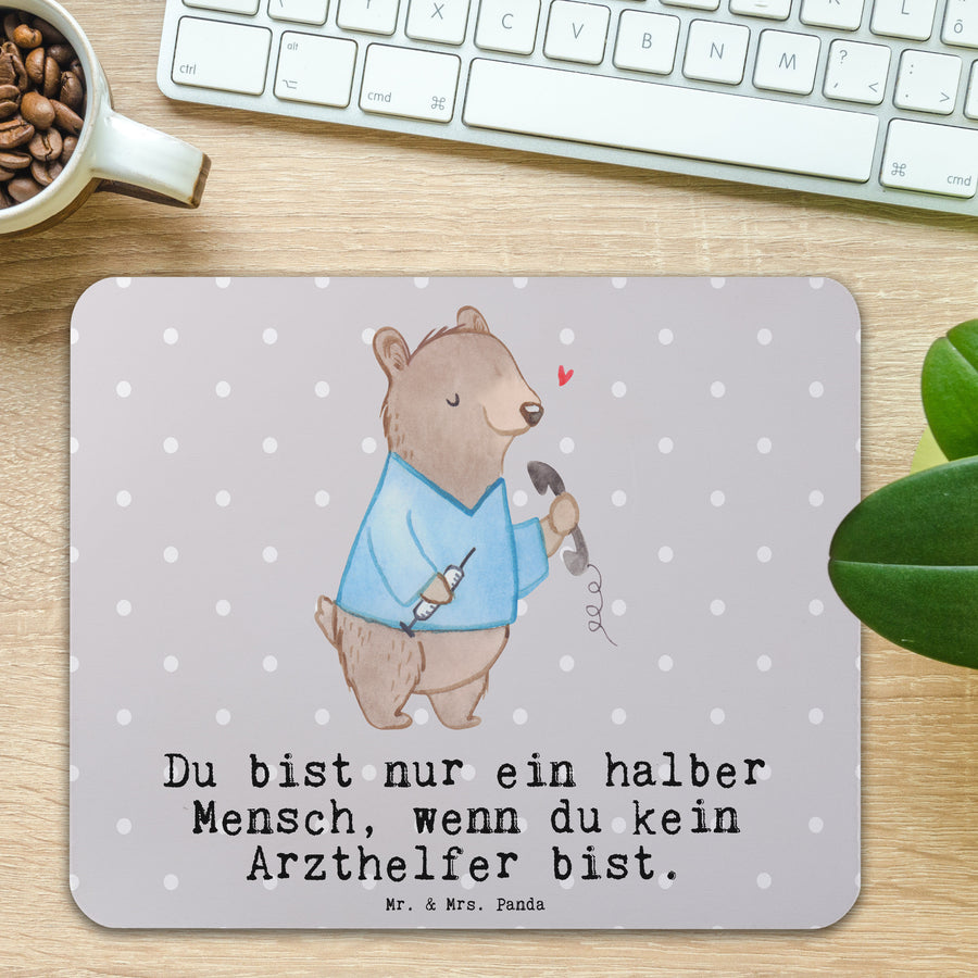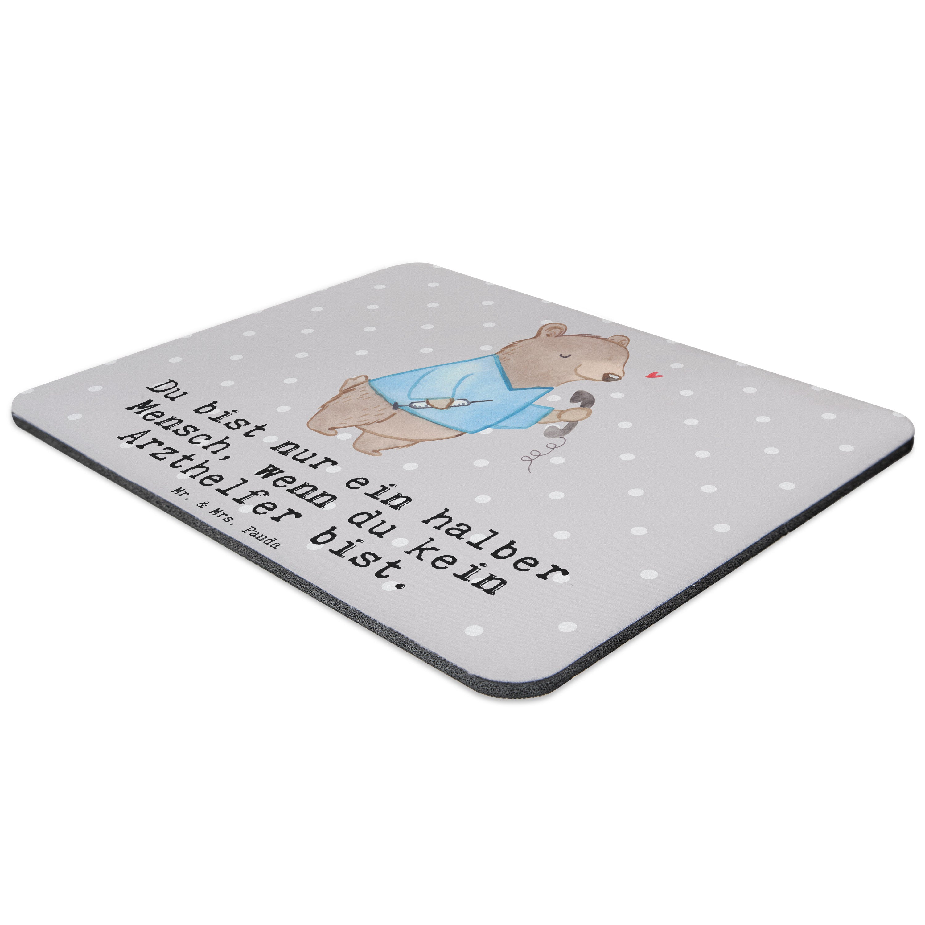Mauspad Arzthelfer mit Herz - Grau Pastell