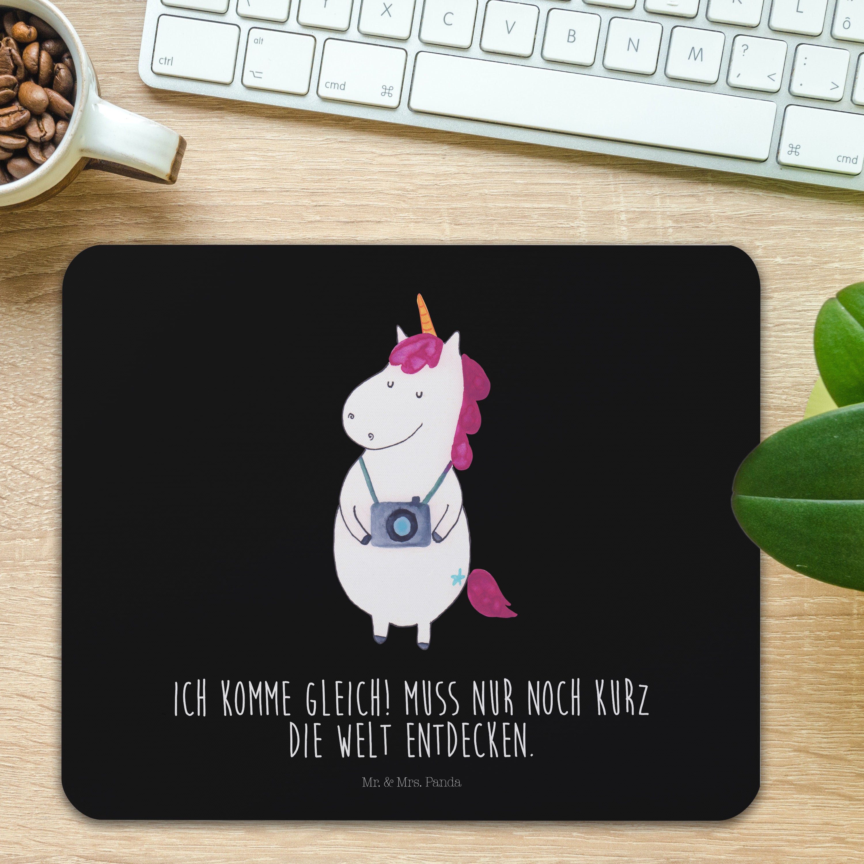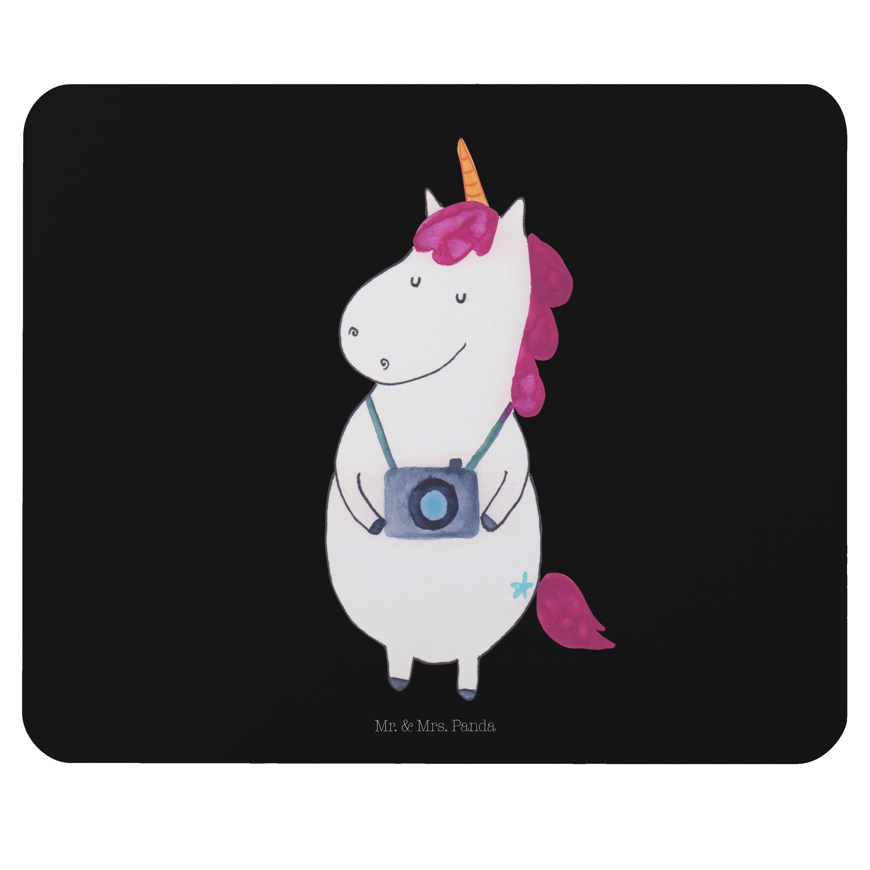 Mauspad Einhorn Fotograf - mit Spruch - Schwarz