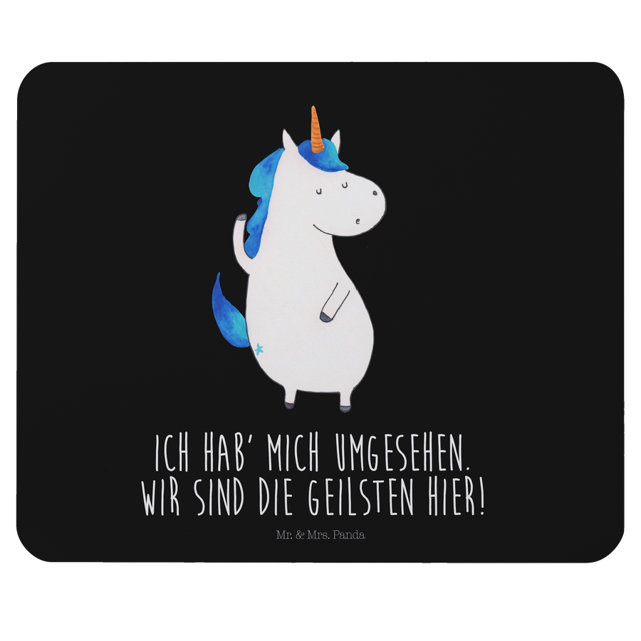 Mauspad Einhorn Mann - mit Spruch - Schwarz