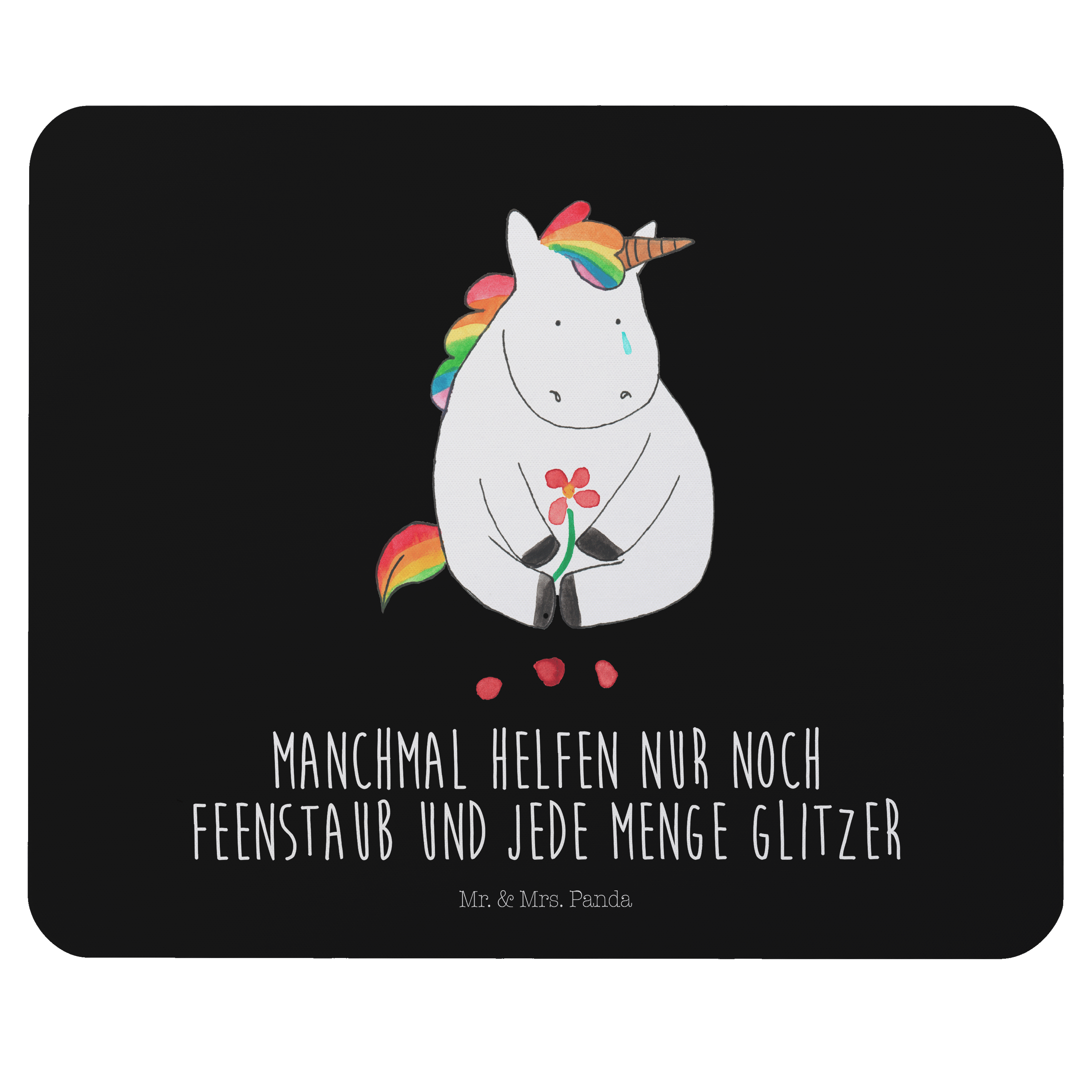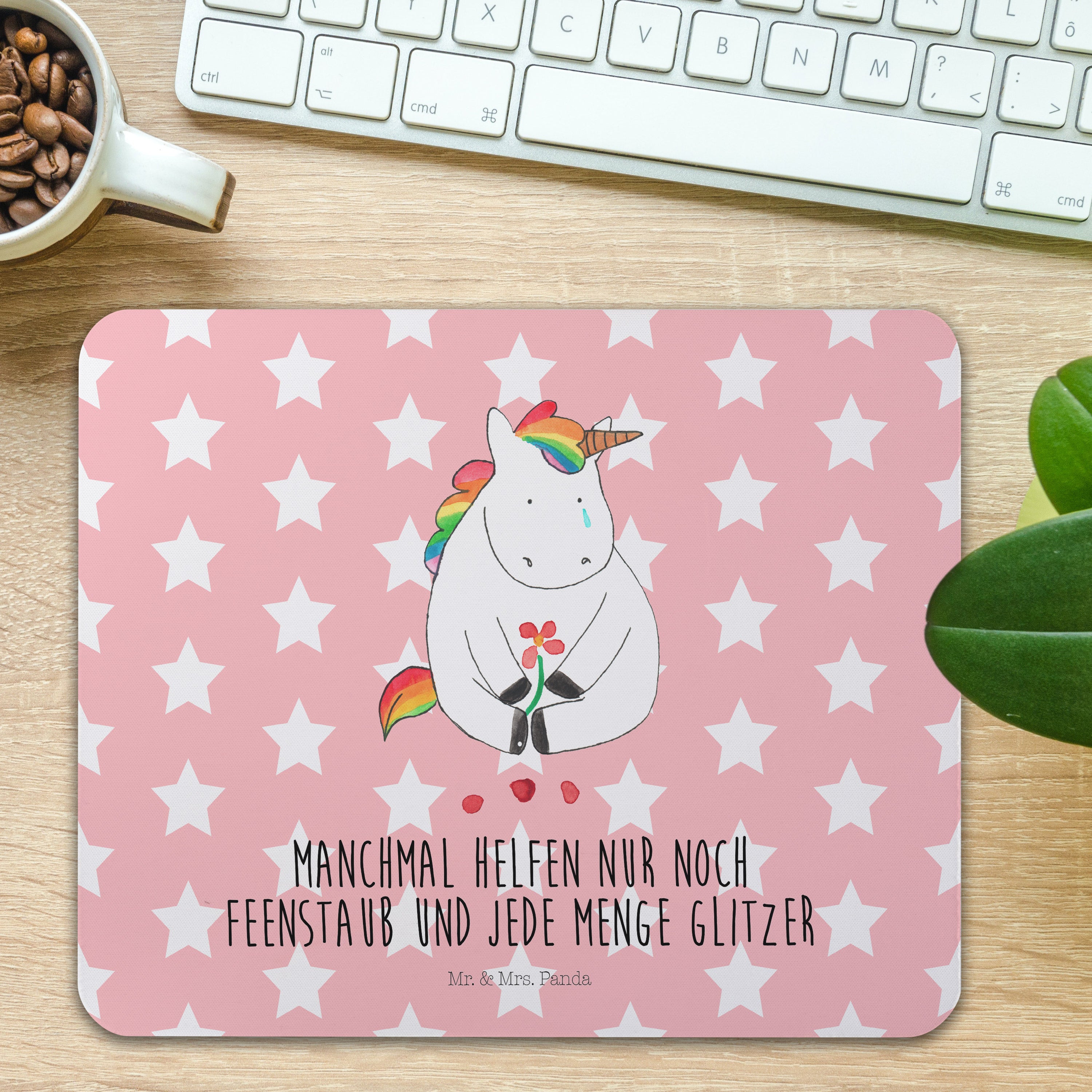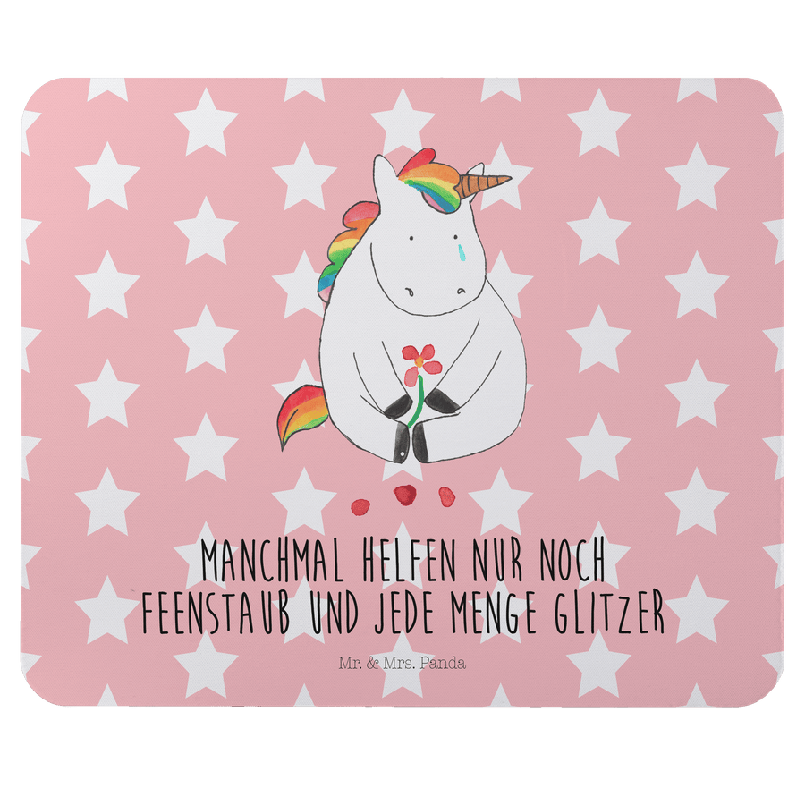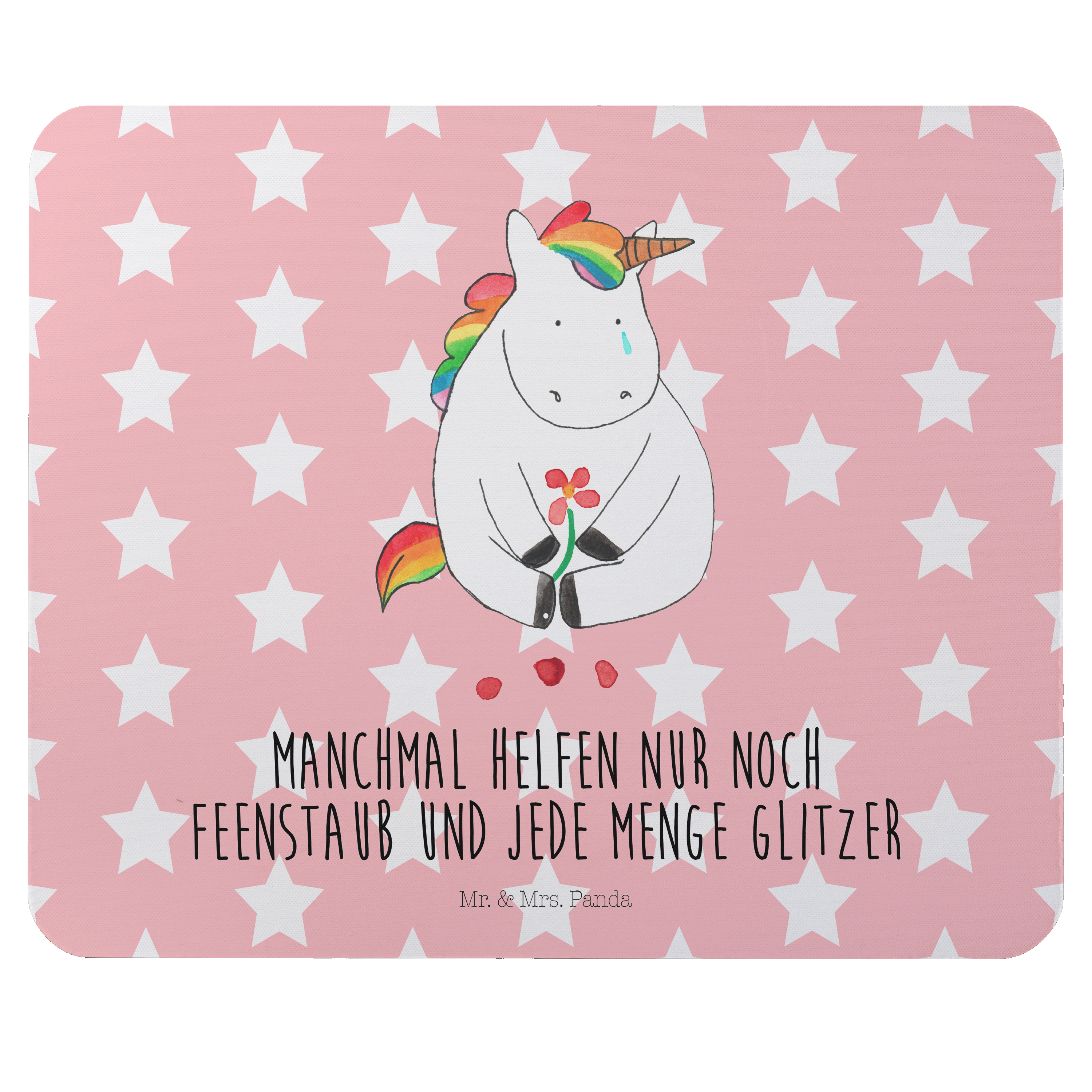 Mauspad Einhorn Traurig - mit Spruch - Rot Pastell