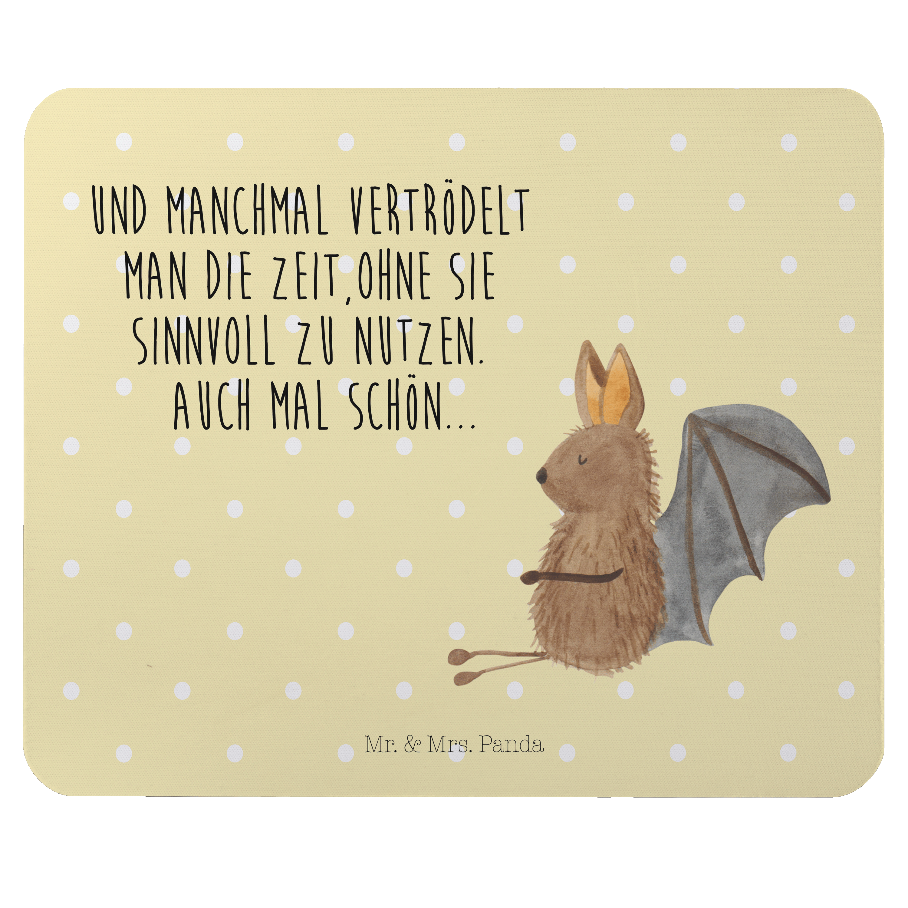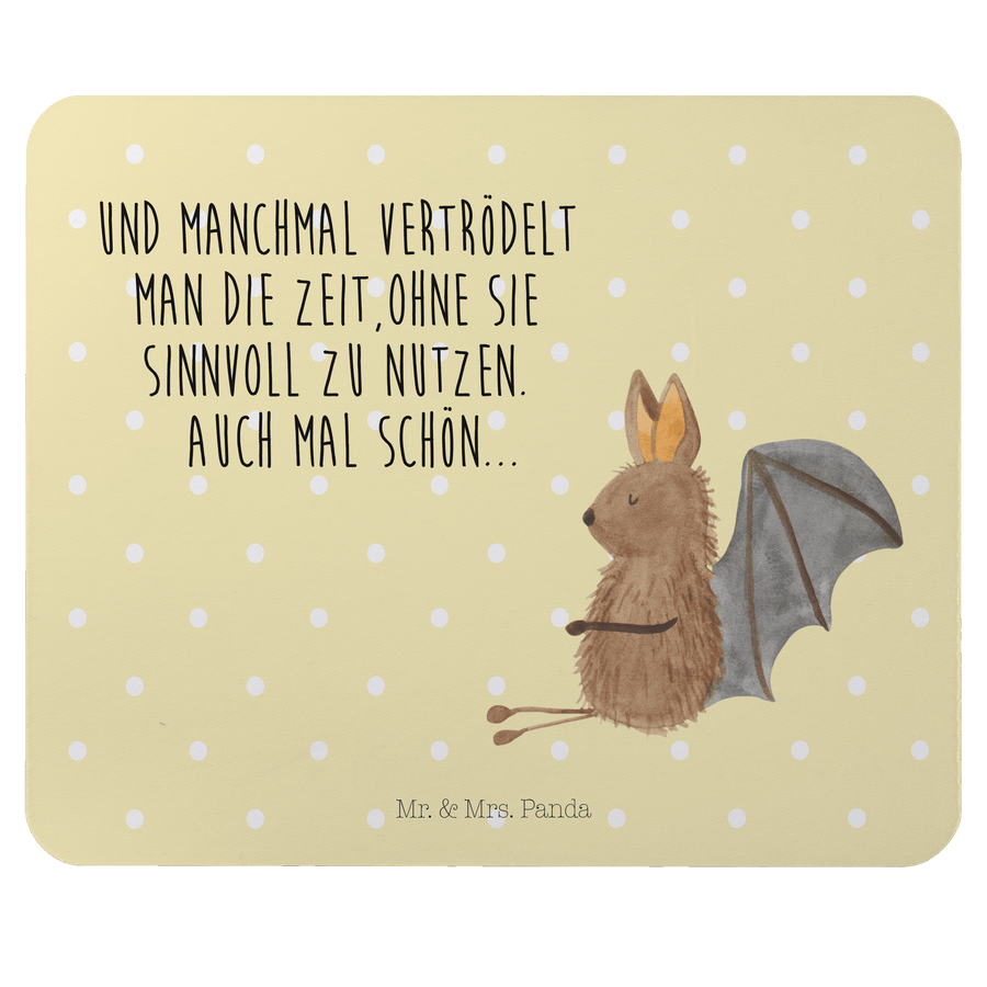 Mauspad Fledermaus sitzend - mit Spruch - Gelb Pastell