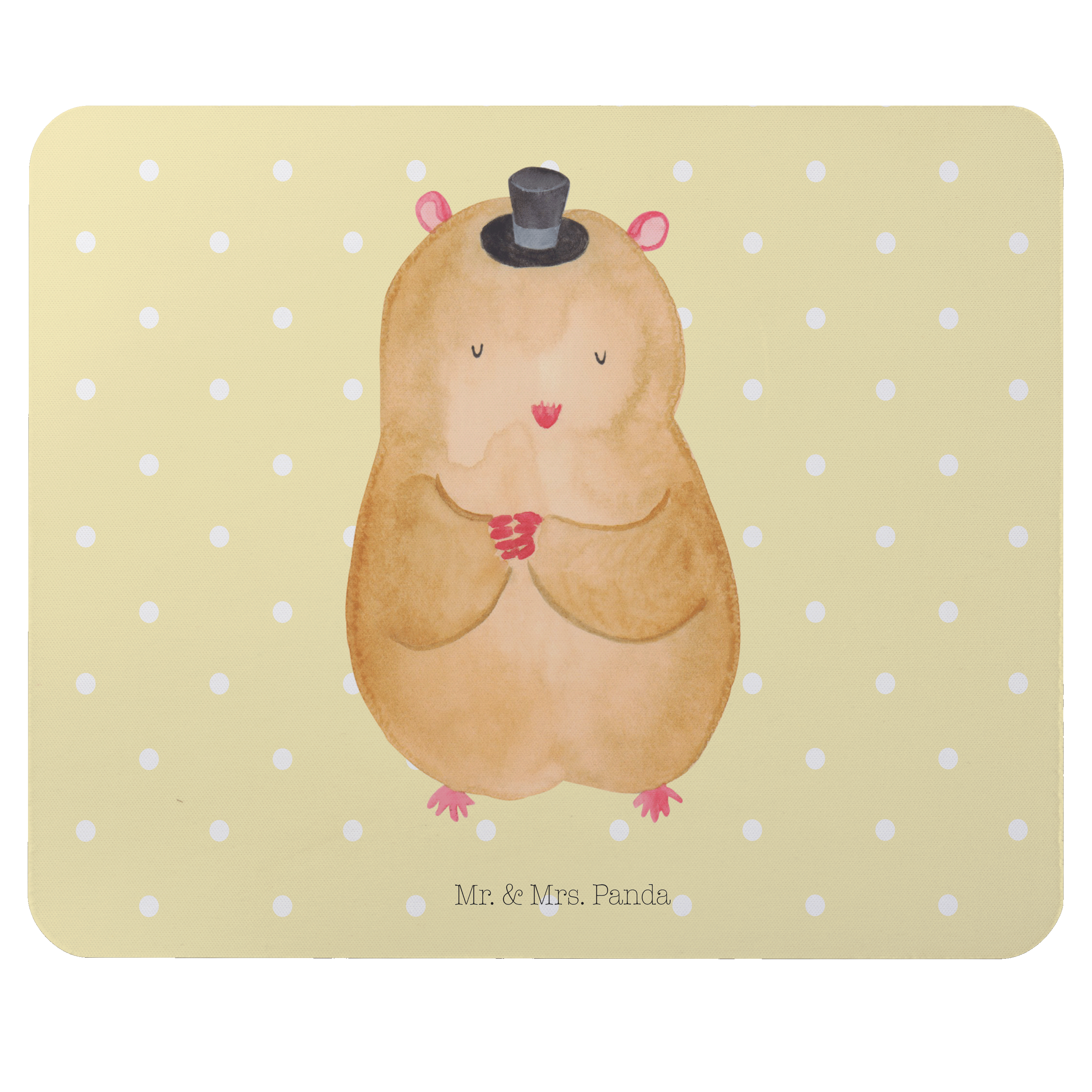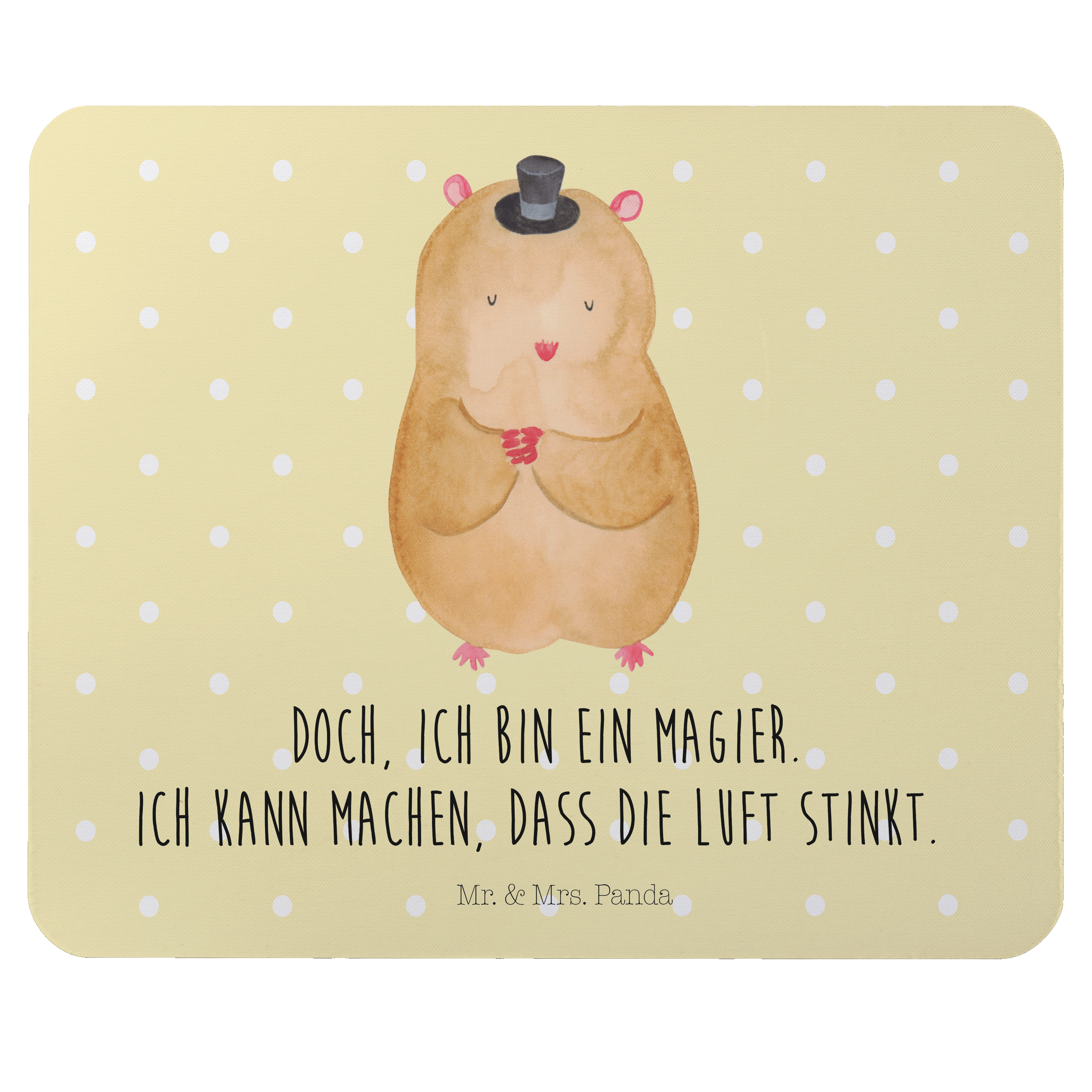 Mauspad Hamster mit Hut - mit Spruch - Gelb Pastell