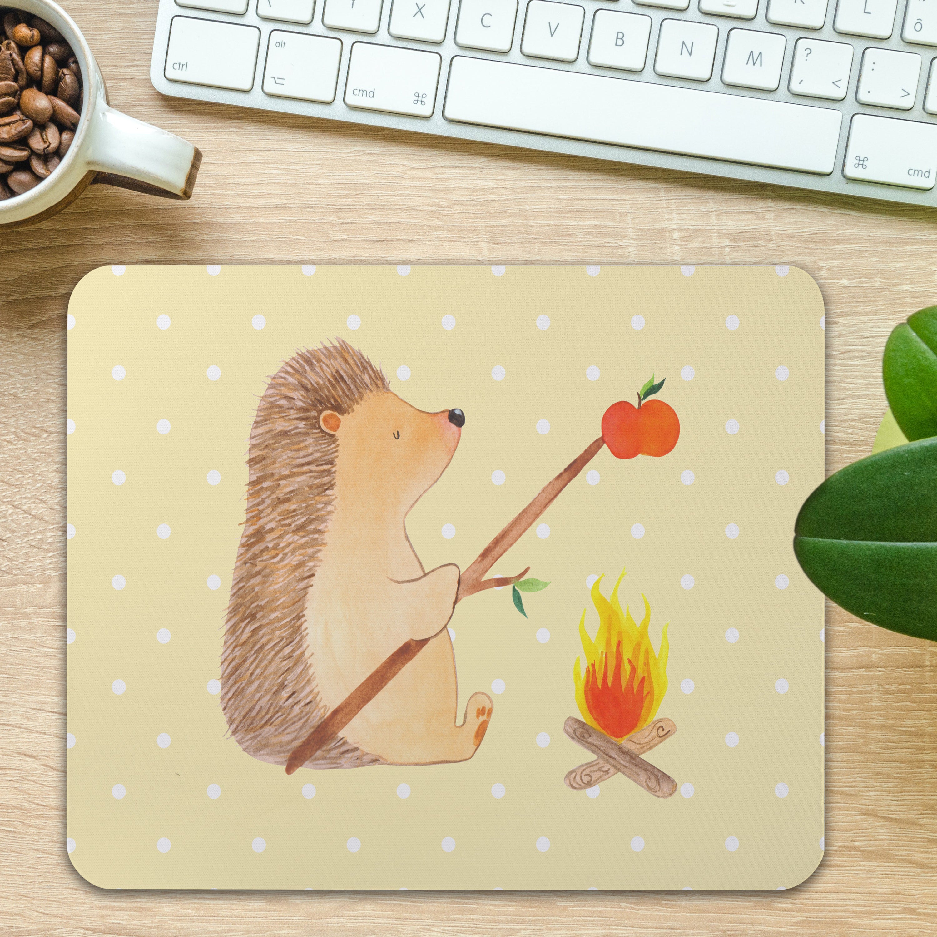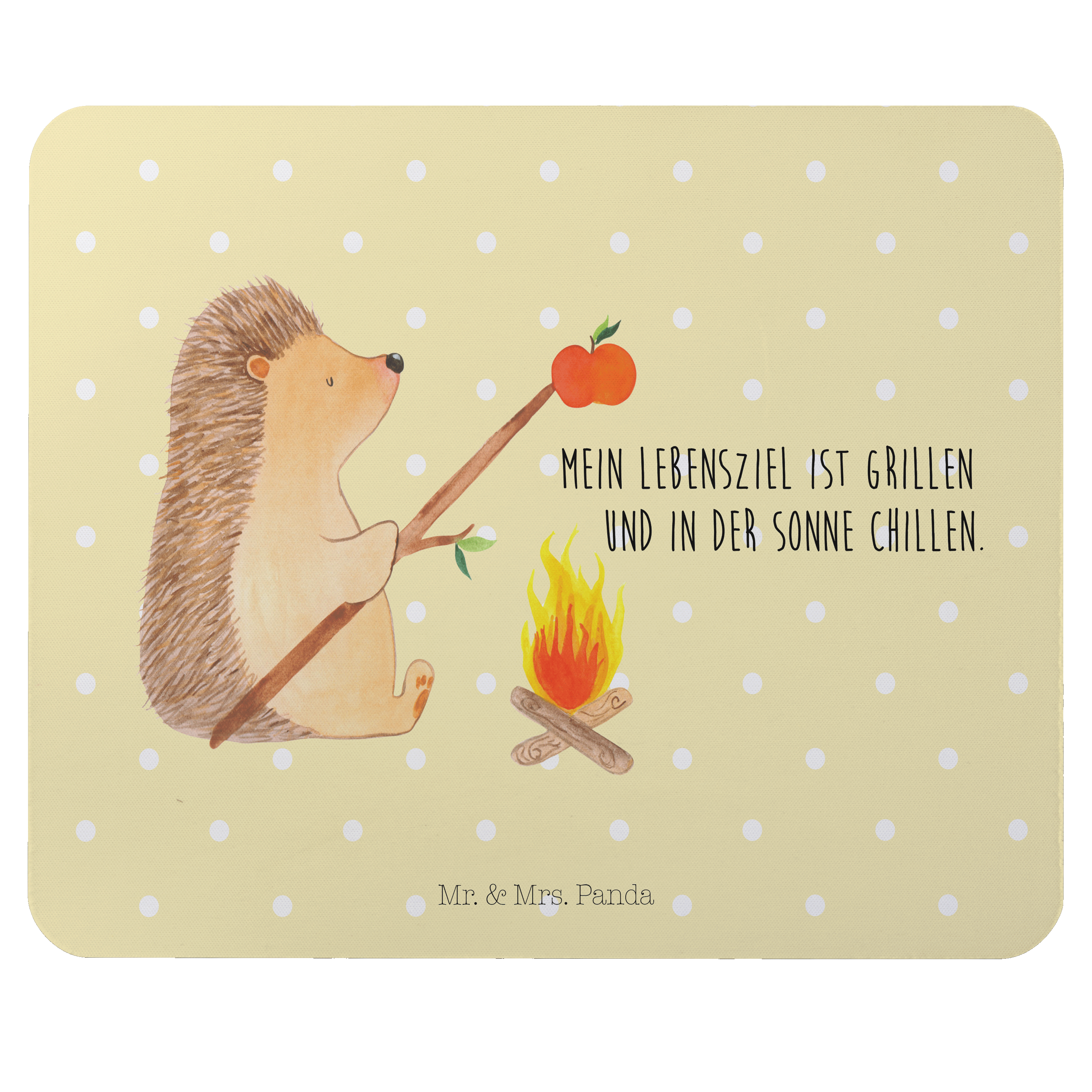 Gibt es etwas, das besser schmeckt als frisch gegrilltes Essen über dem offenen Feuer? Dieser kleine Igel scheint das auch so zu finden. Mit einem zufriedenen Lächeln auf den Lippen sitzt er entspannt um das Lagerfeuer und grillt sich einen köstlichen Apfel. Lass dich von diesem liebevollen Design von Mr. & Mrs. Panda verzaubern und genieße die warmen Erinnerungen, die es in deinem Herzen hervorruft.