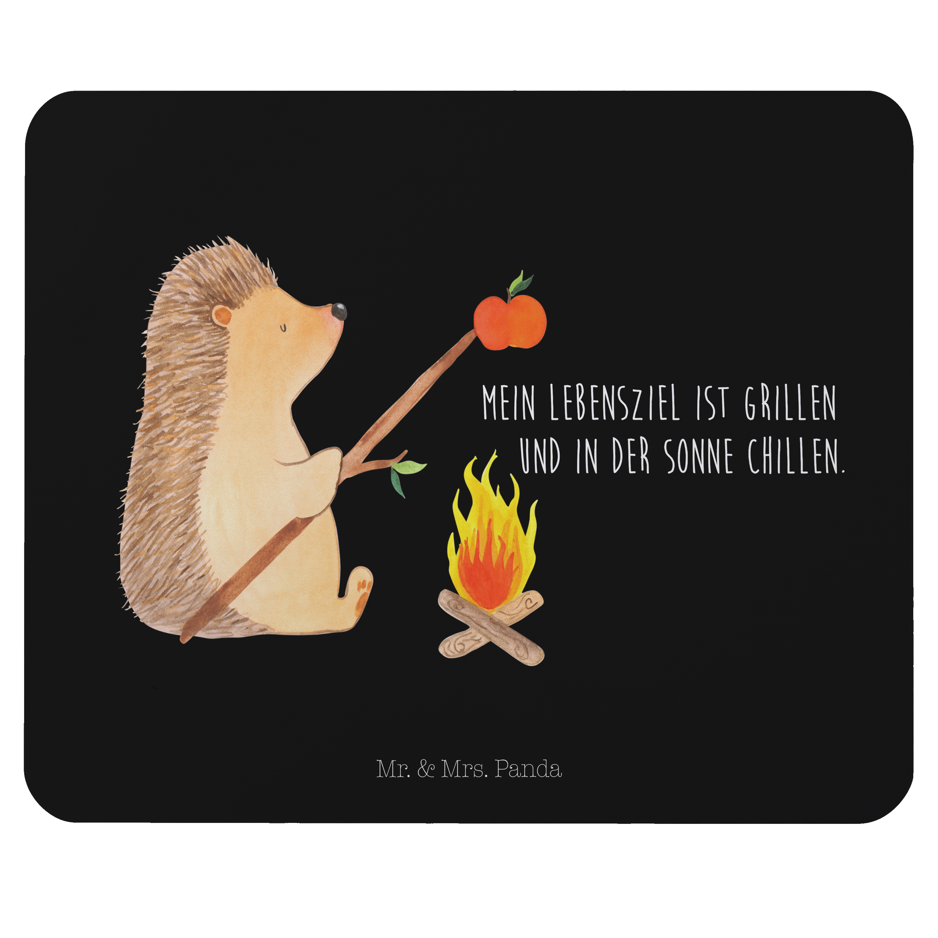 Mauspad Igel grillt - mit Spruch - Schwarz