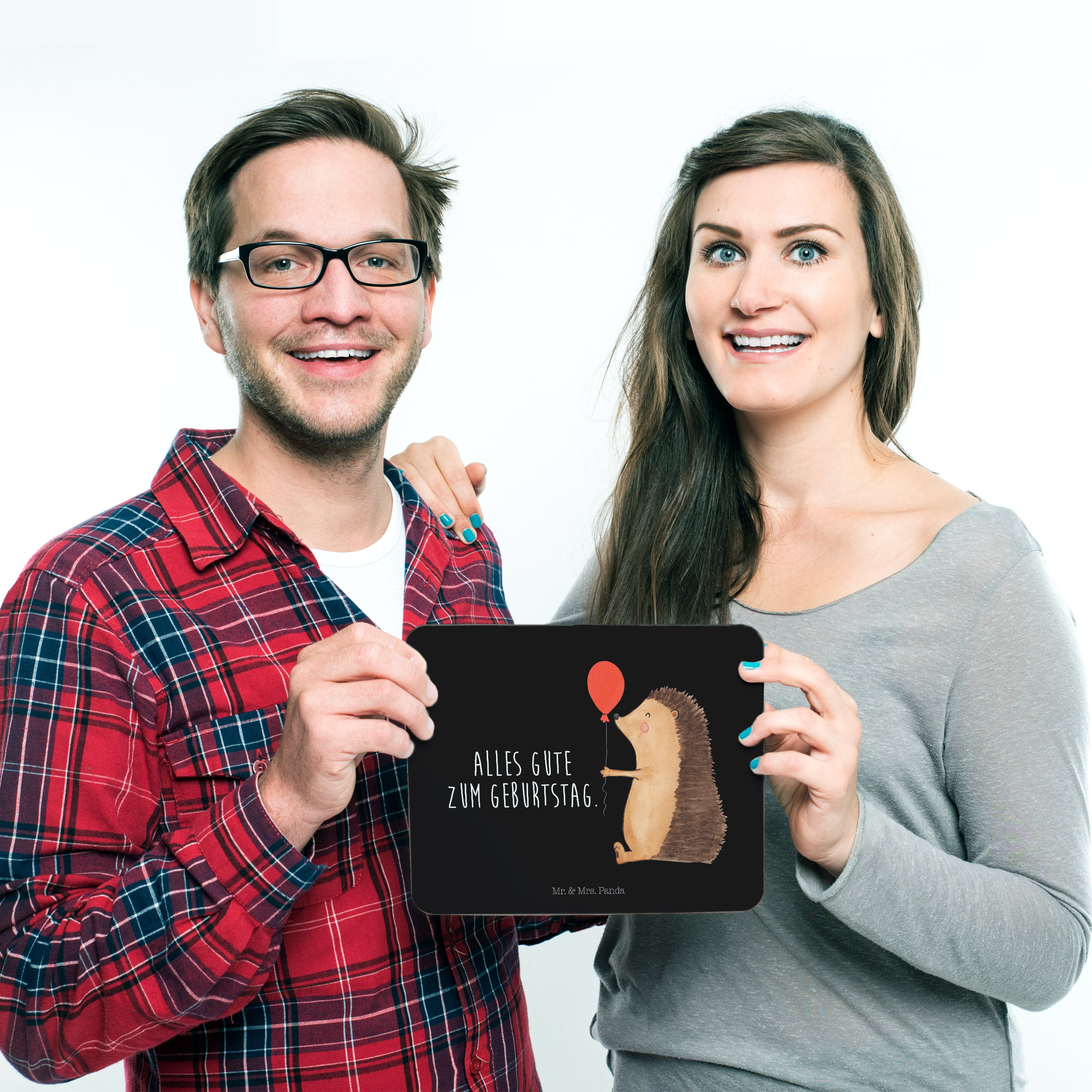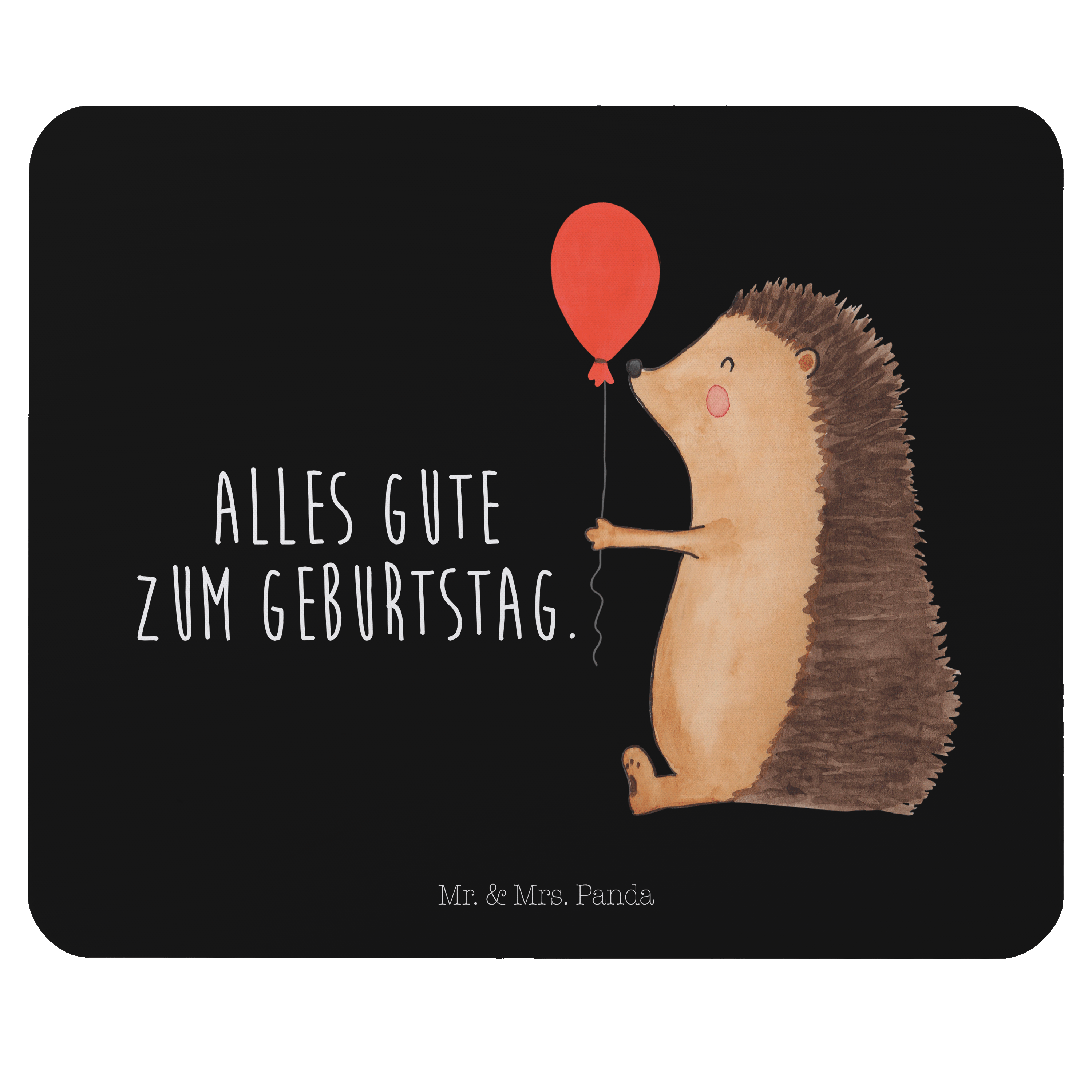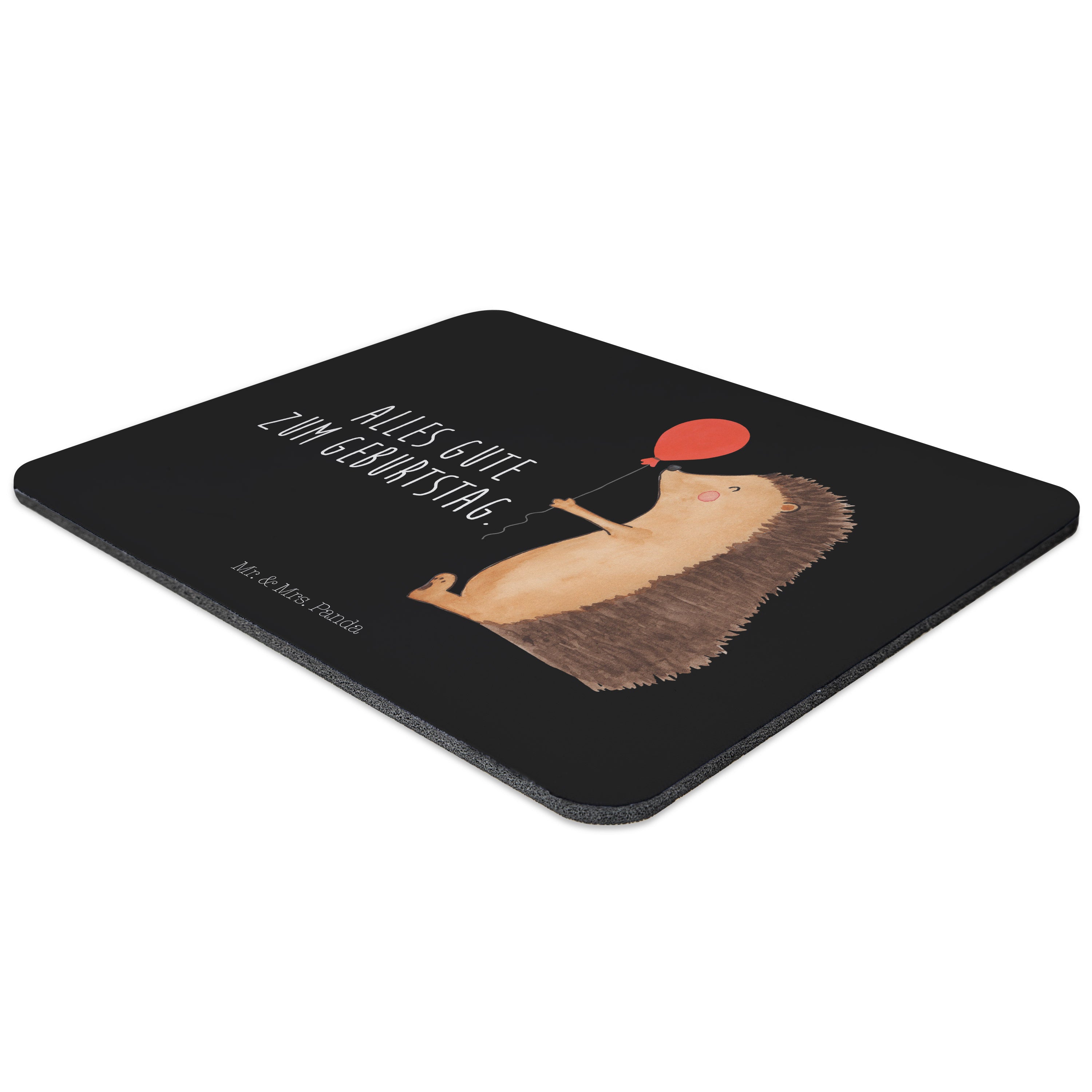Mauspad Igel mit Luftballon - mit Spruch - Schwarz