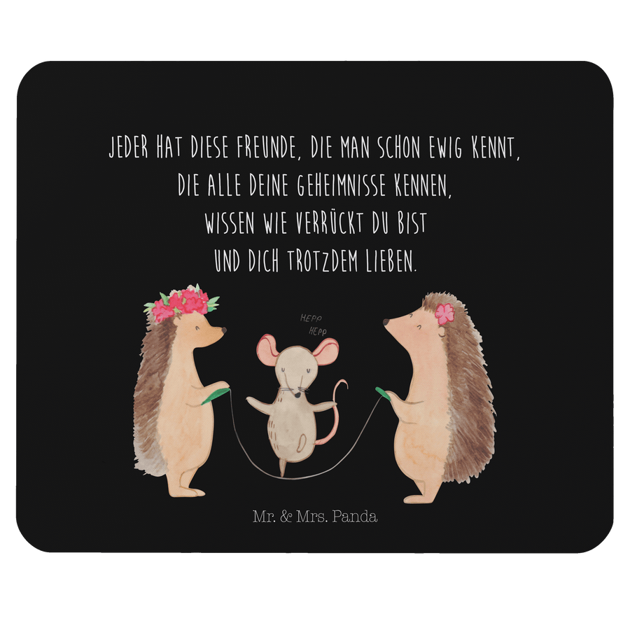 Mauspad Igel Seilhüpfen - mit Spruch - Schwarz