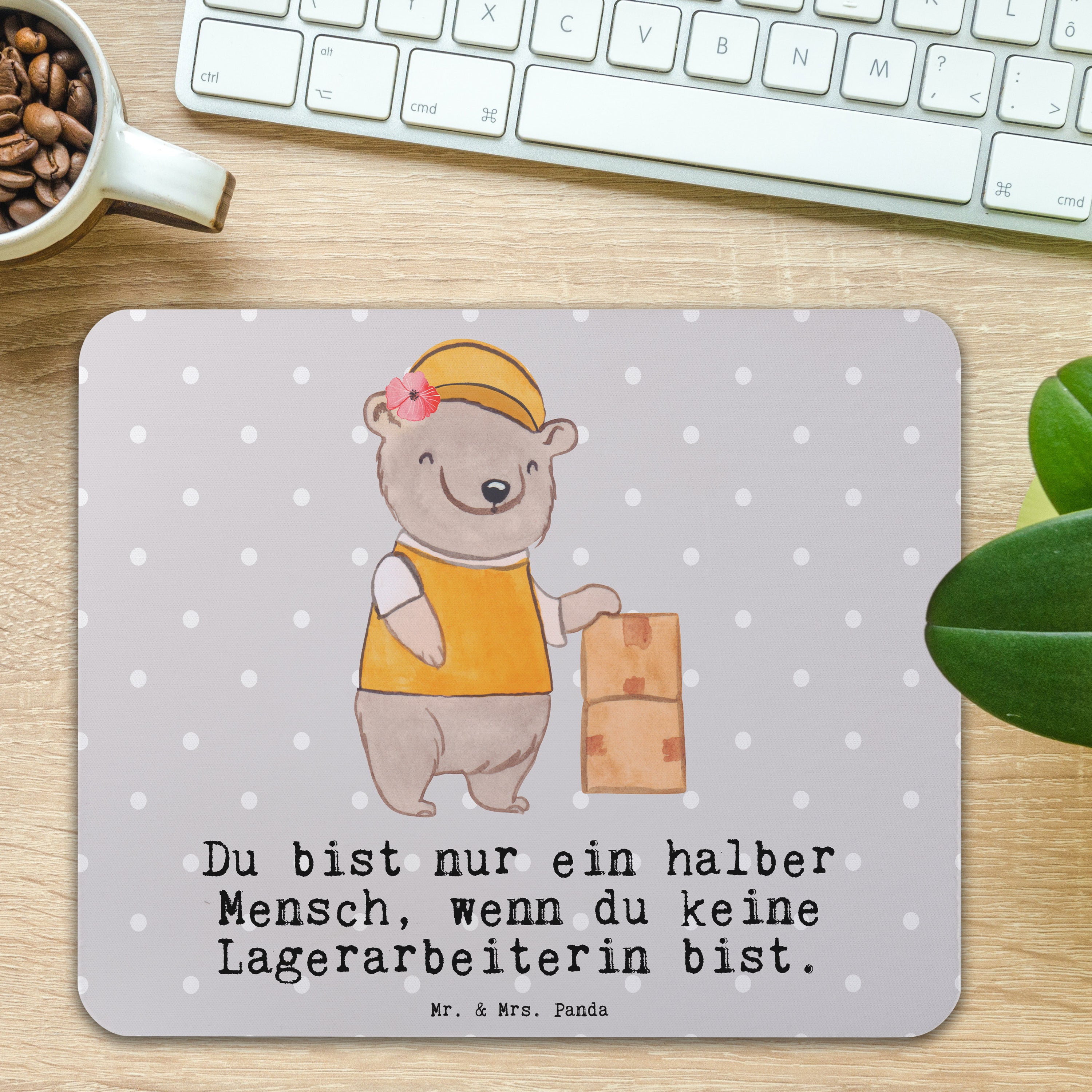 Mauspad Lagerarbeiterin mit Herz - Grau Pastell
