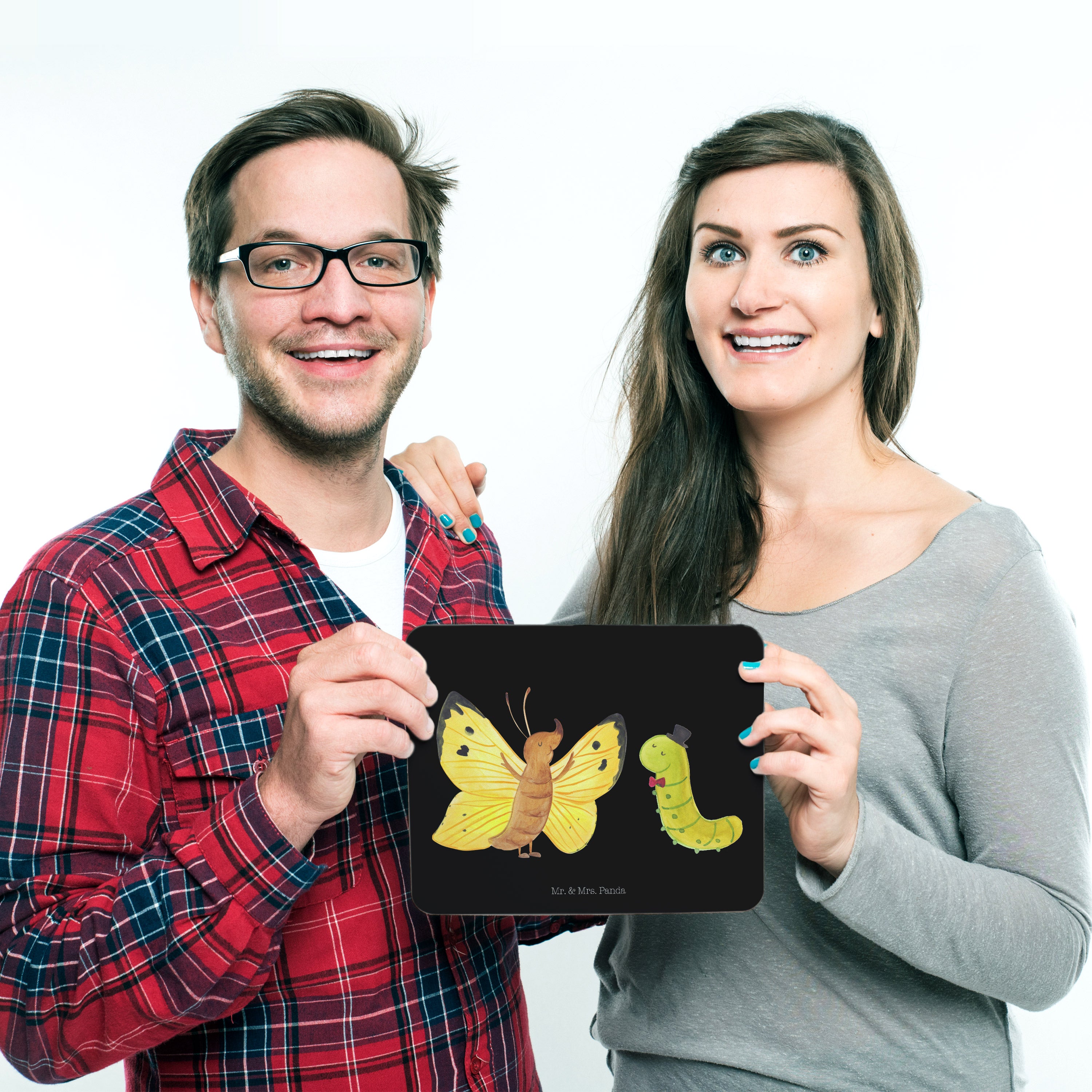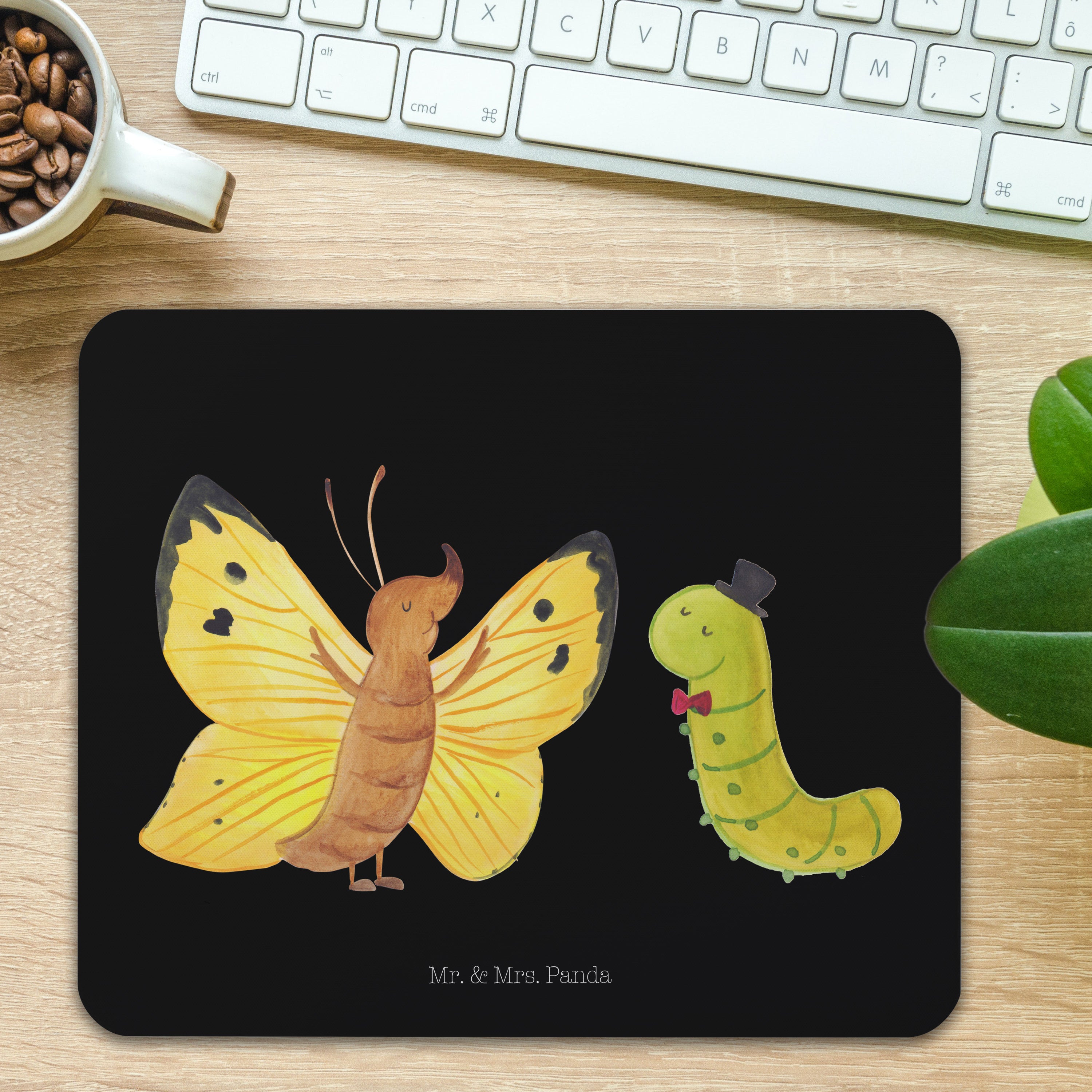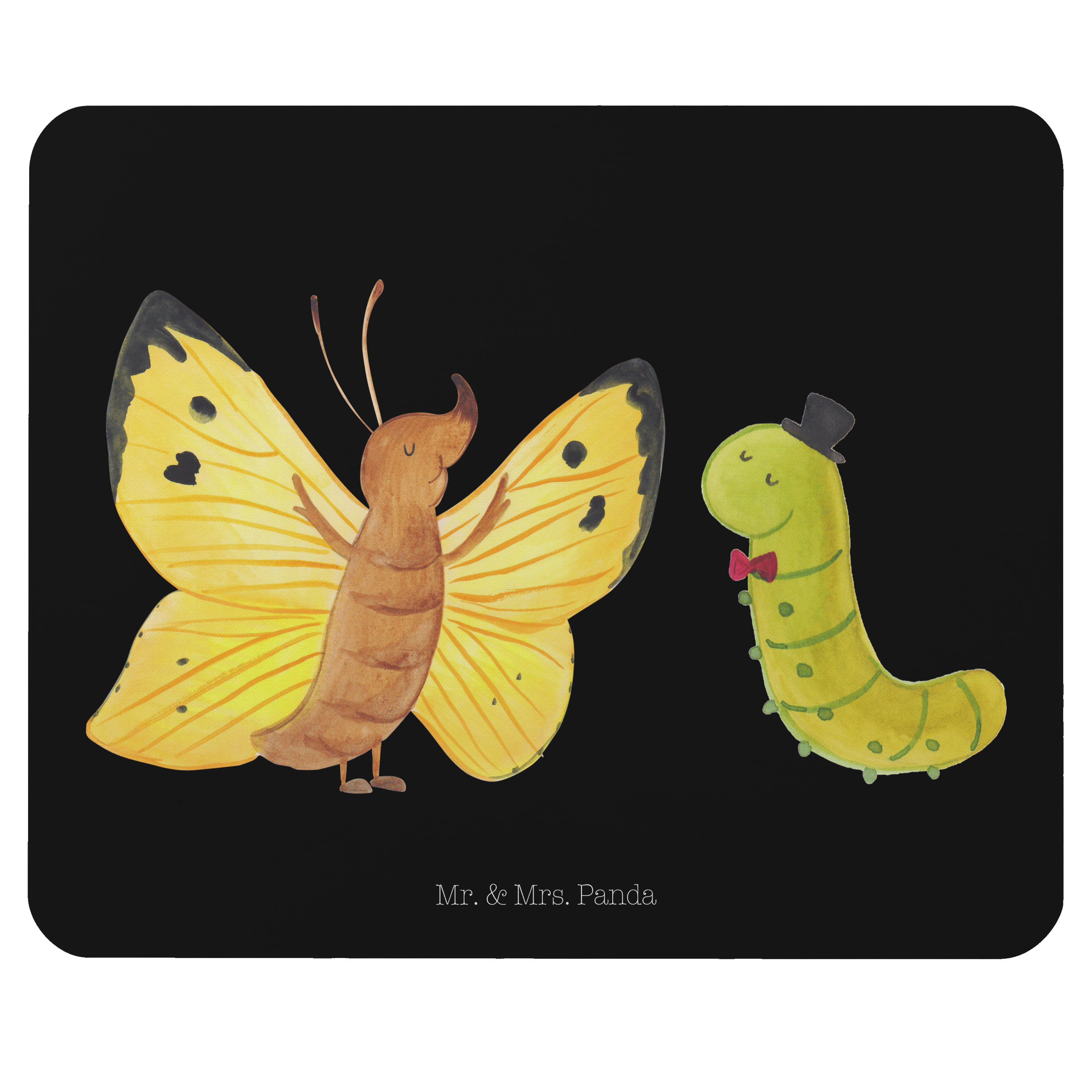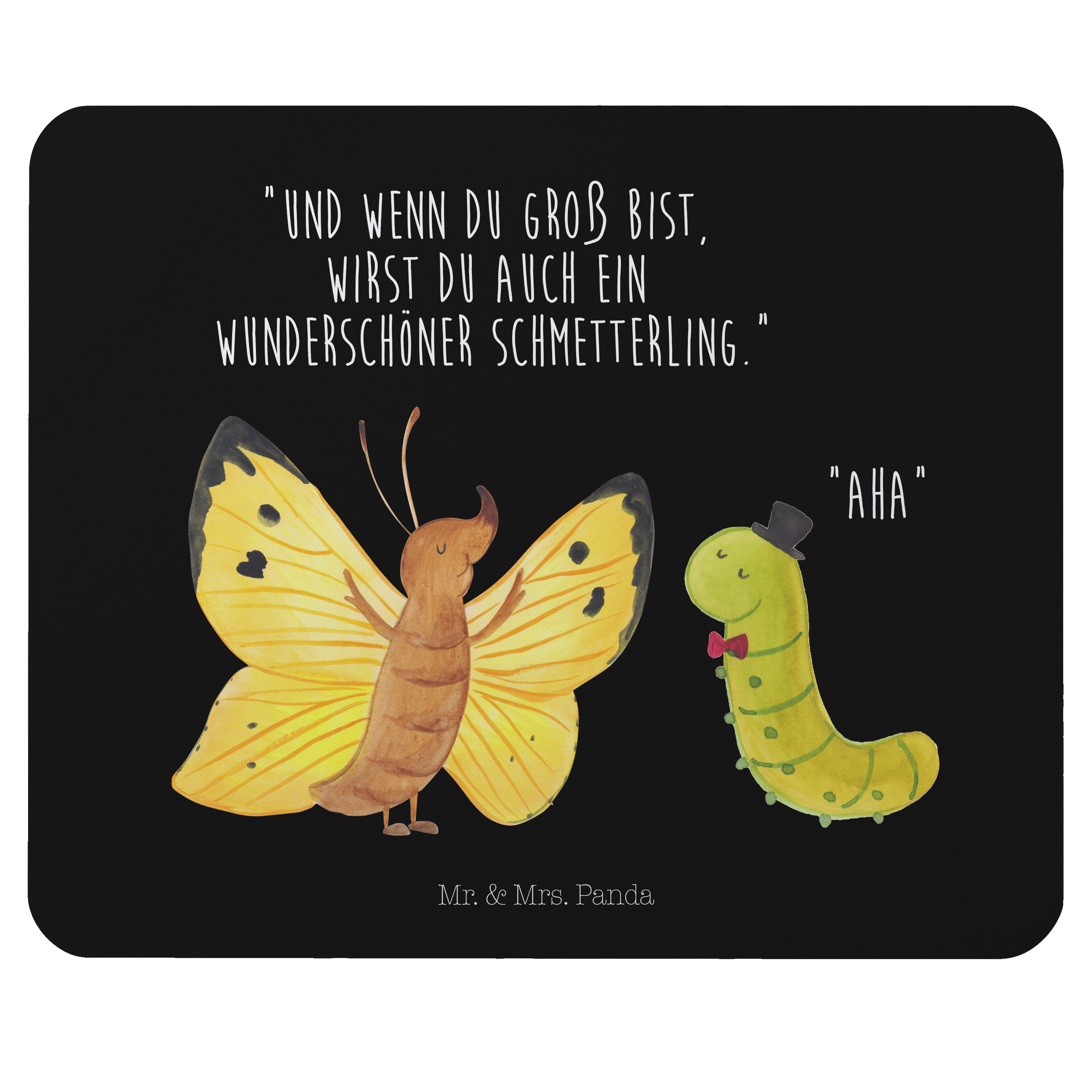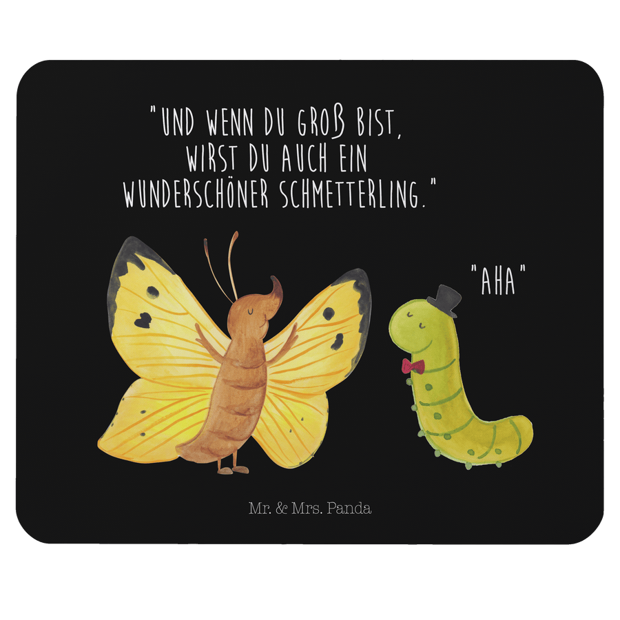 Mauspad Raupe & Schmetterling - mit Spruch - Schwarz