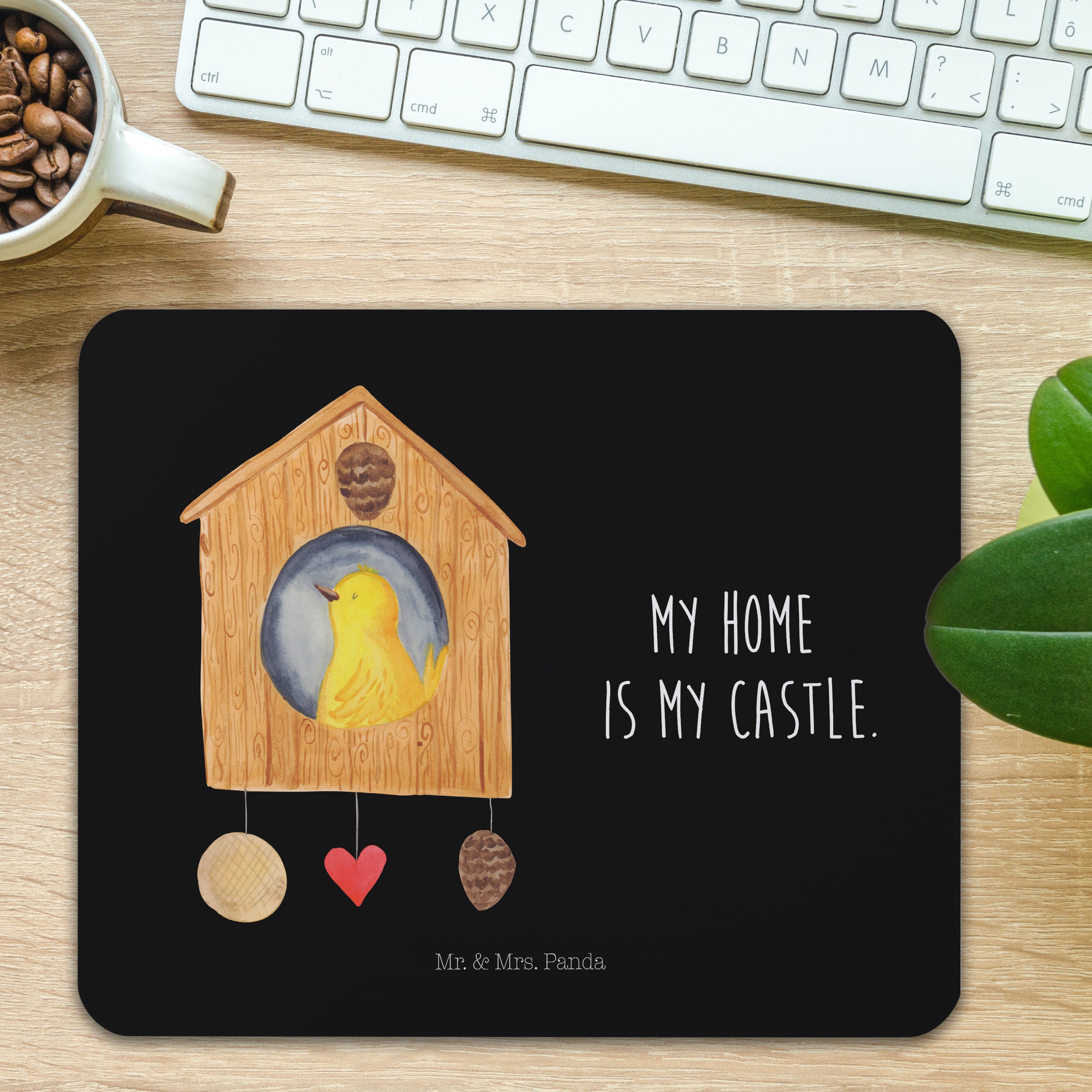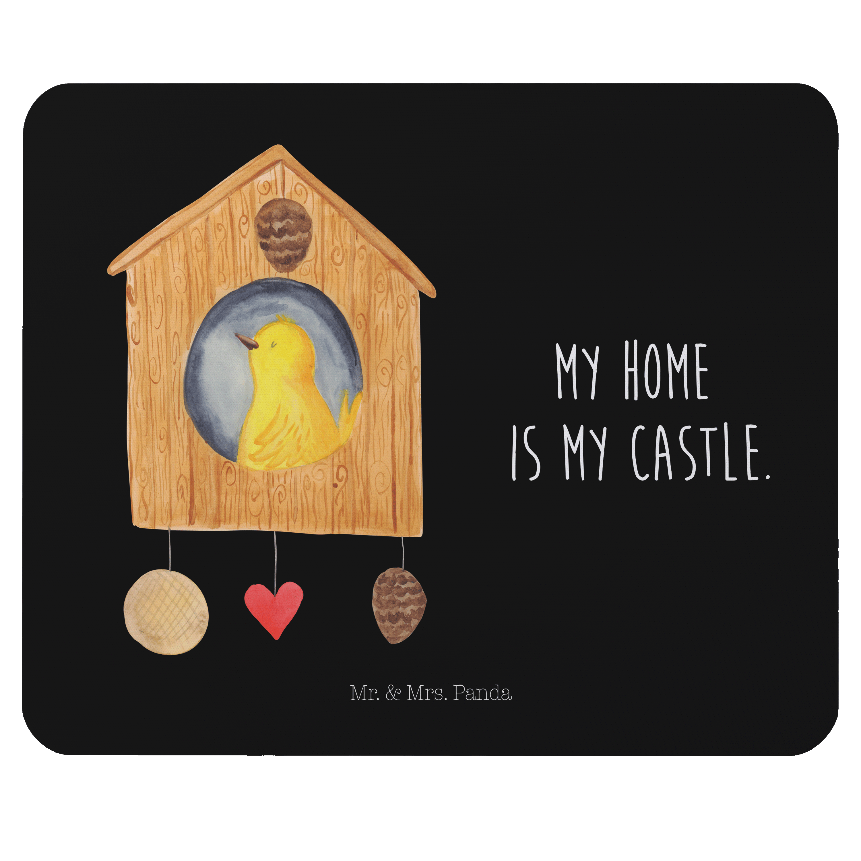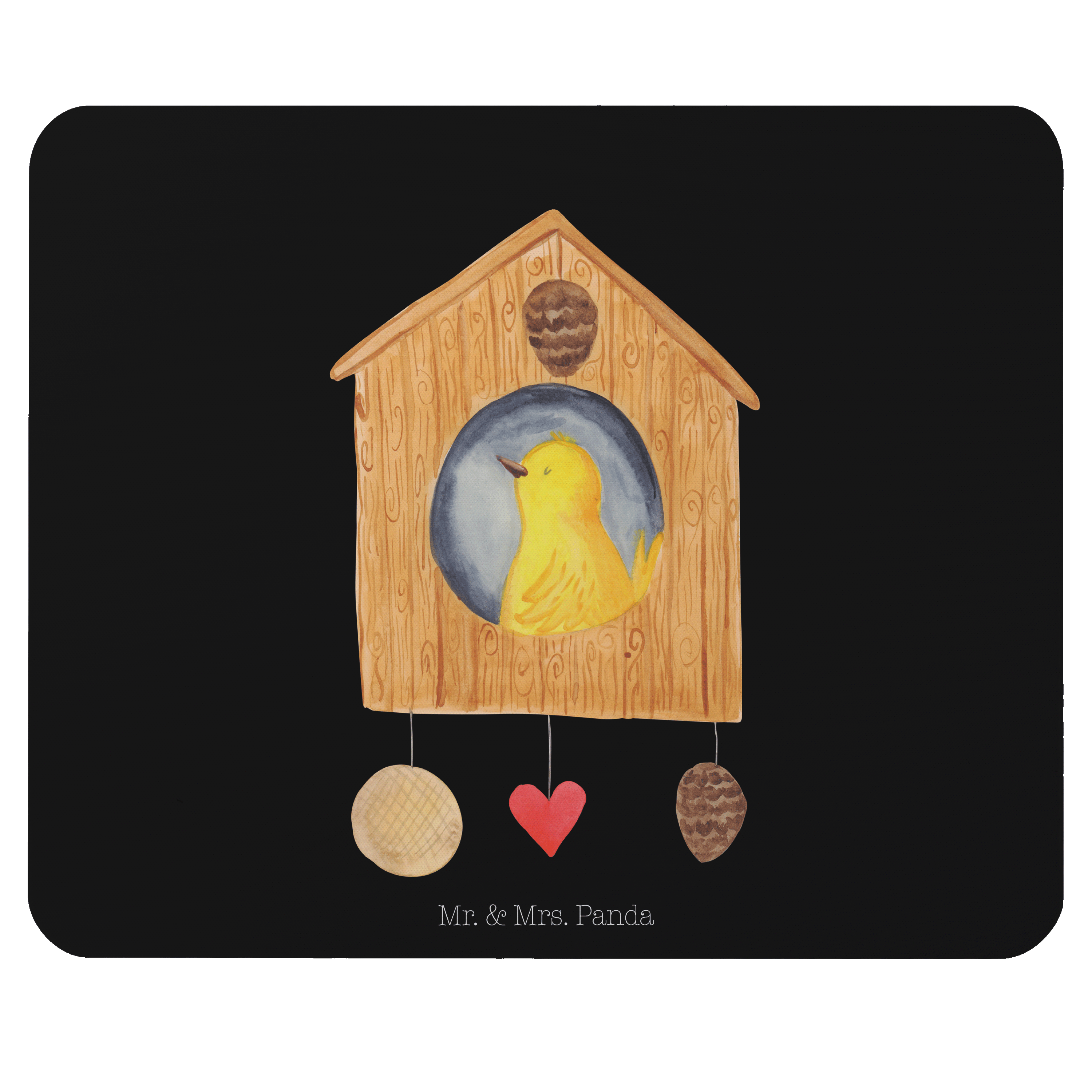 Mauspad Vogelhaus - mit Spruch - Schwarz