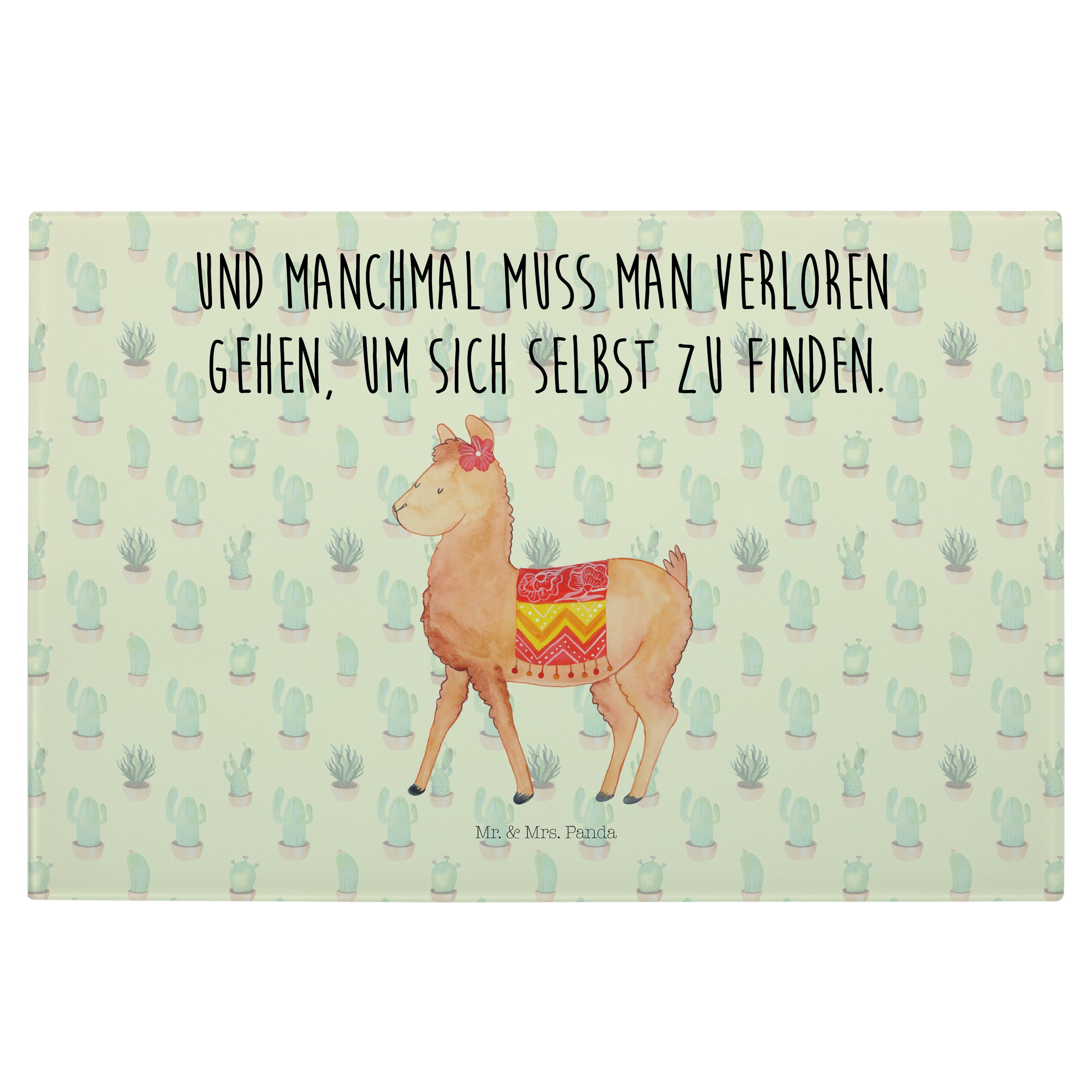 Medium Glas Schneidbrett Alpaka stolz - mit Spruch - Kaktus Grün