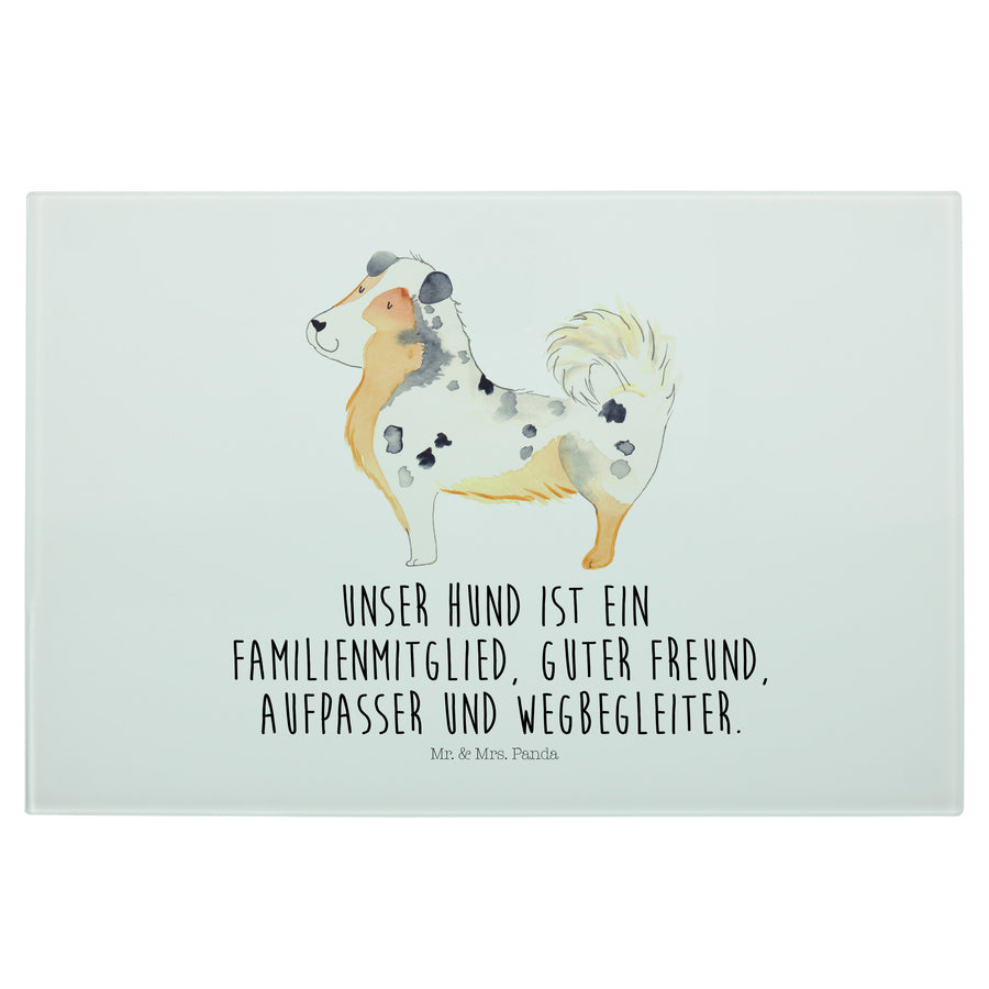 Medium Glas Schneidbrett Australien Shepherd - mit Spruch - Weiß