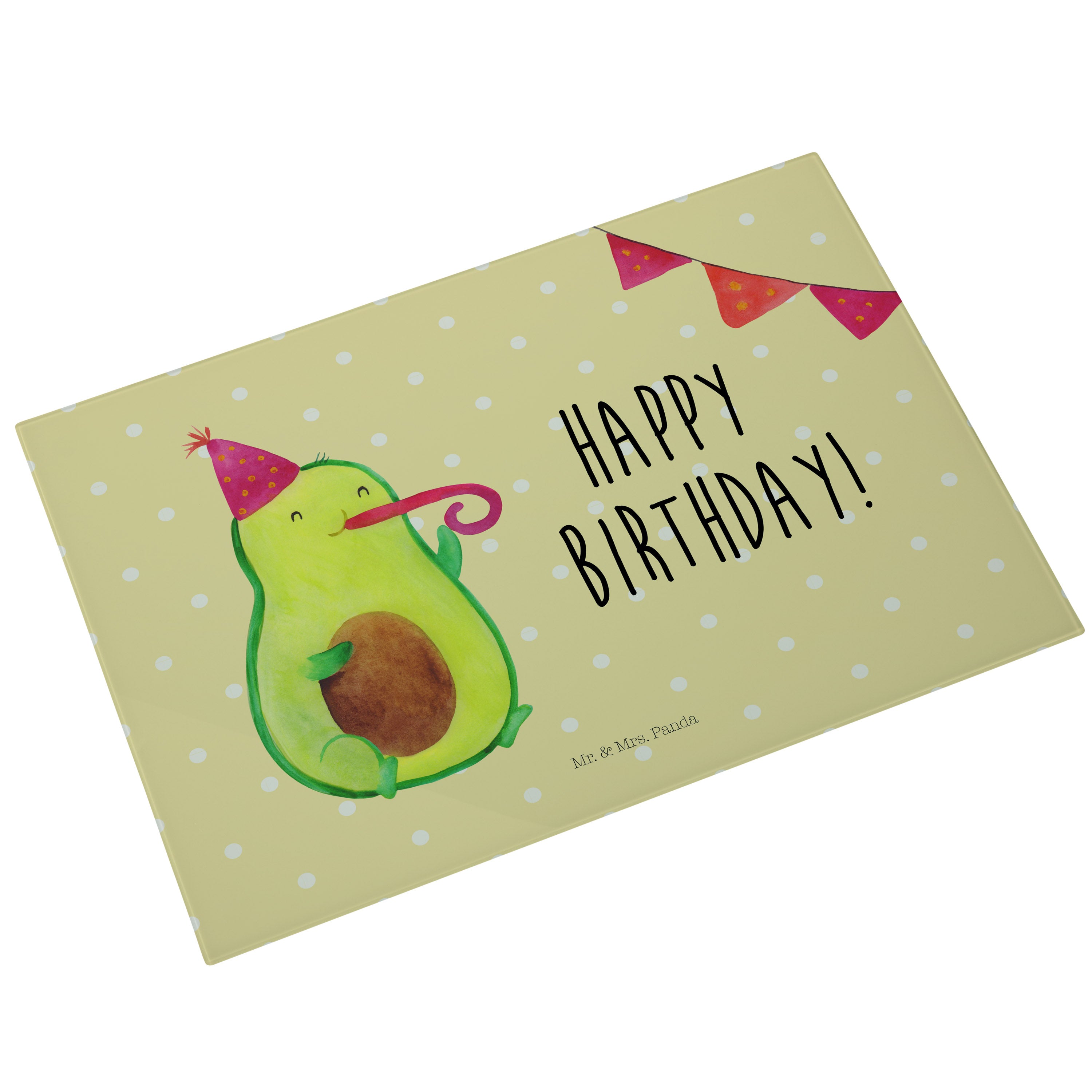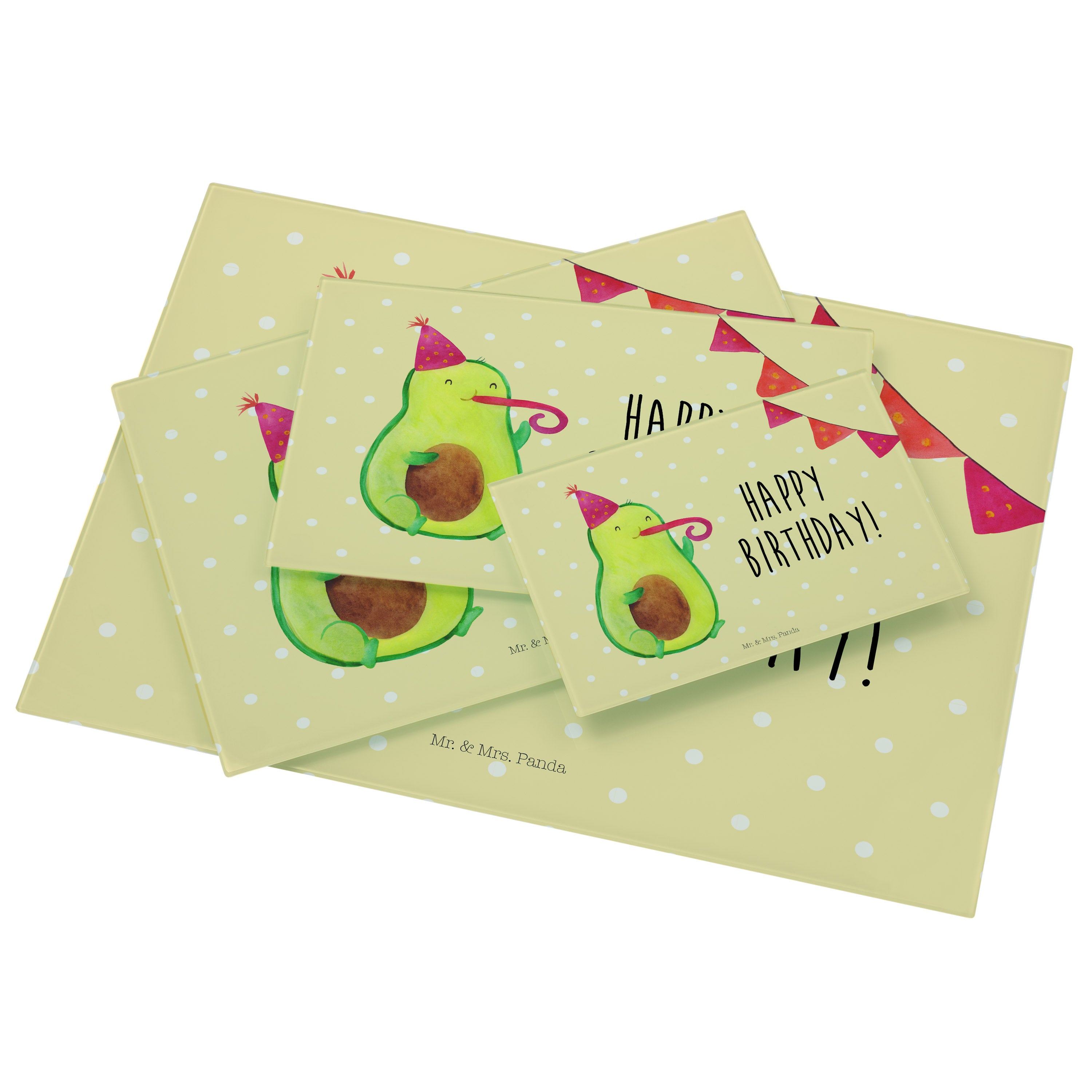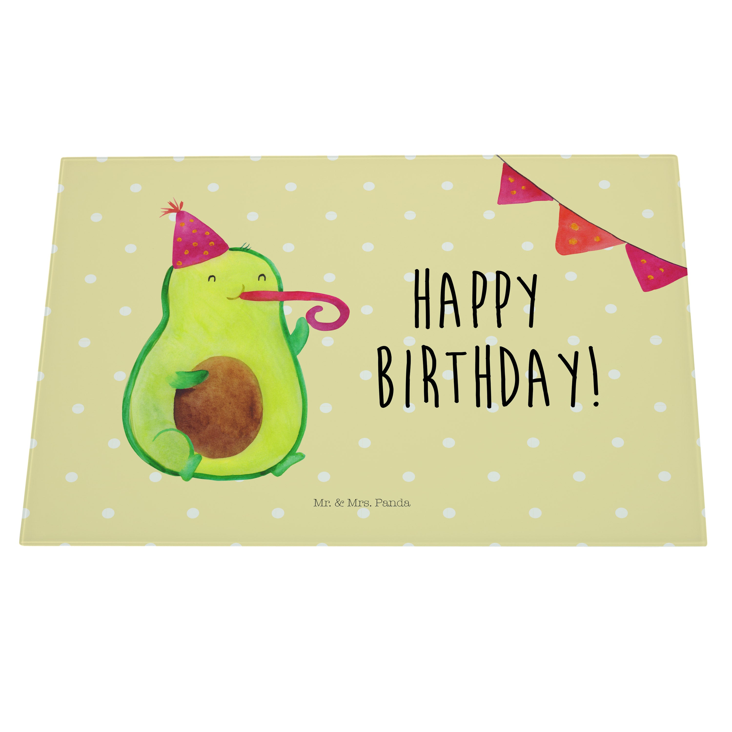 XL Glas Schneidbrett Avocado Birthday - mit Spruch - Gelb Pastell