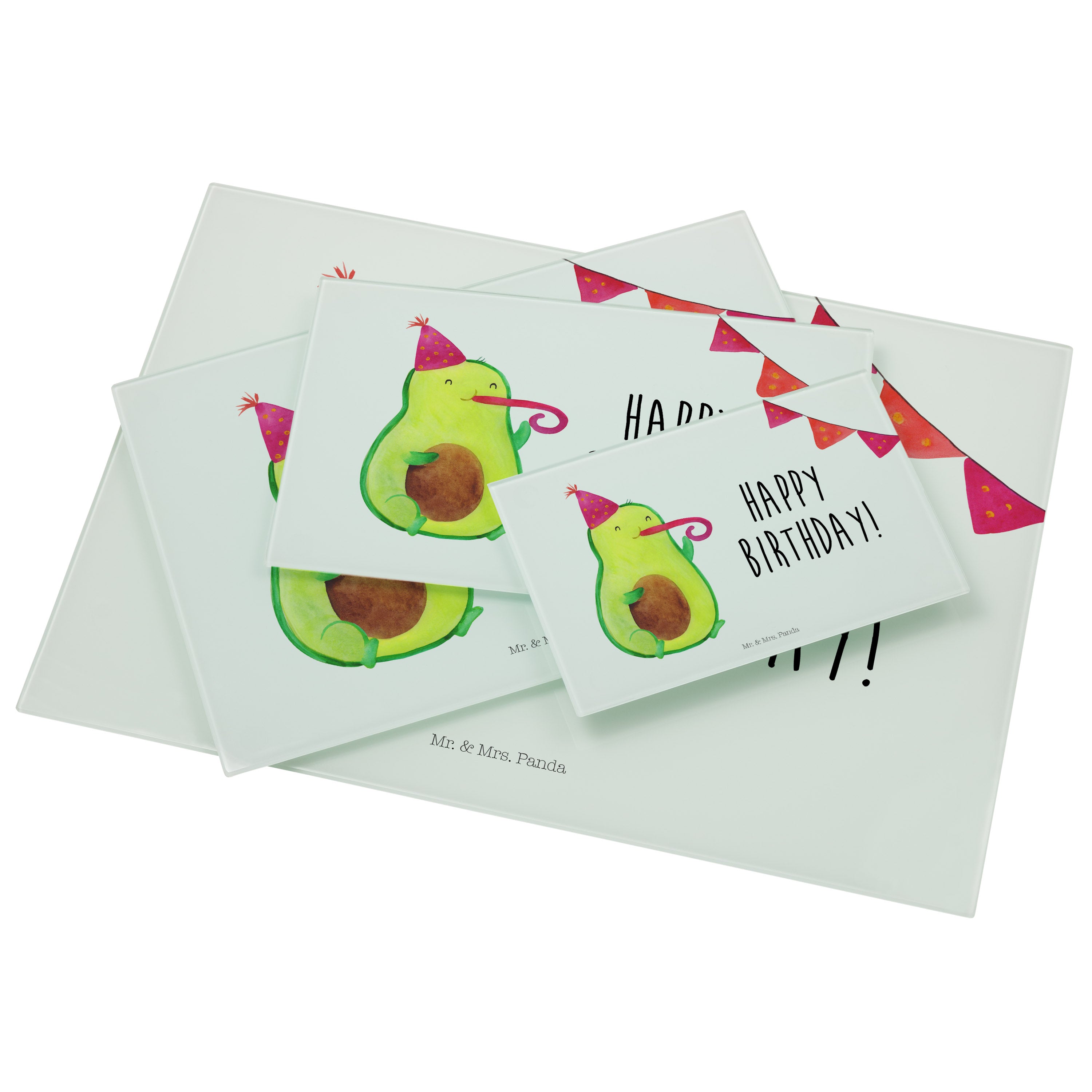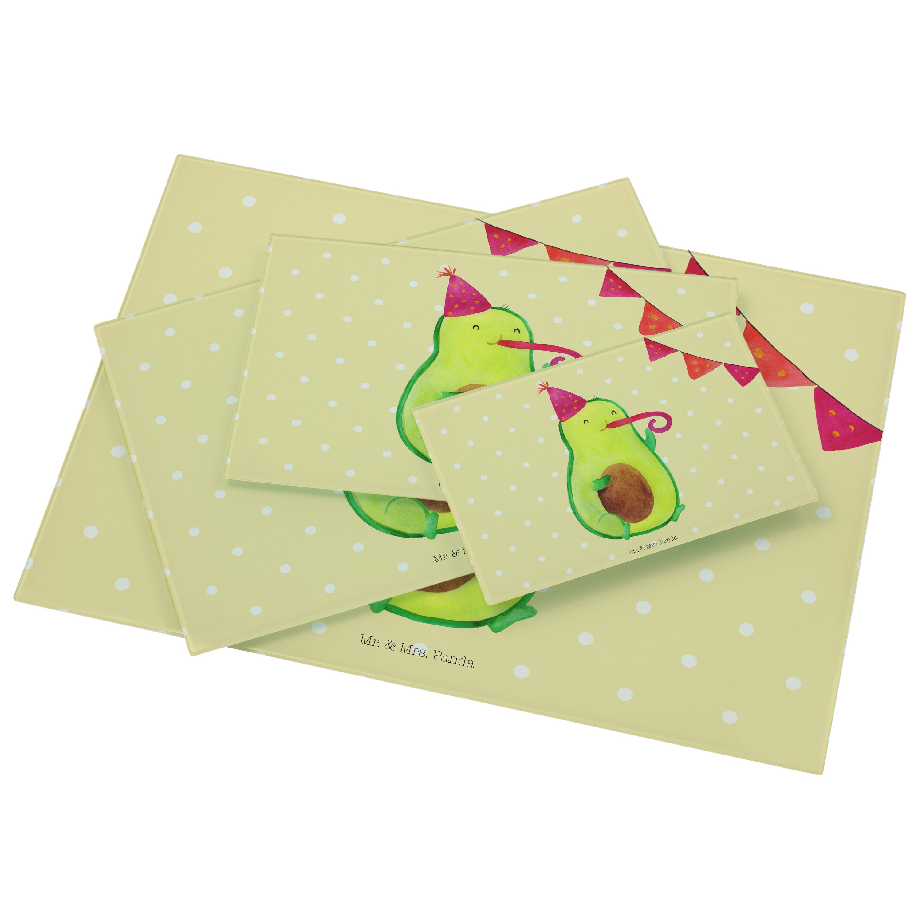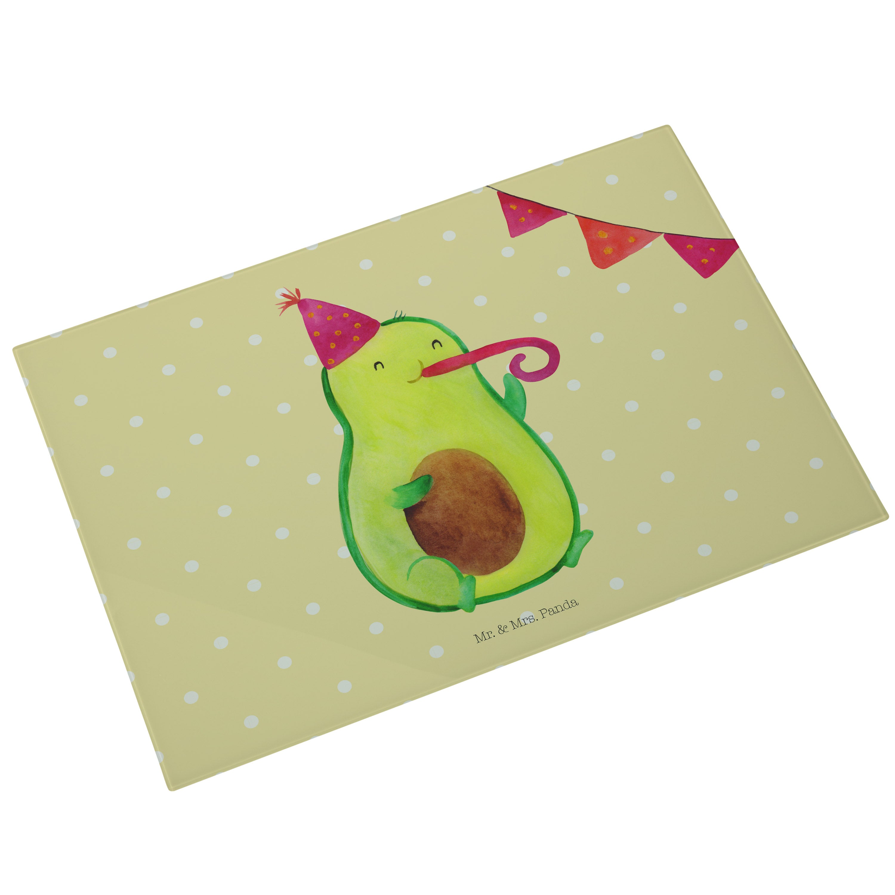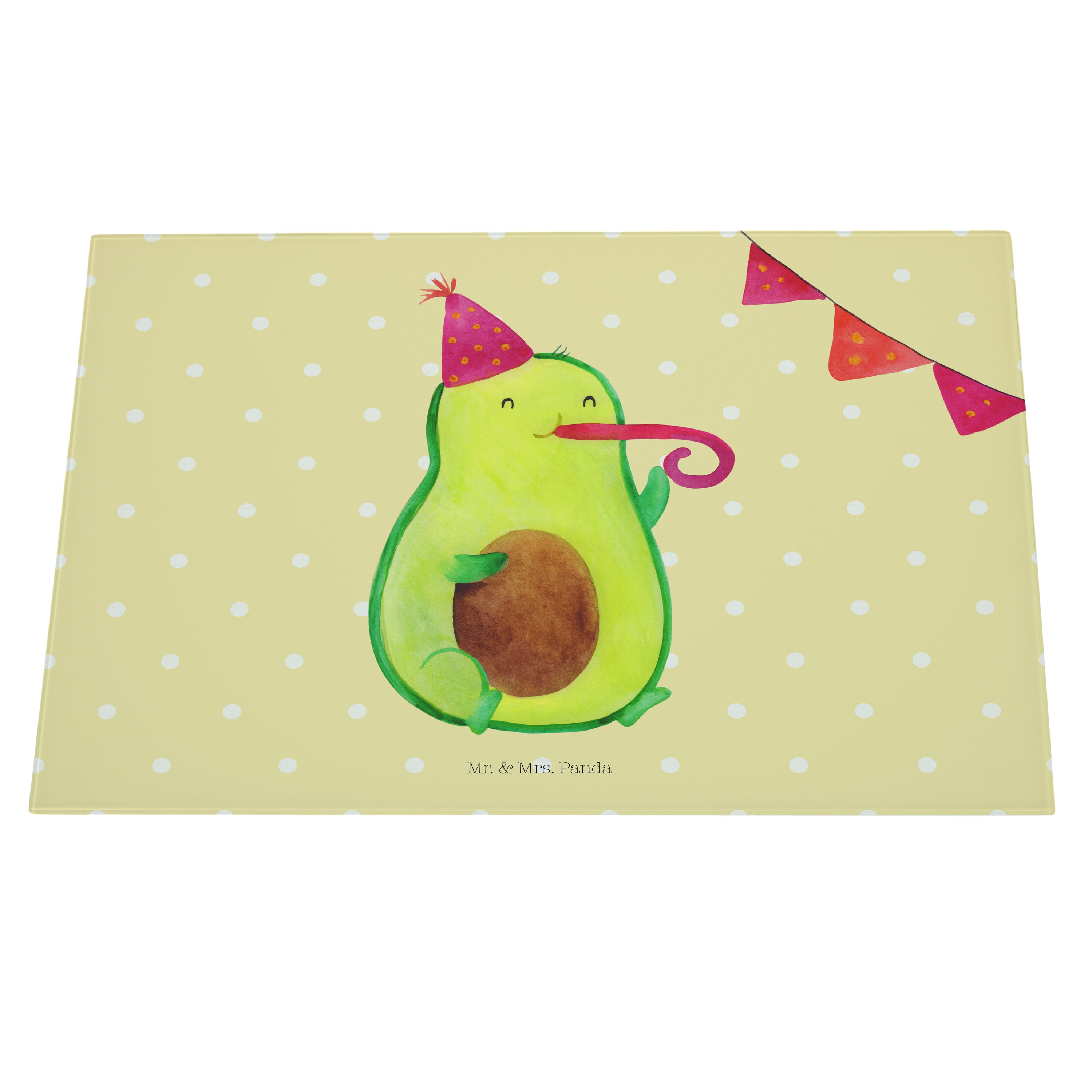 XL Glas Schneidbrett Avocado Birthday - mit Spruch - Gelb Pastell