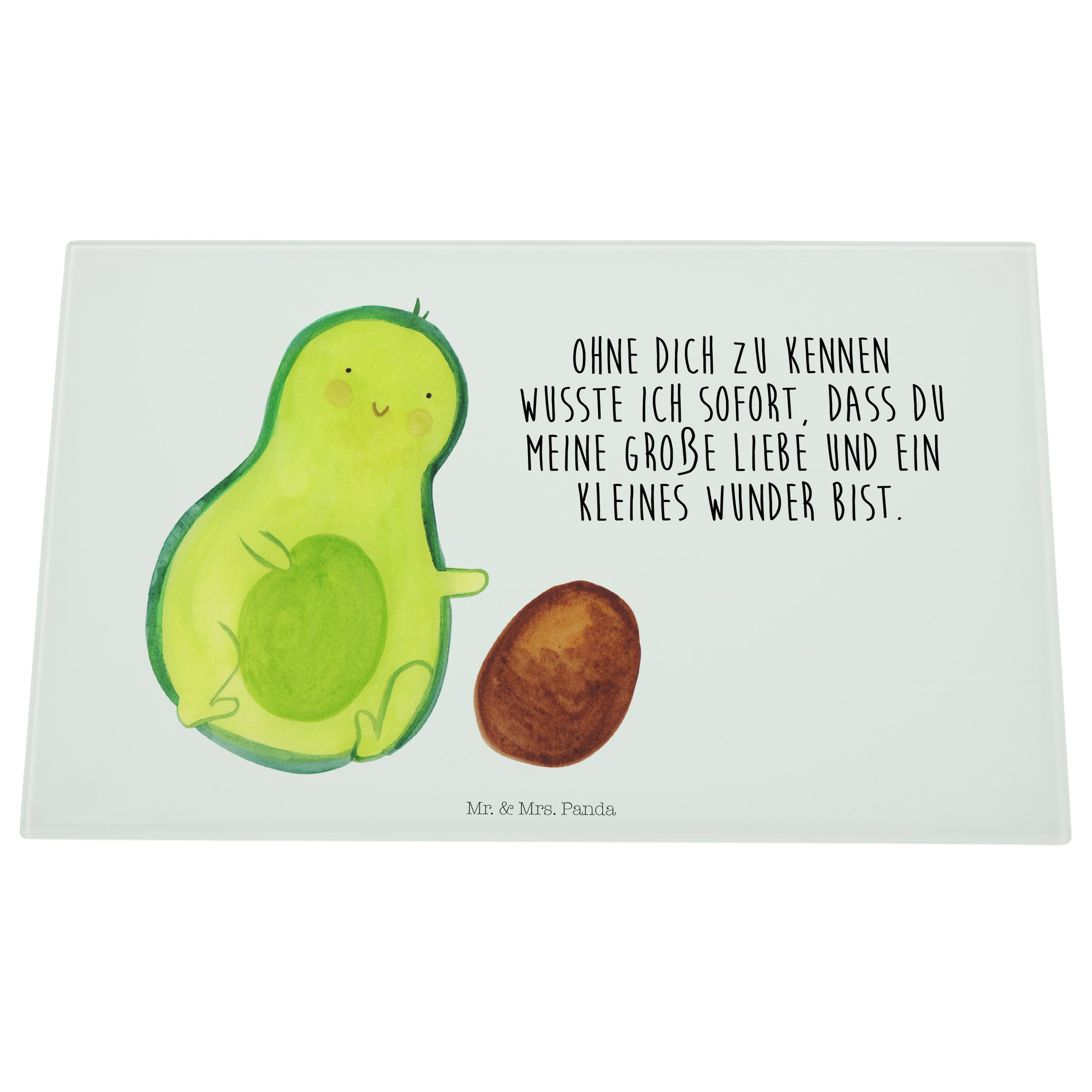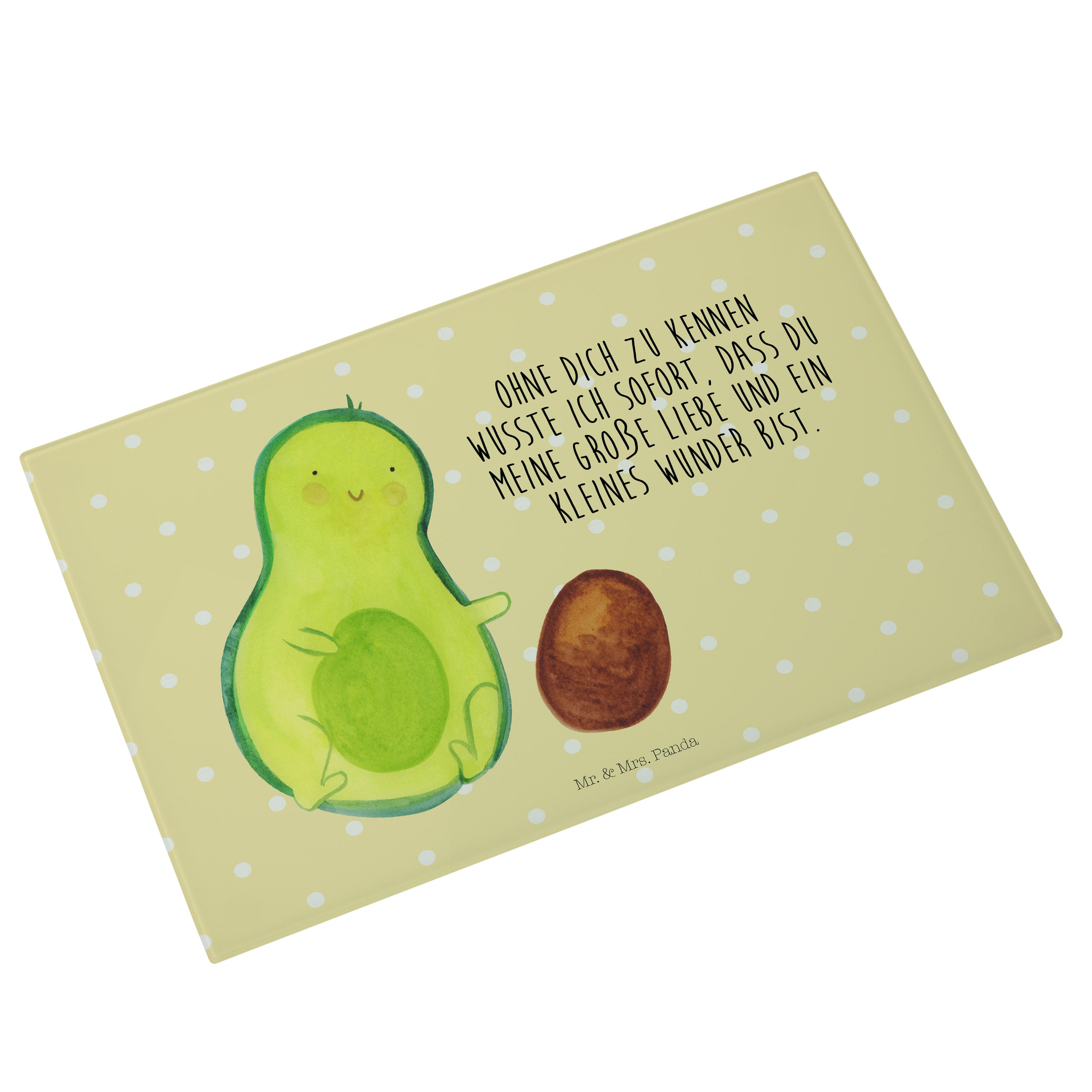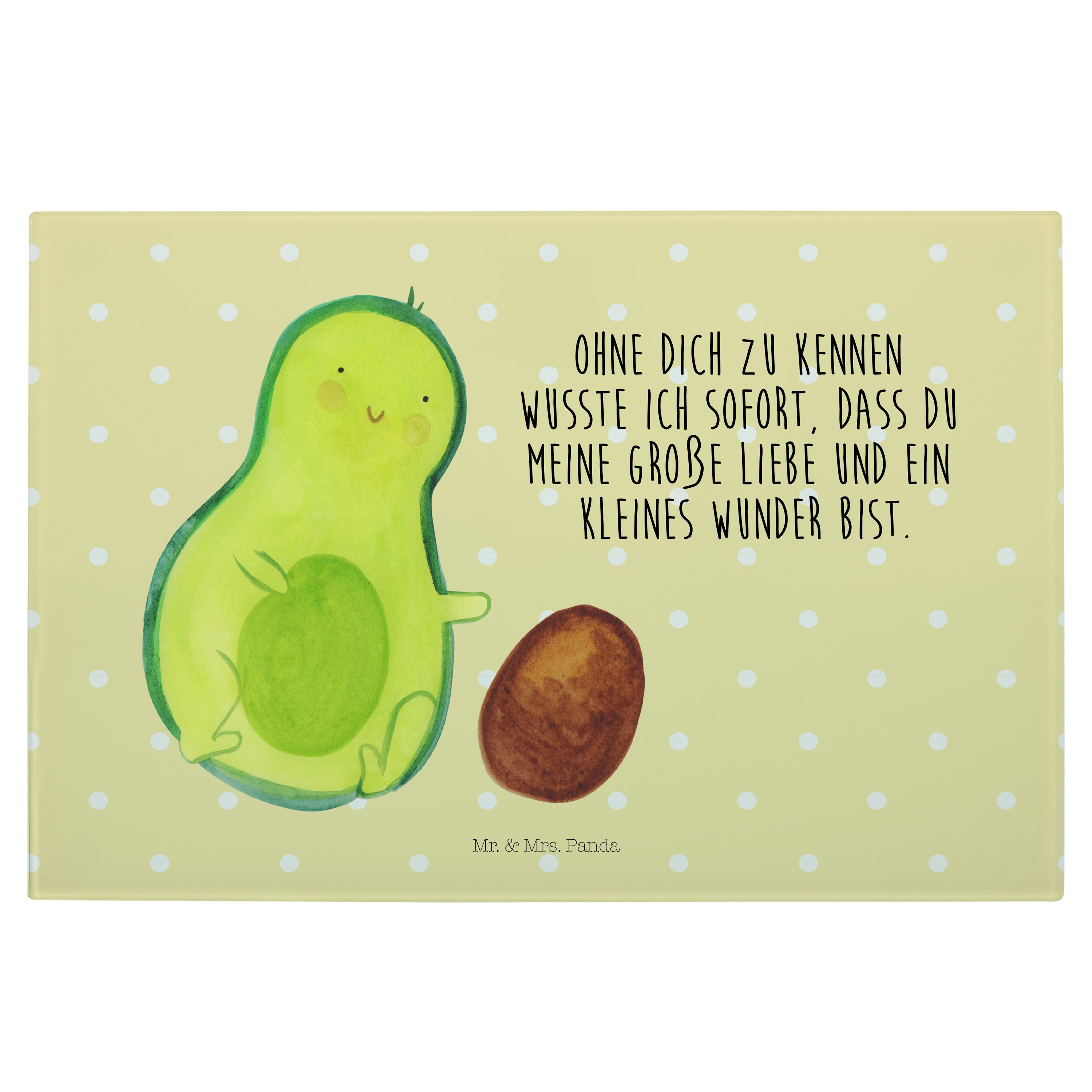 Medium Glas Schneidbrett Avocado rollt Kern - mit Spruch - Gelb Pastell