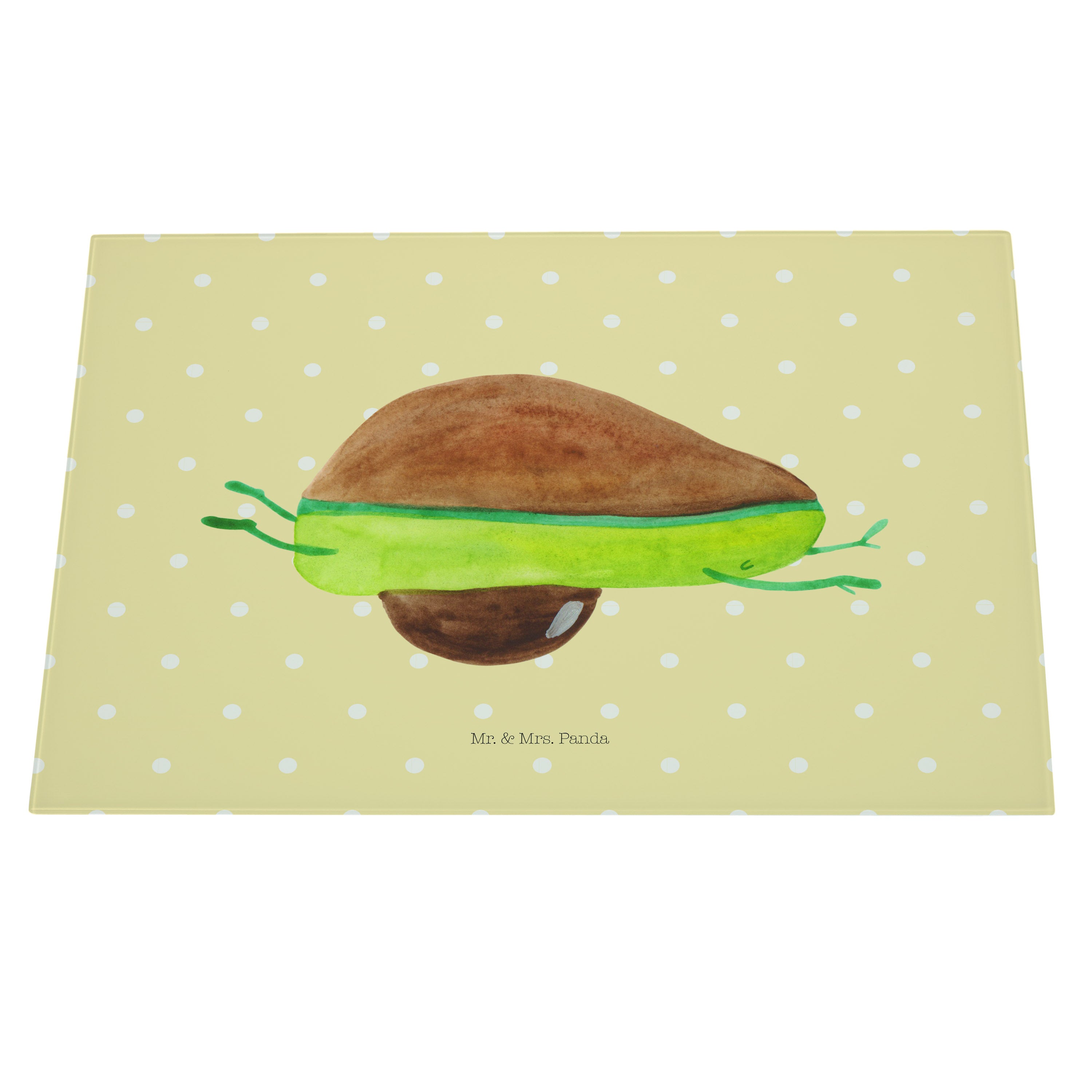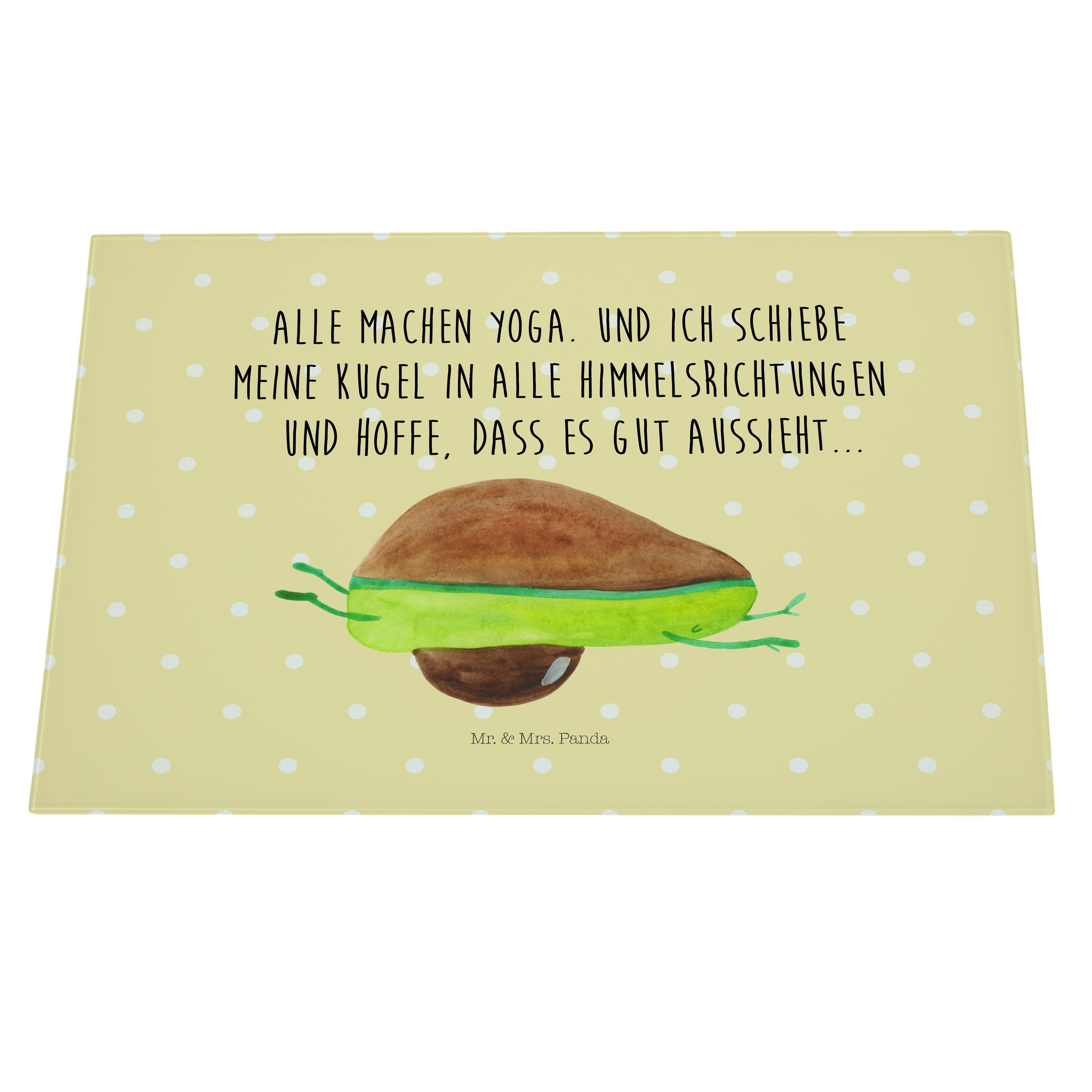 Glasschneidebrett Avocado Yoga - Mit Text Din Quer DE