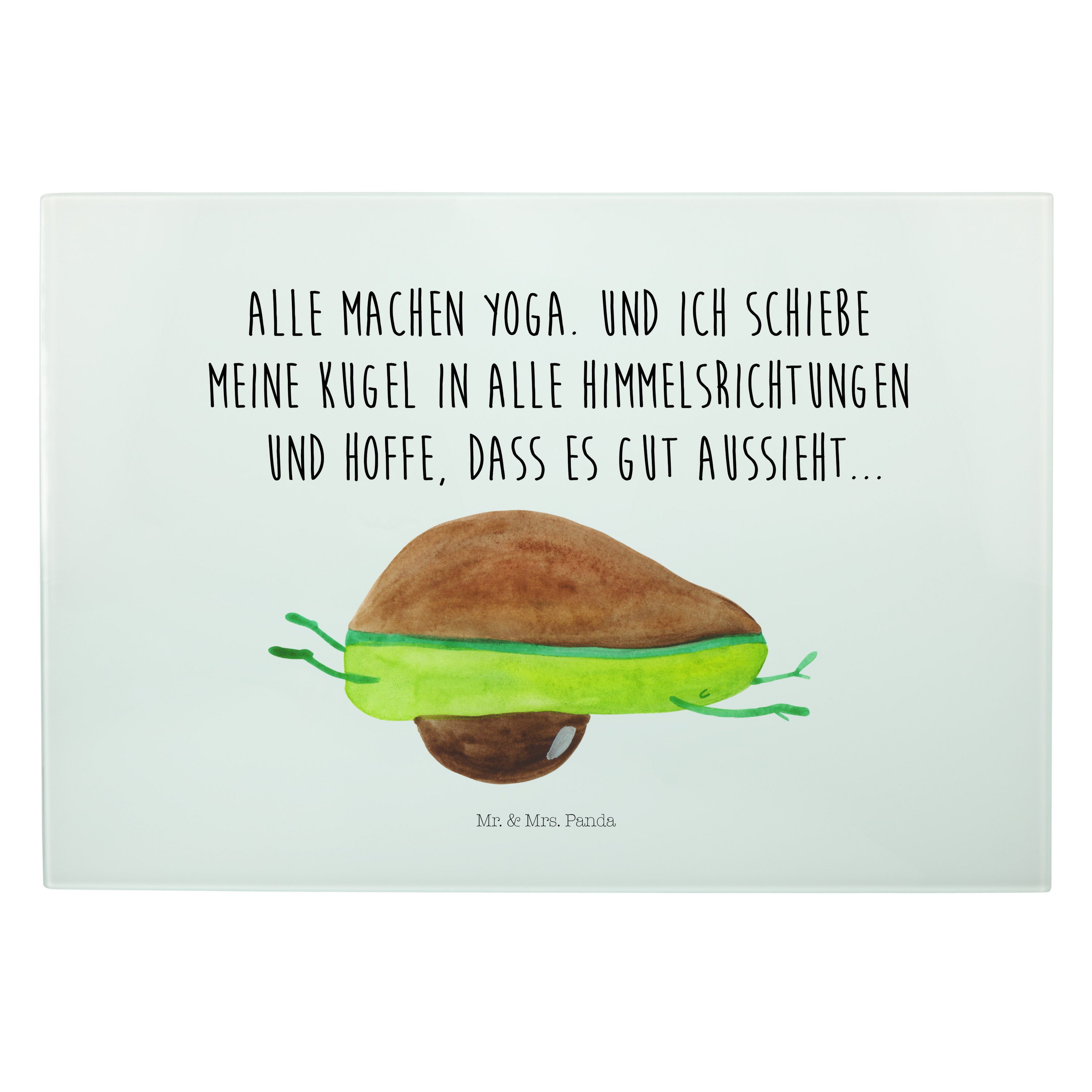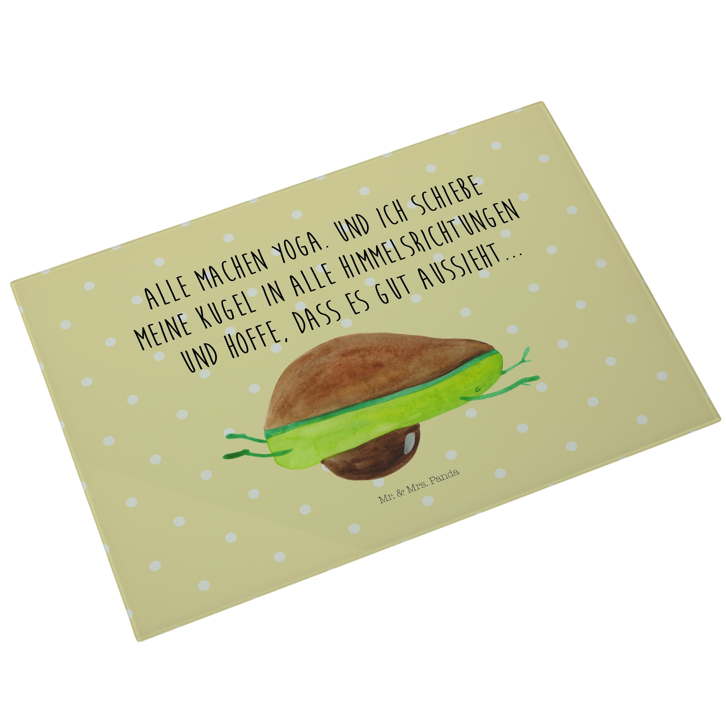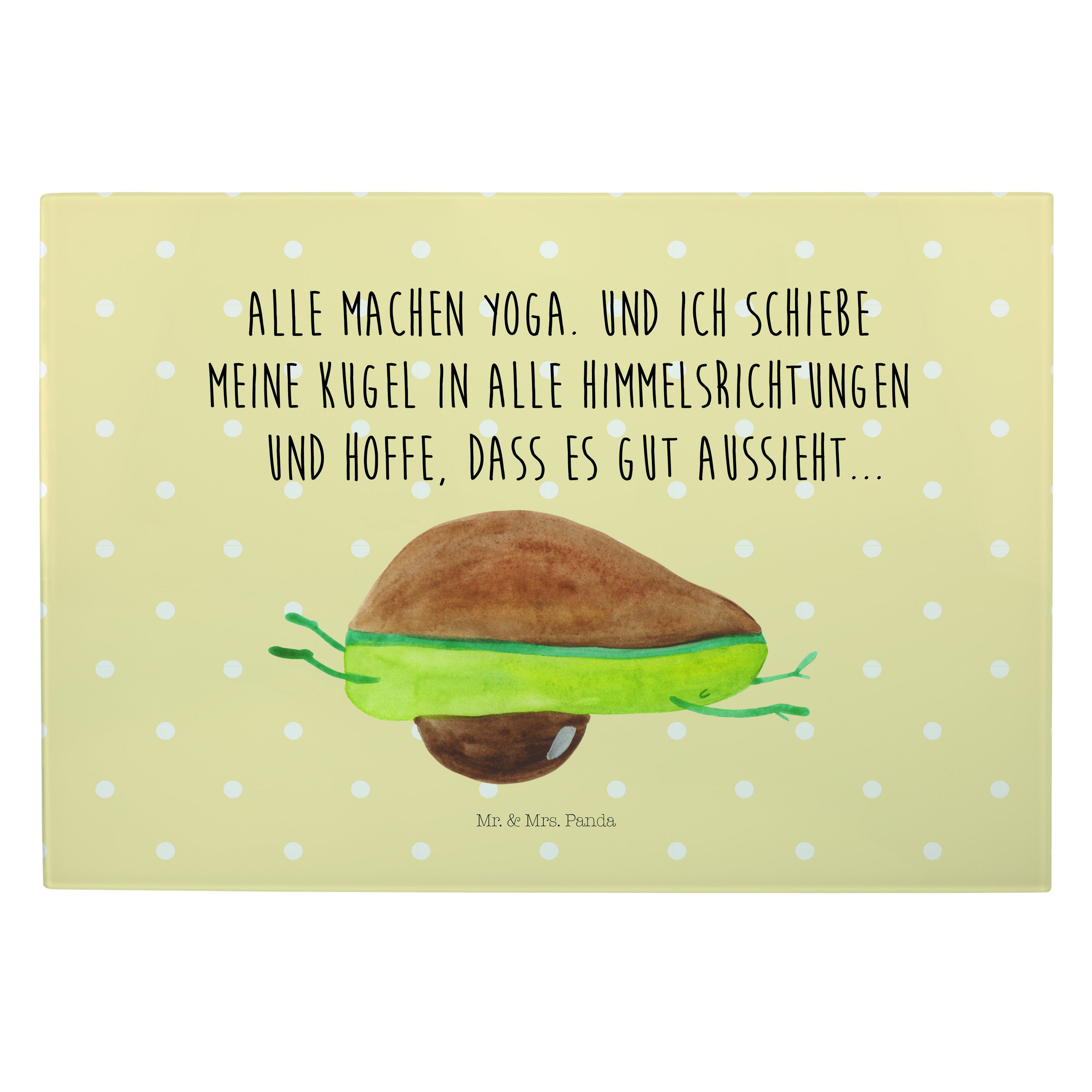 XL Glas Schneidbrett Avocado Yoga - mit Spruch - Gelb Pastell